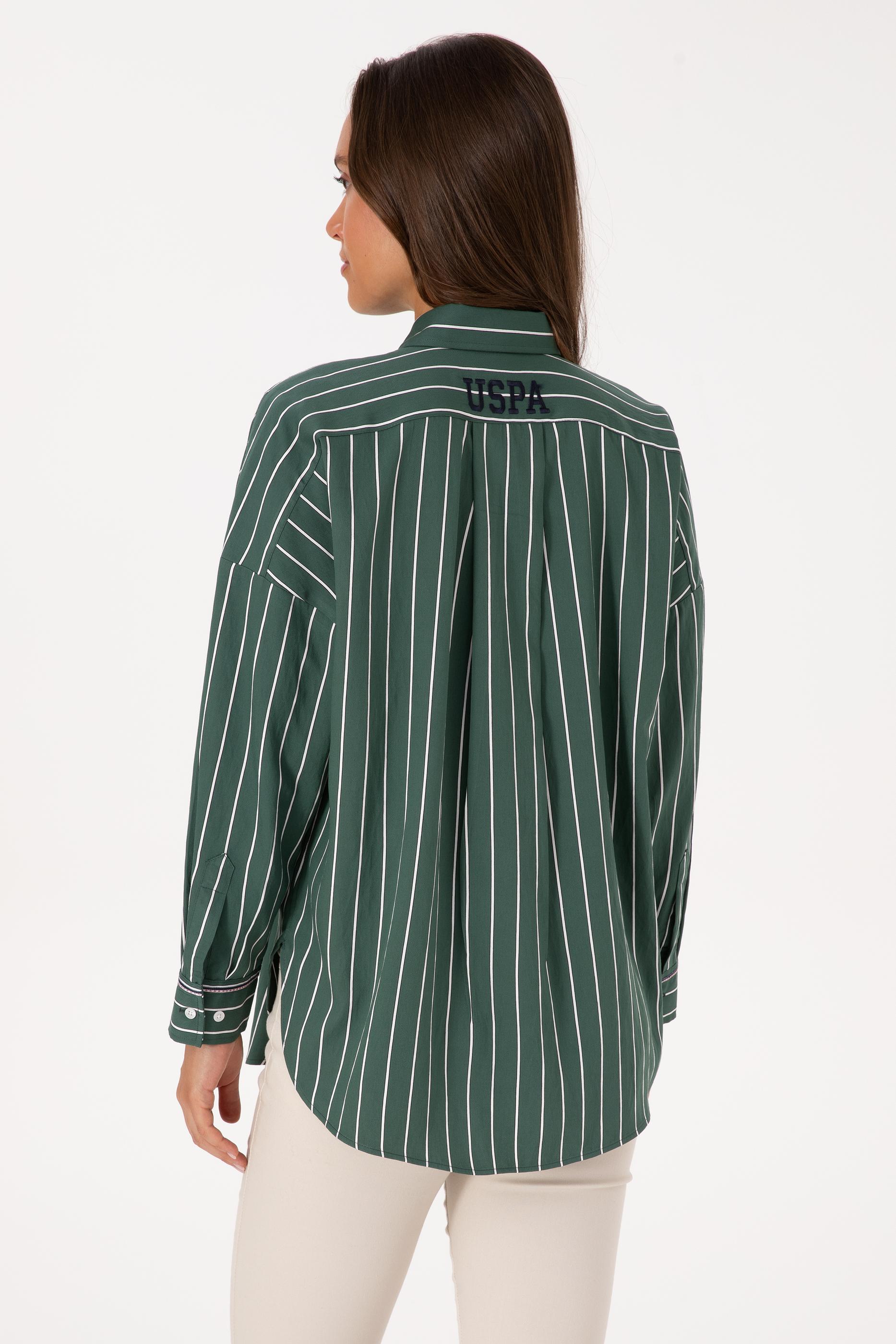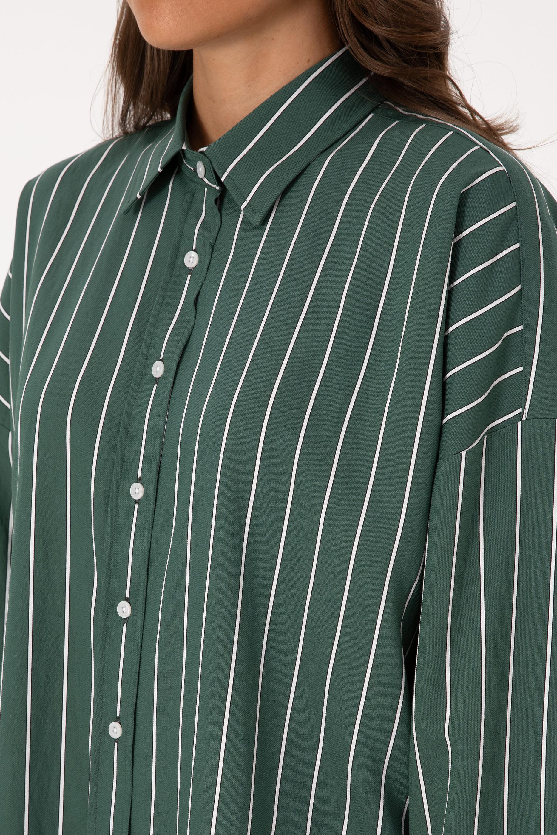 Kadın Koyu Yeşil Çizgili Uzun Kollu Gömlek