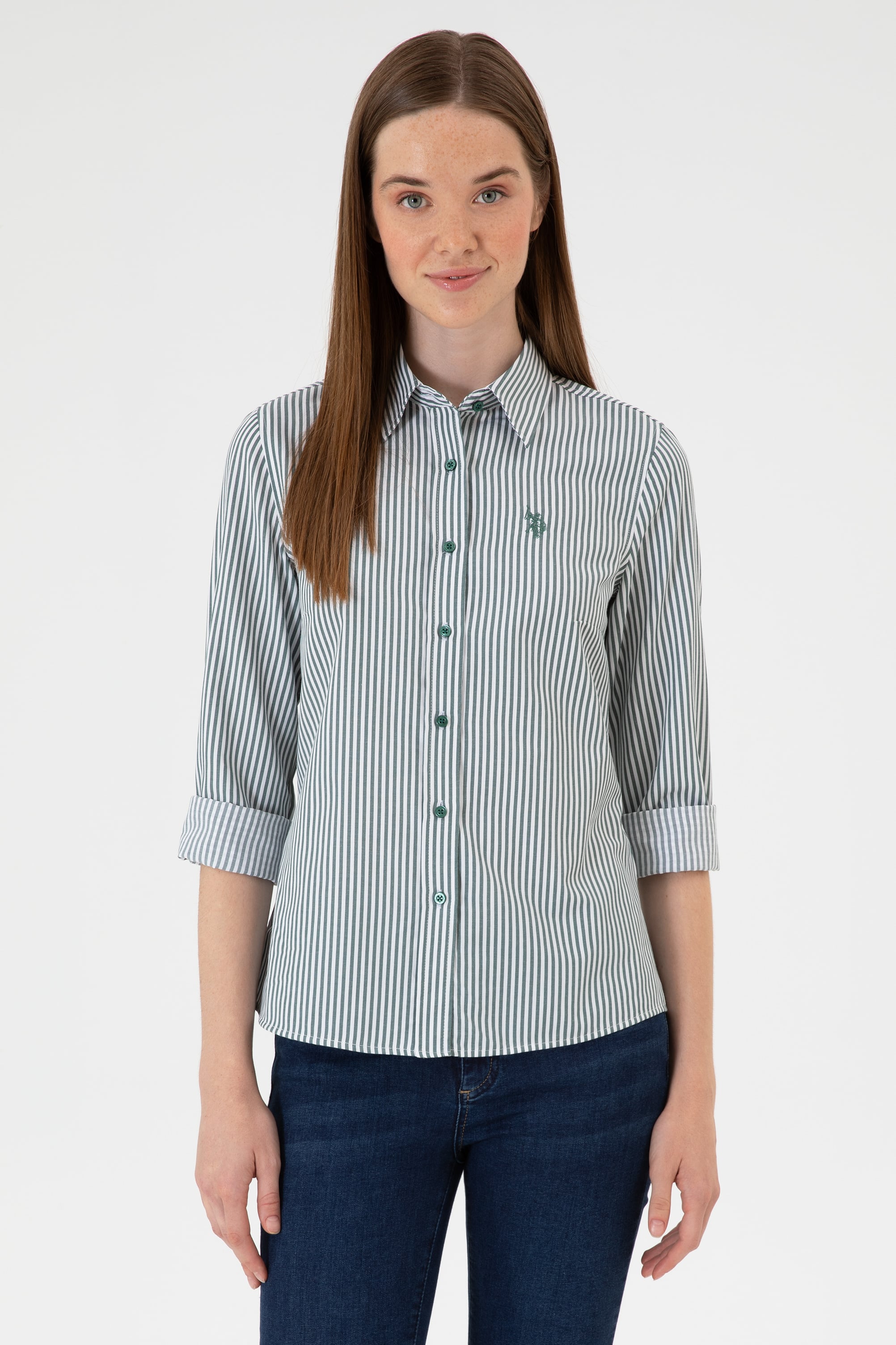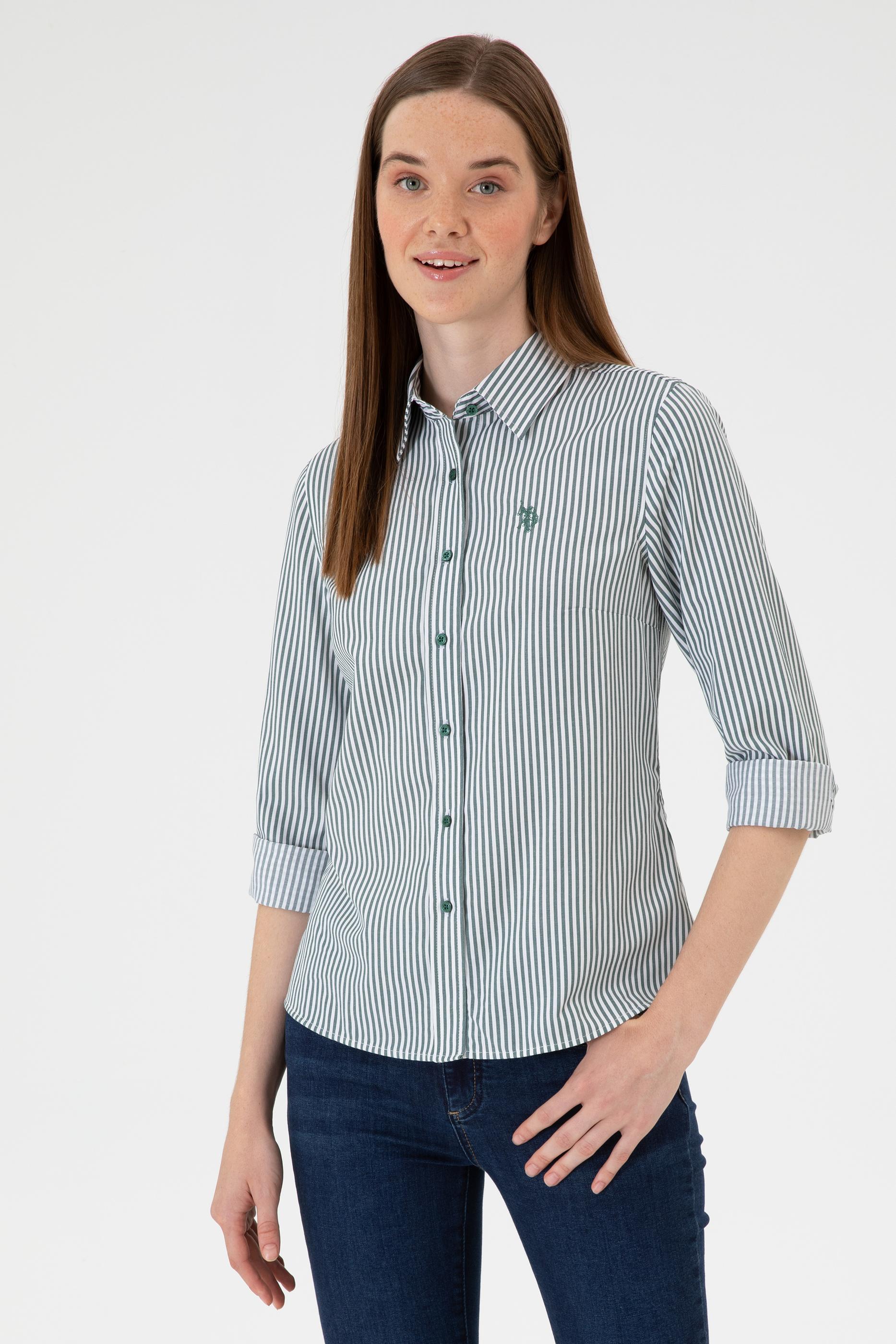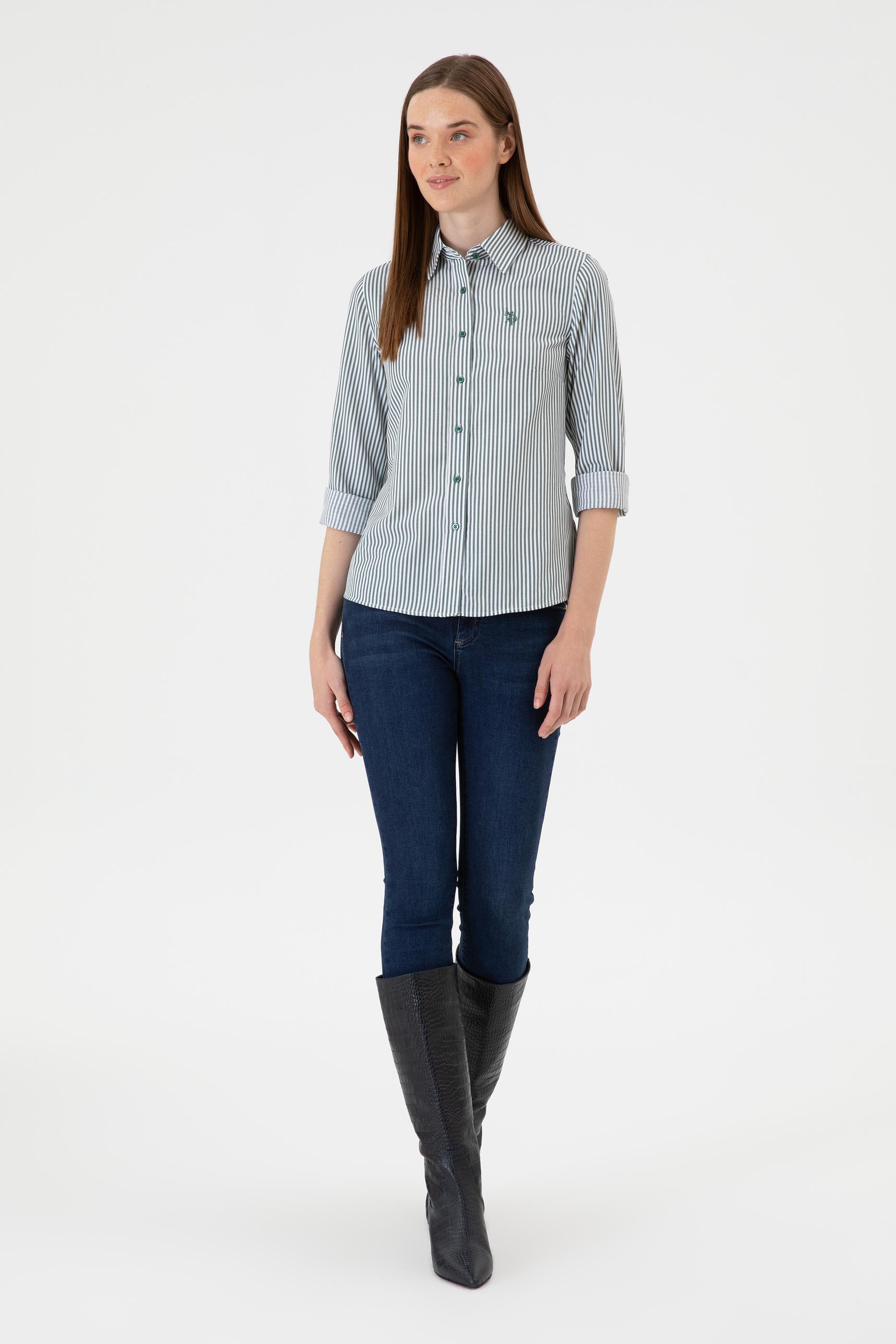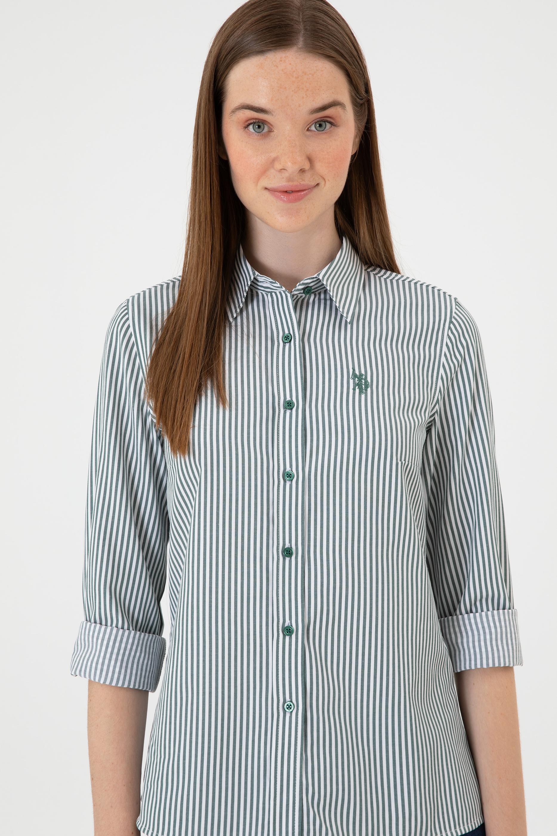 - Kadın Koyu Yeşil Çizgili Uzun Kollu Gömlek