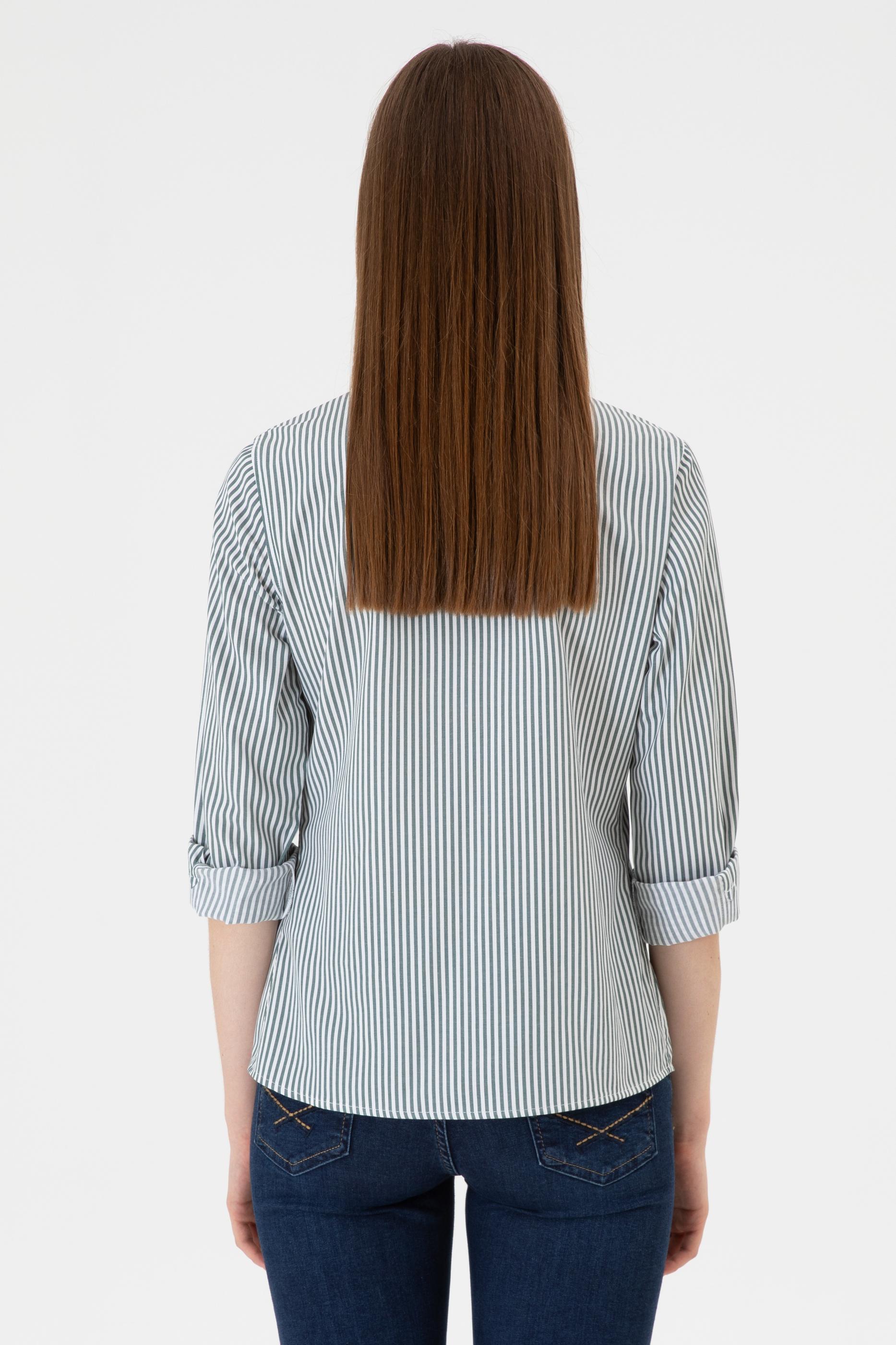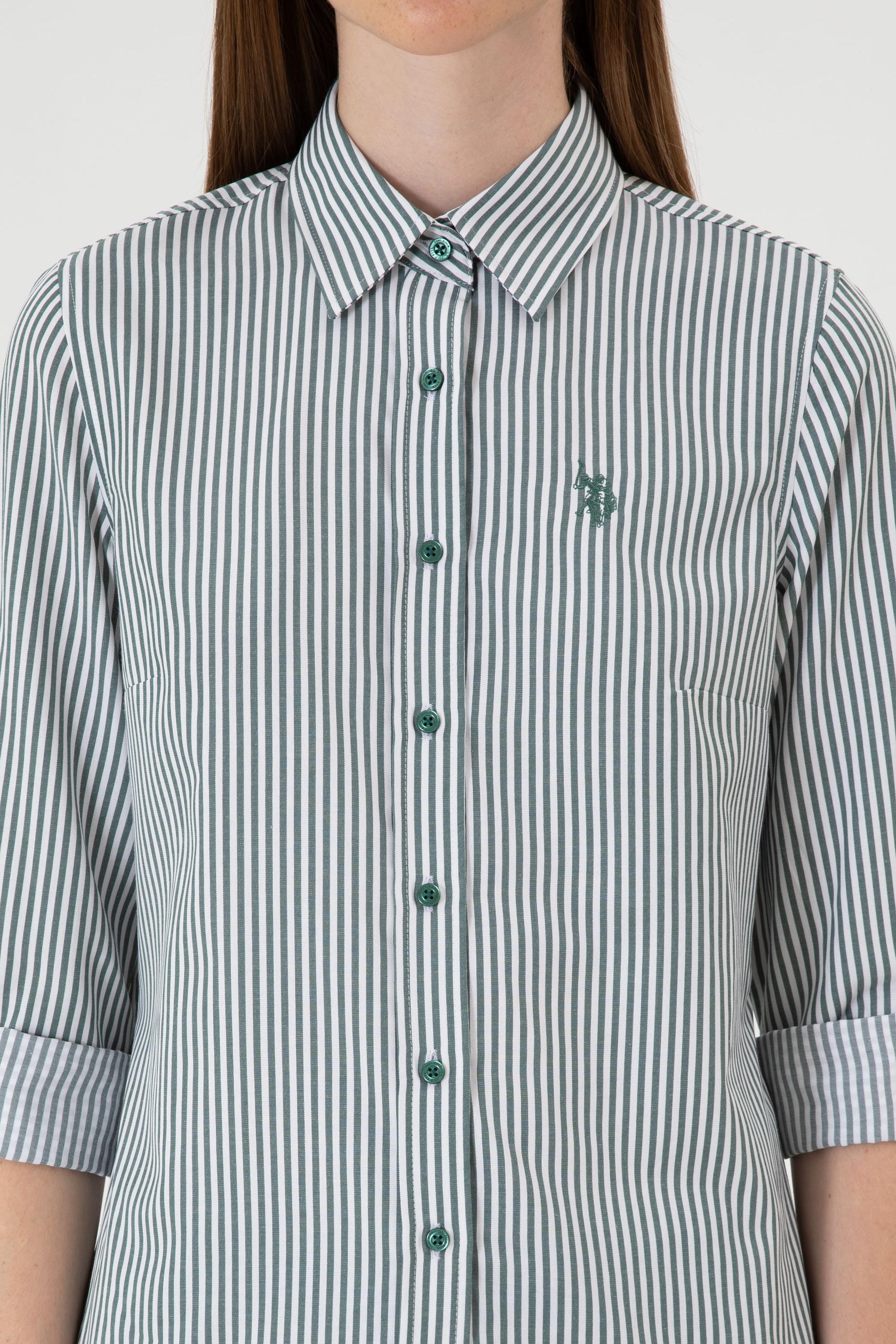 Kadın Koyu Yeşil Çizgili Uzun Kollu Gömlek
