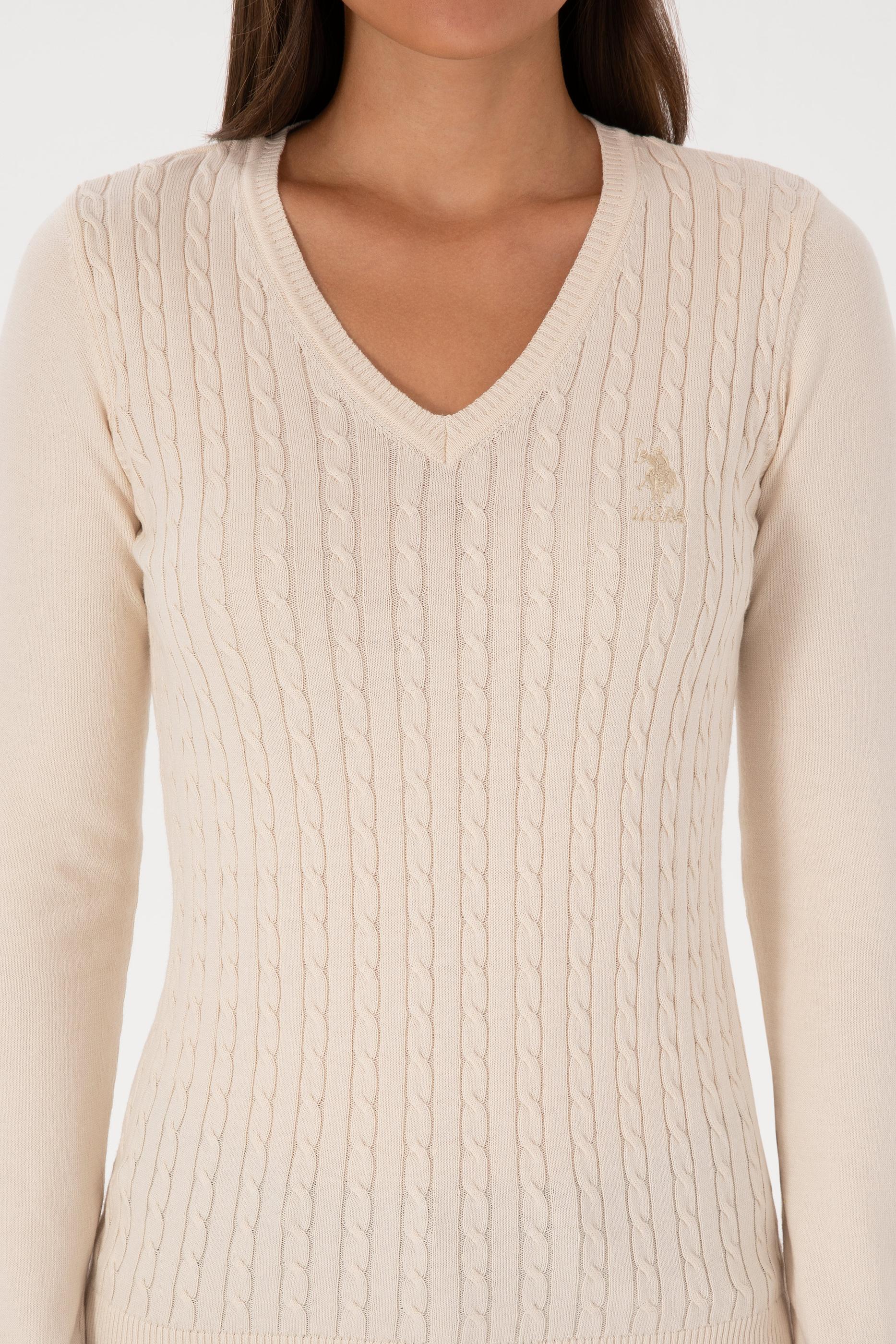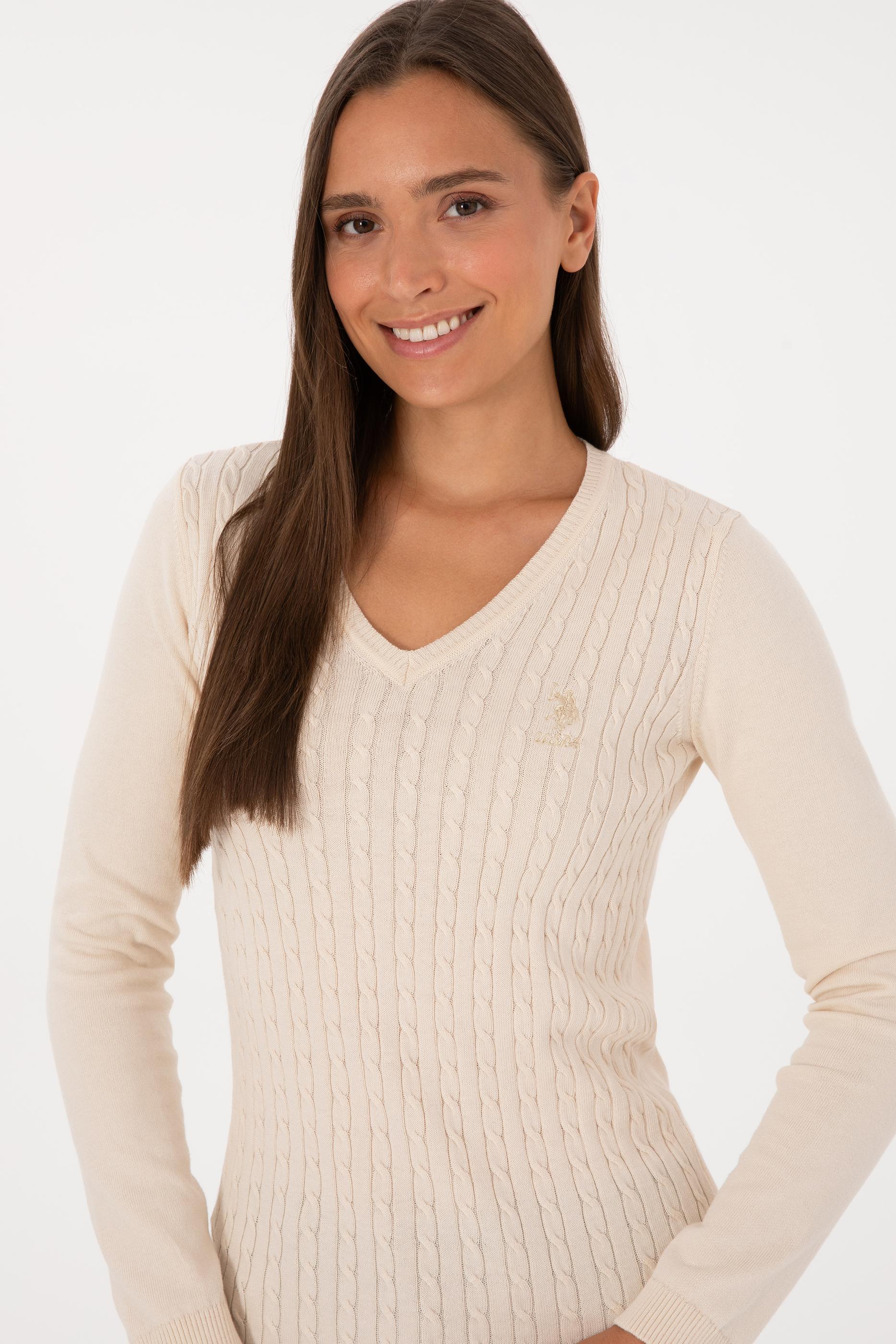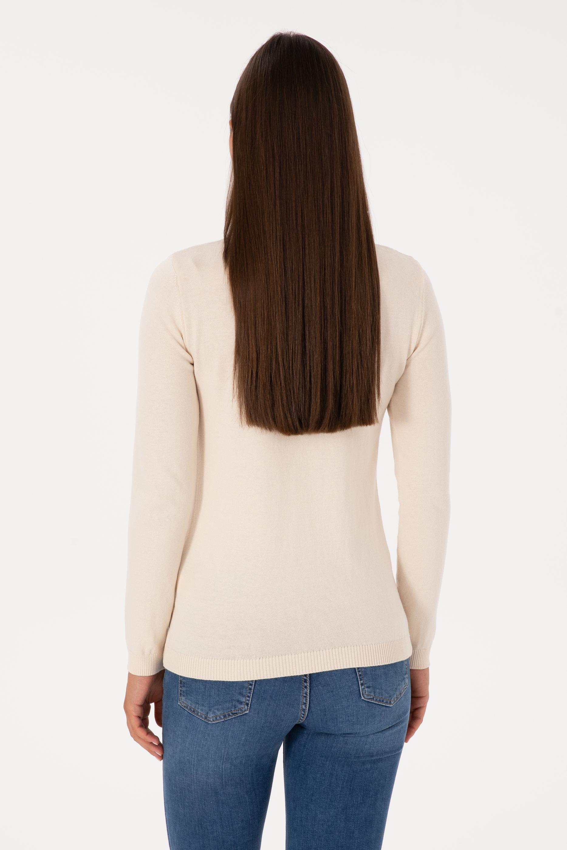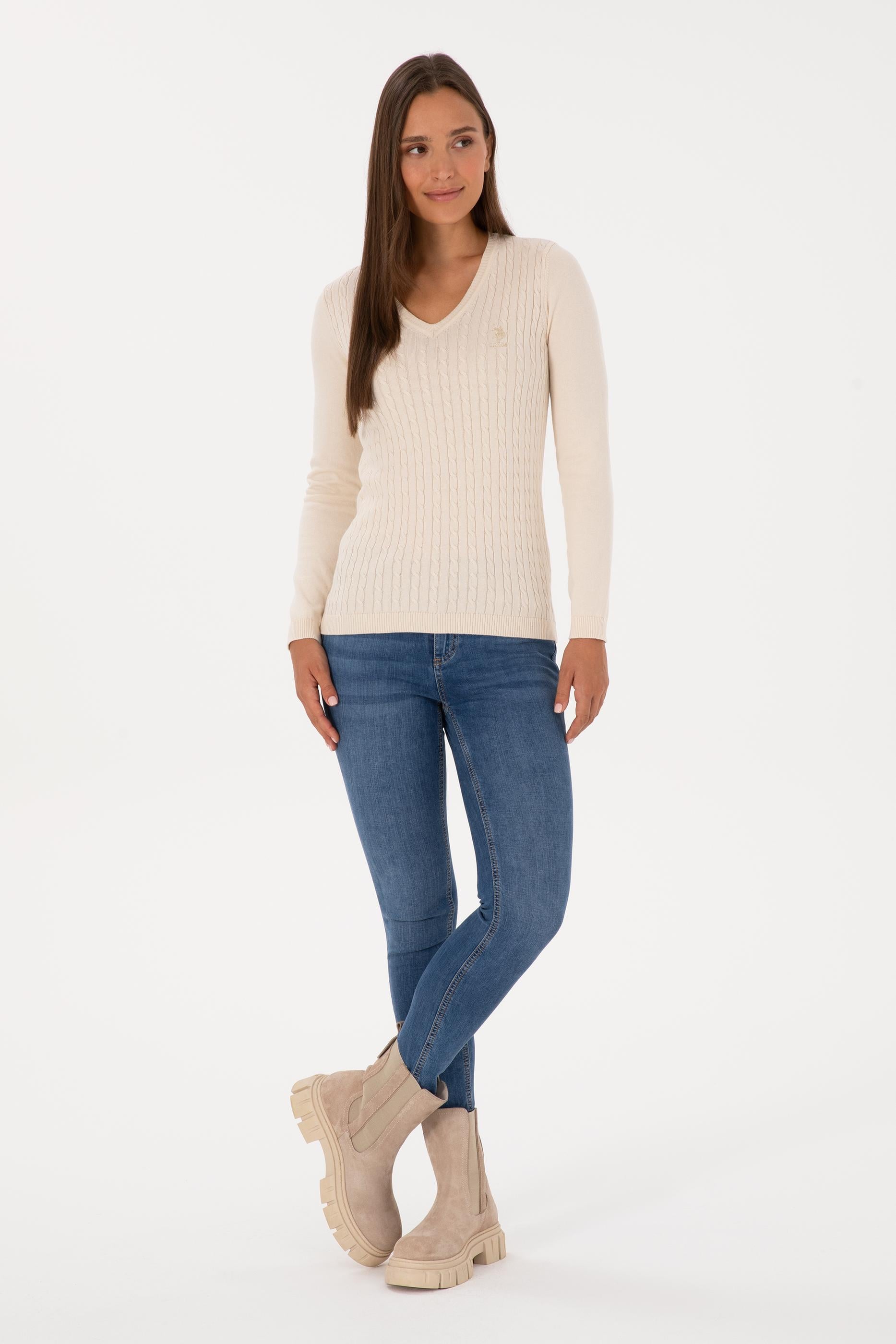 Kadın Beyaz V Yaka Basic Kazak - 50307710055