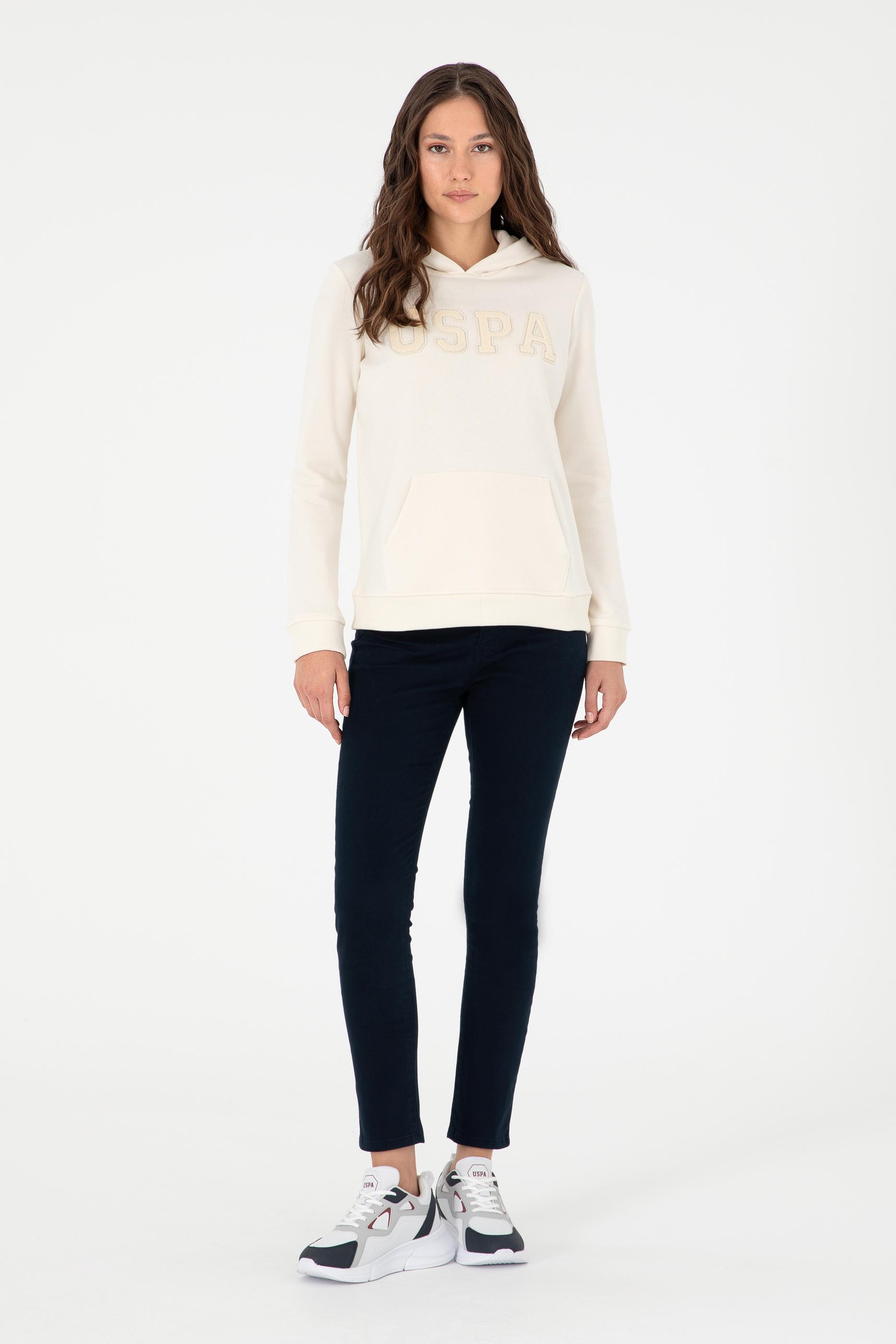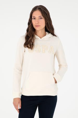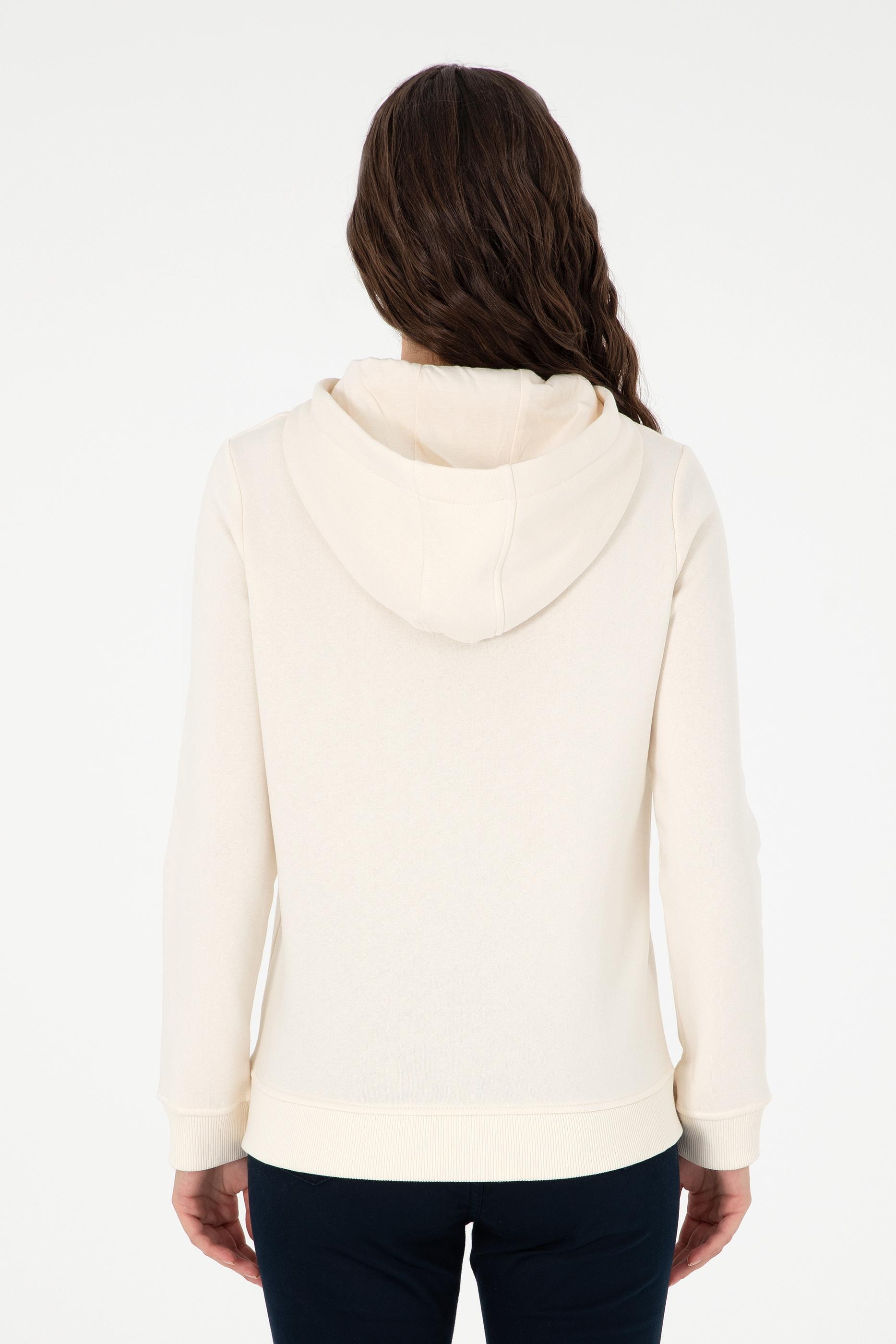 Kadın Krem Basic Kapüşonlu Sweatshirt