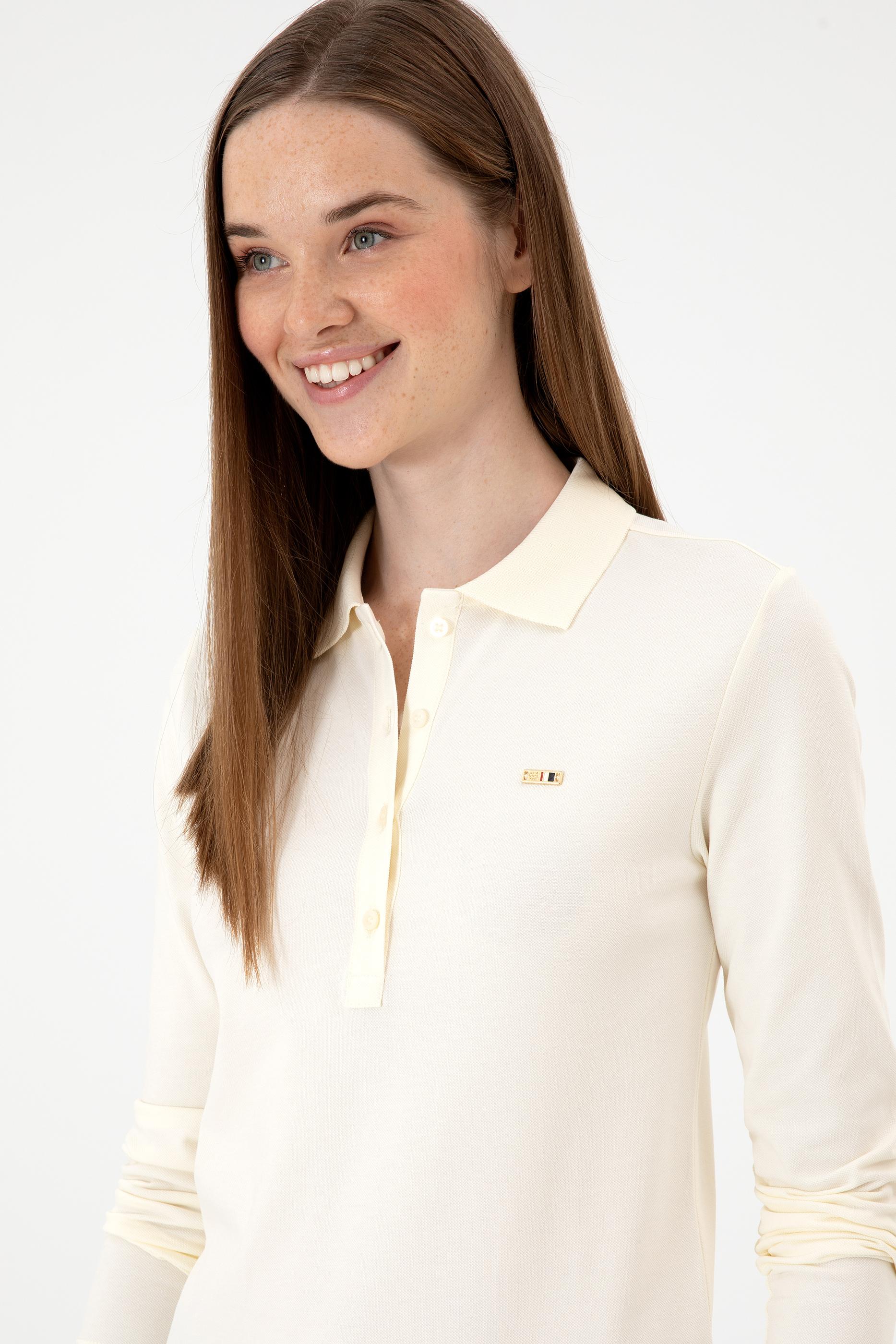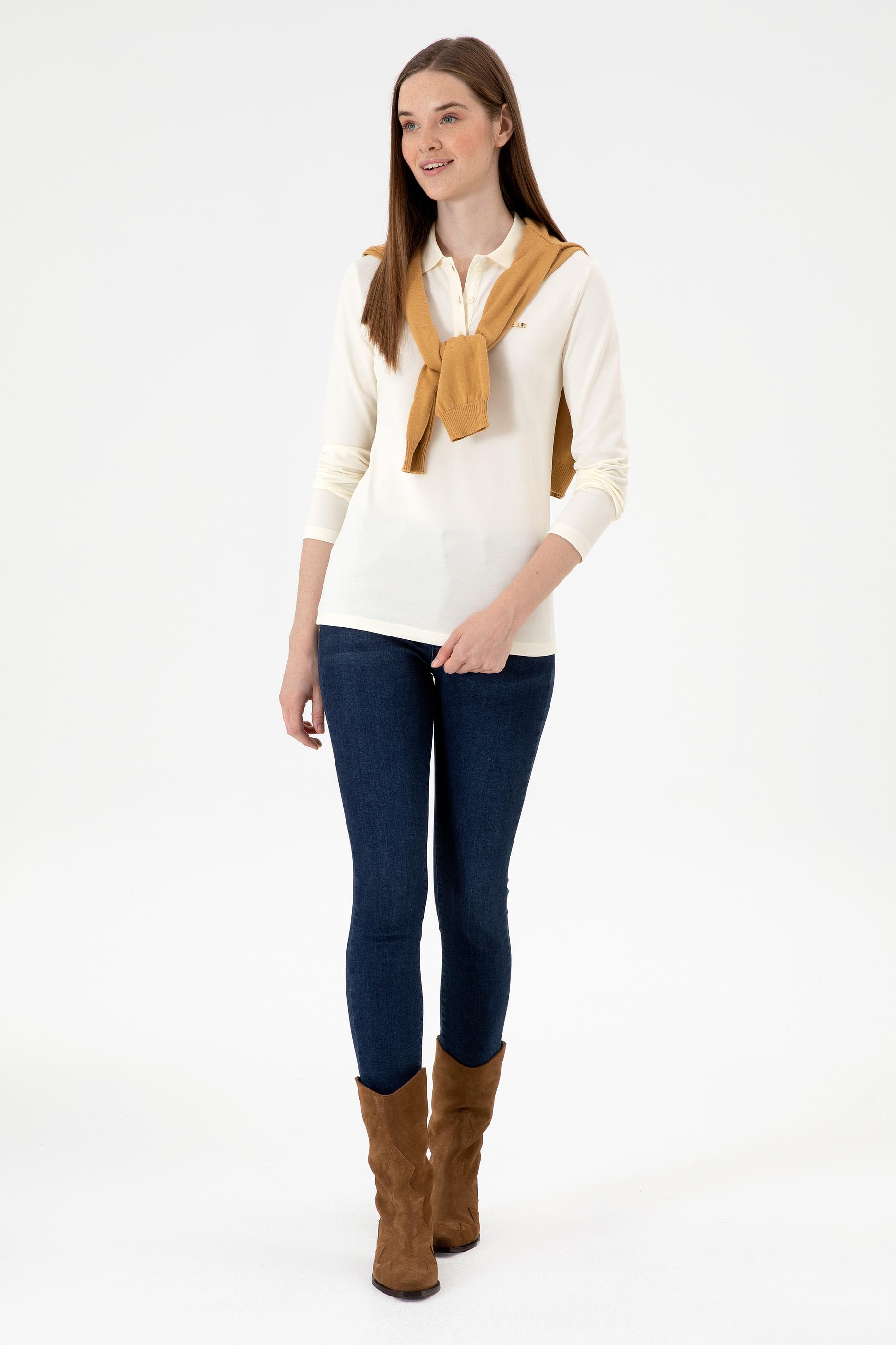 Kadın Krem Basic Polo Yaka Sweatshırt
