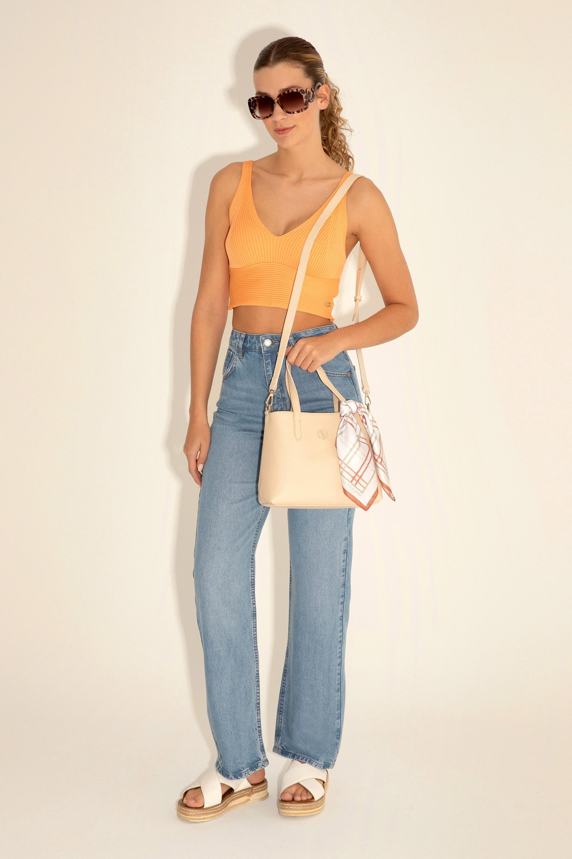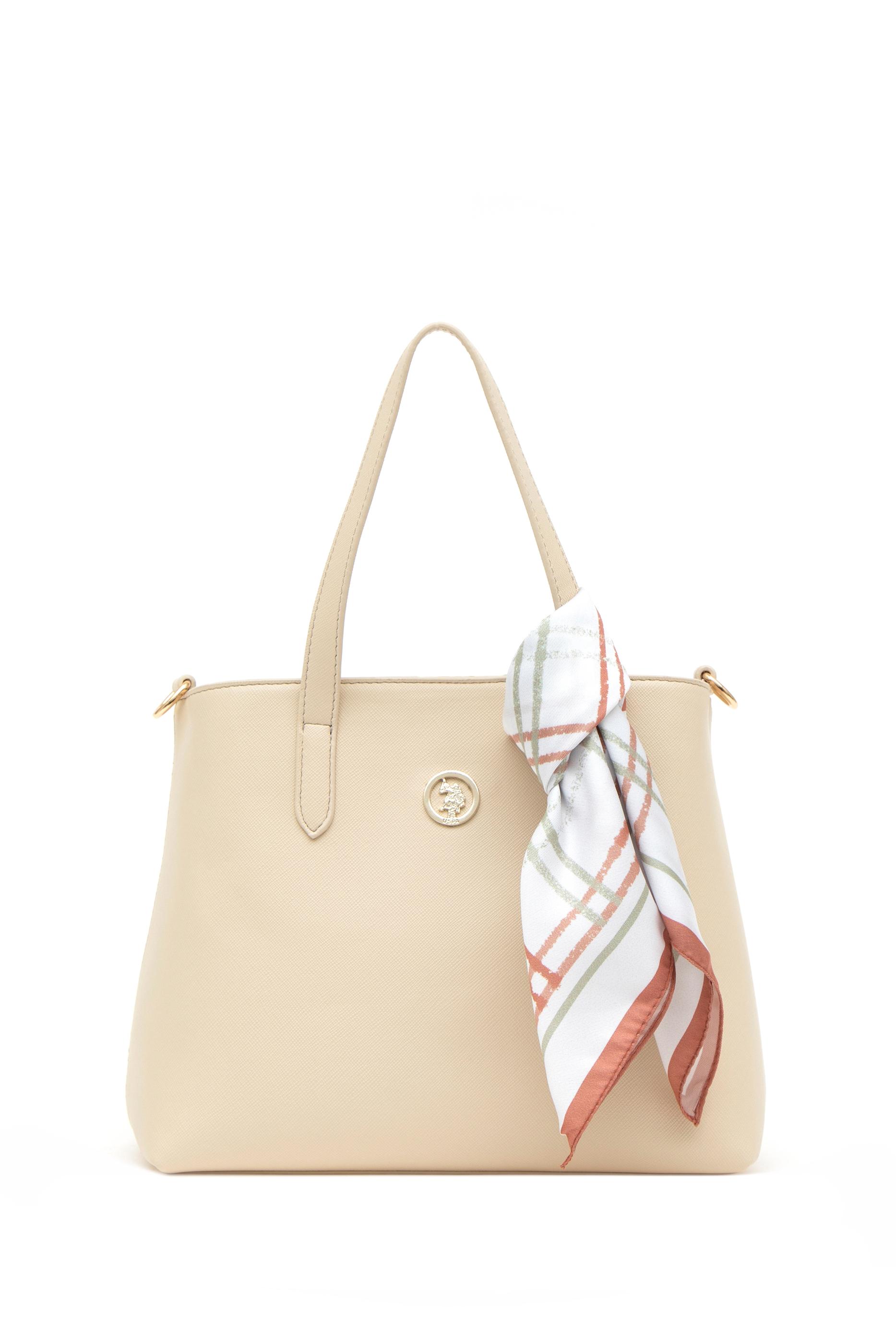 Krem rengiyle göz alıcı bir görünüm sunan orta boy kadın el çantası, çapraz ya da kola asılabilen ekstra uzun sapıyla pratik kullanım sağlıyor. İnternete özel olarak tasarlanan bu çanta, anneler gününe özel kutulu ve fular hediyeli olarak sunuluyor. Fuları çantadan ayrı olarak muhteşem bir aksesuar olarak kullanarak şıklığınızı daha da ön plana çıkartabilirsiniz.