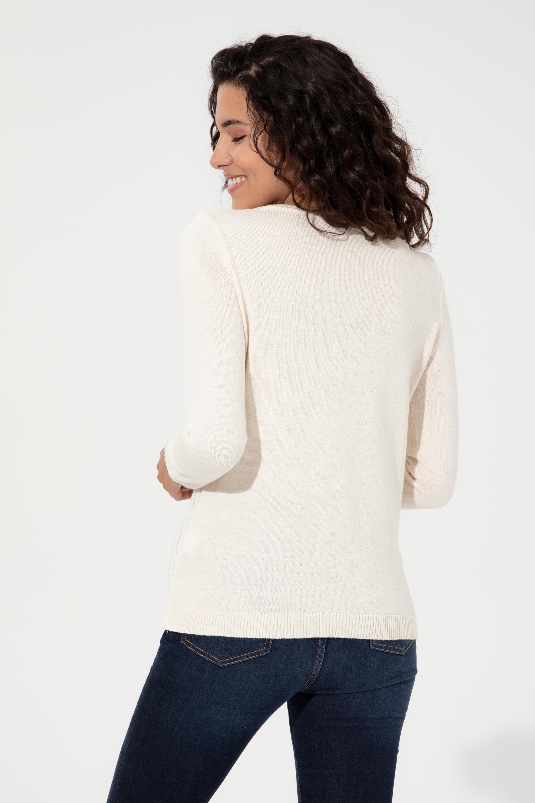 %100 akrilikten üretilen krem triko kazak modelimiz yumuşacık dokusu, sağlam yapısı ve sağladığı doğal sıcaklık hissiyle serin havalarda kurtarıcınız oluyor. Sahip olduğu nötr tonla doğal bir şıklık sunan krem rengi kazak modelimiz stilinize zarif bir hava katıyor. Modelimizin tasarımında kullanılan bisiklet yaka ise klasik stile göz kırpıyor. Aynı zamanda delikli örgü yapısıyla ajurlu kazak modelimiz dikkat çekici bir görünüm de vadediyor.