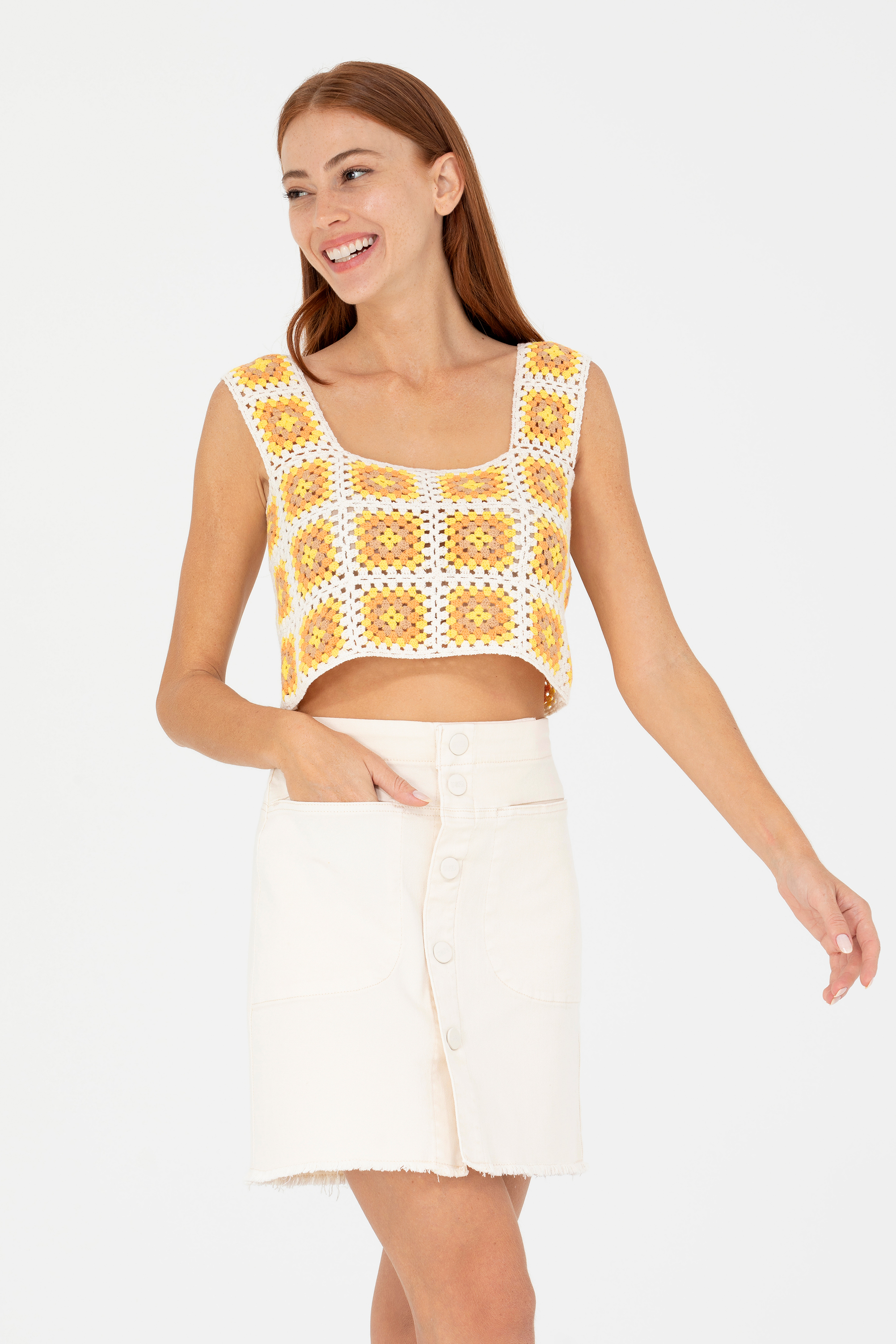 Kadın Krem Kare Yaka Kazak - 50262463003