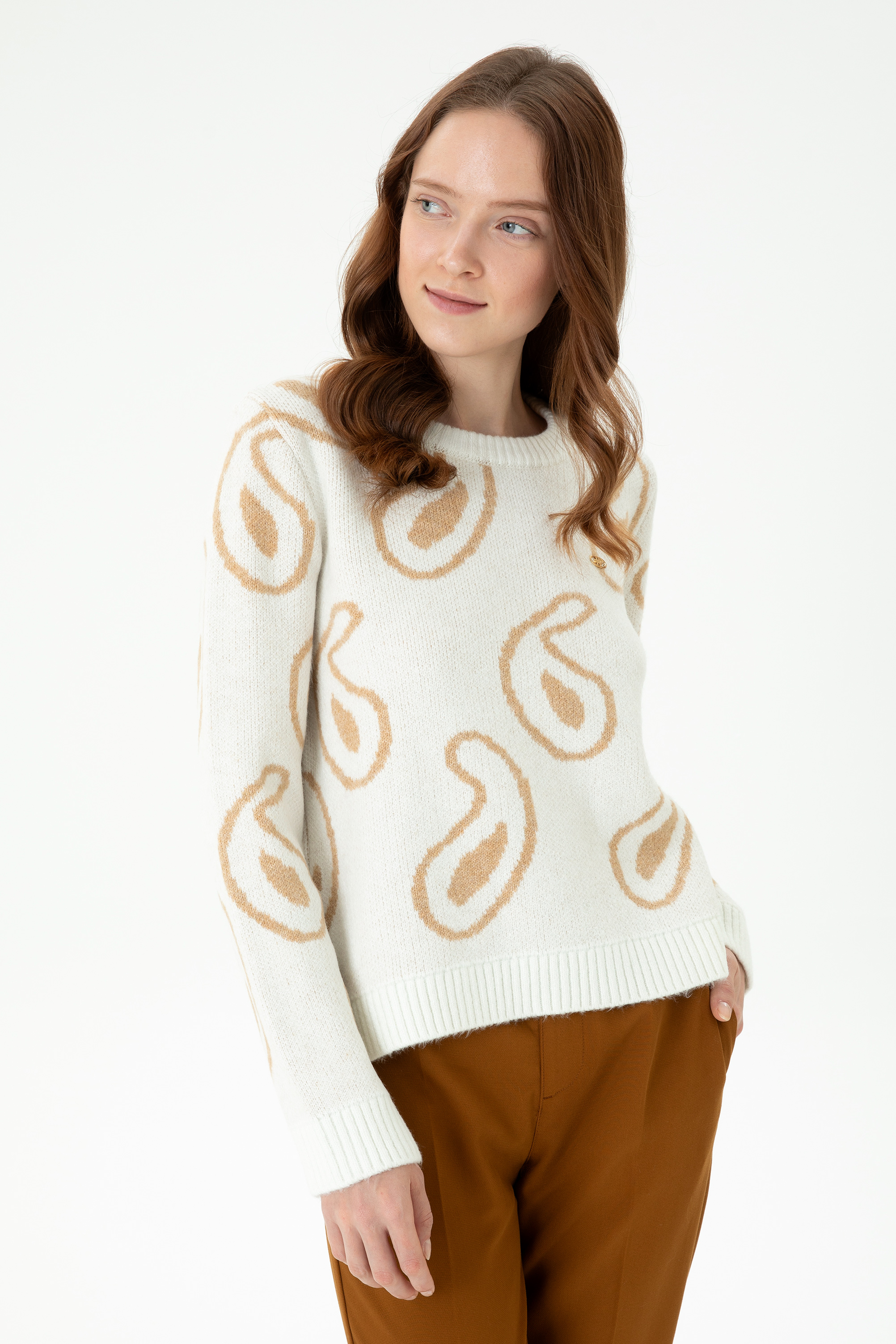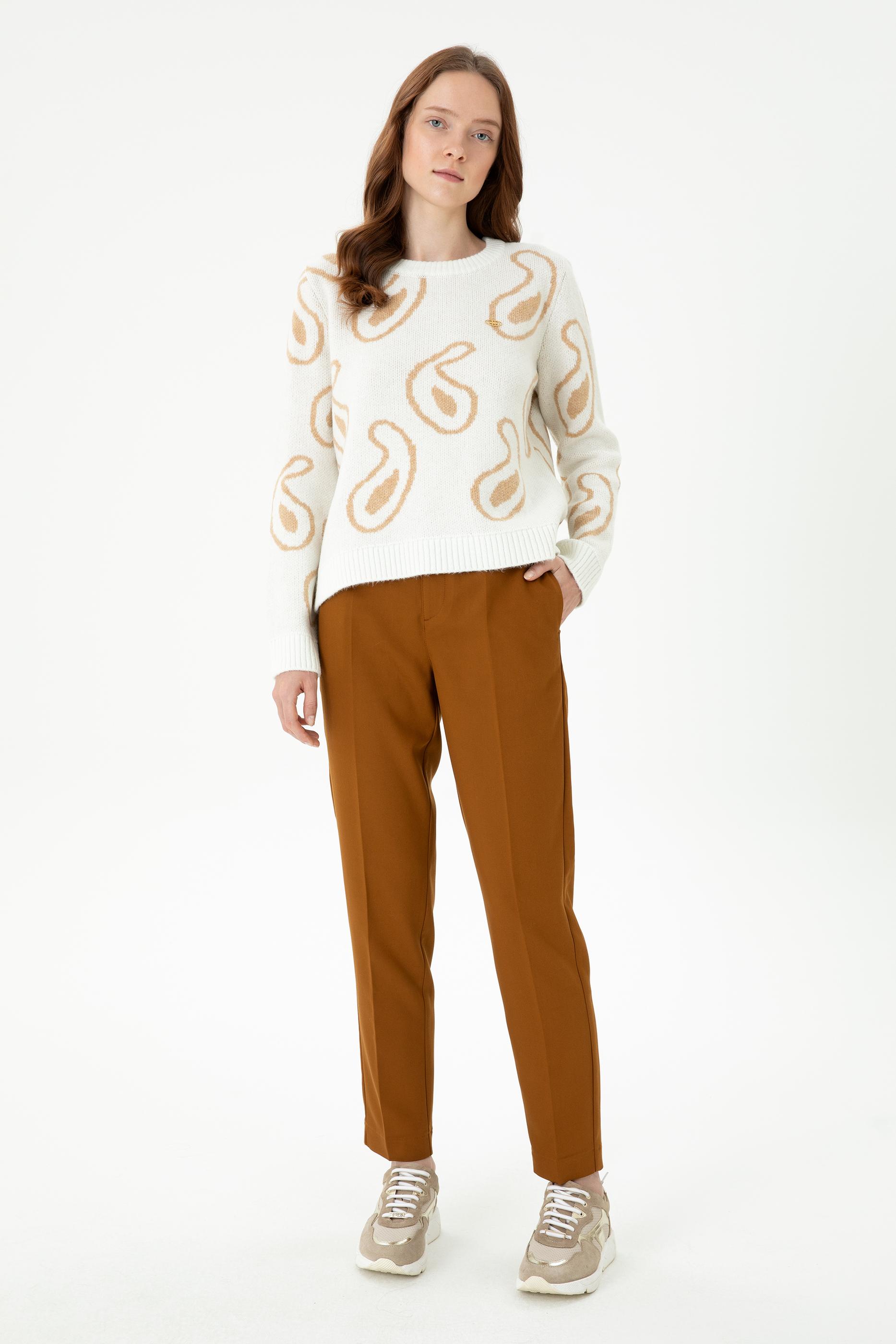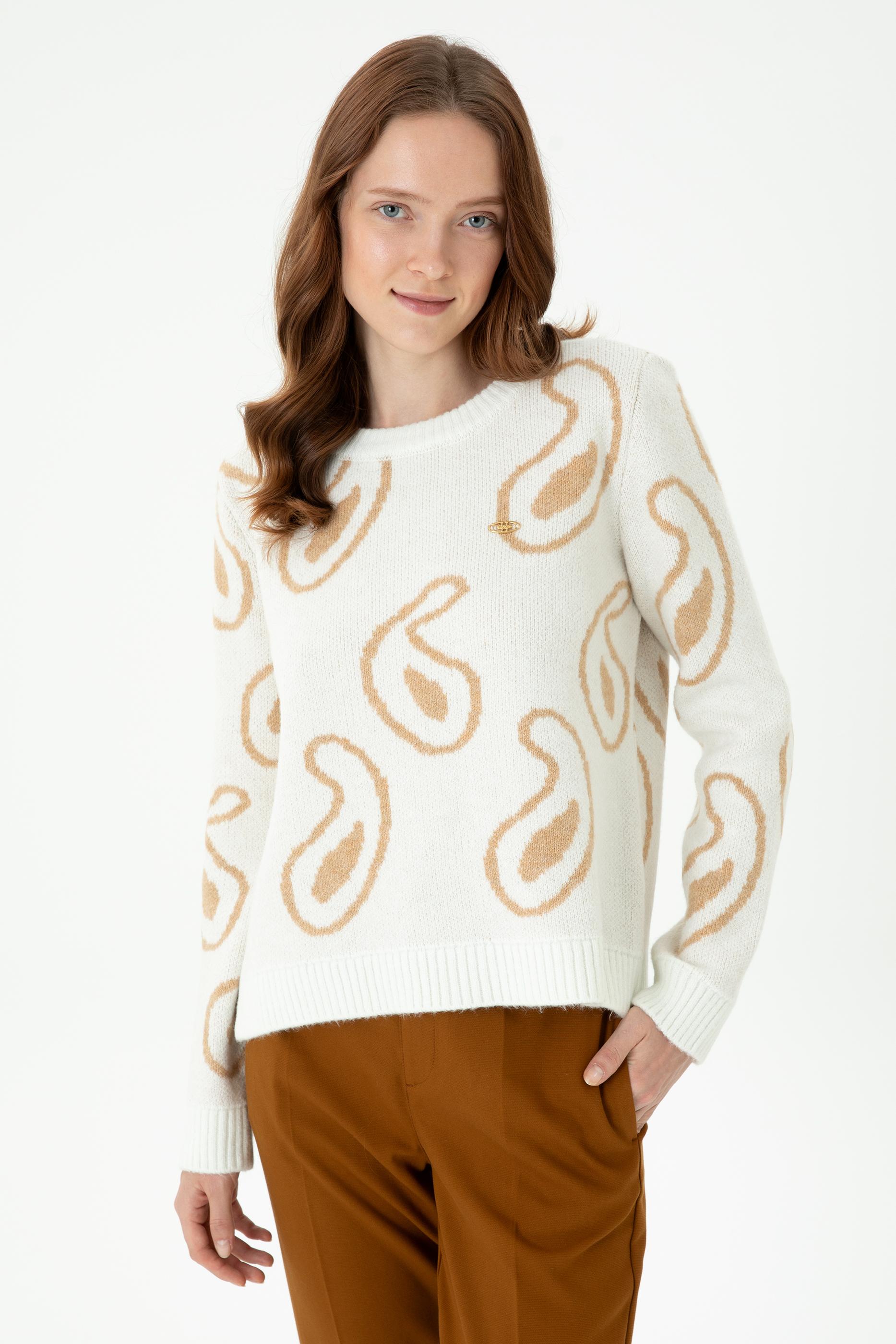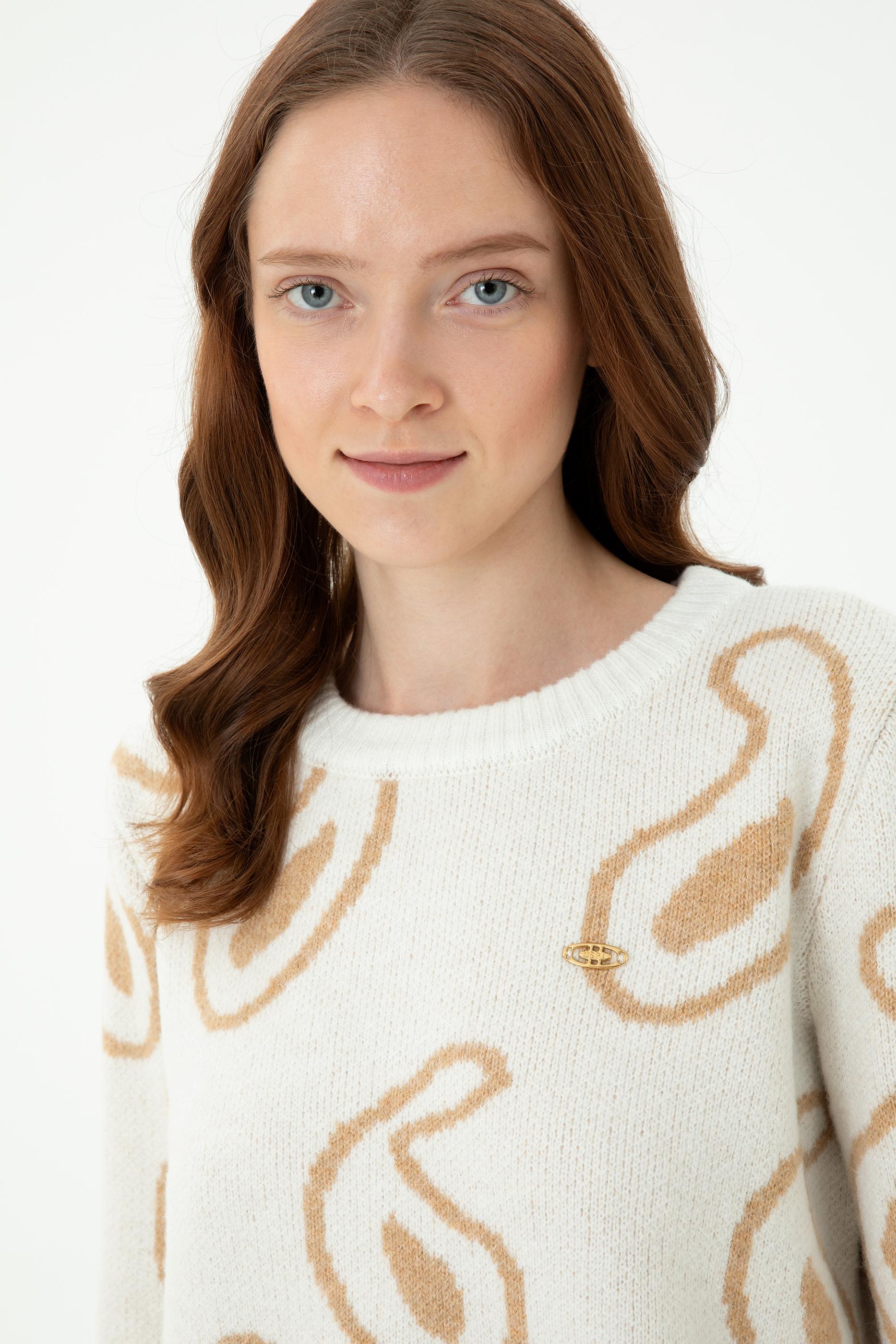 Kadın Bisiklet Yaka Krem Kazak