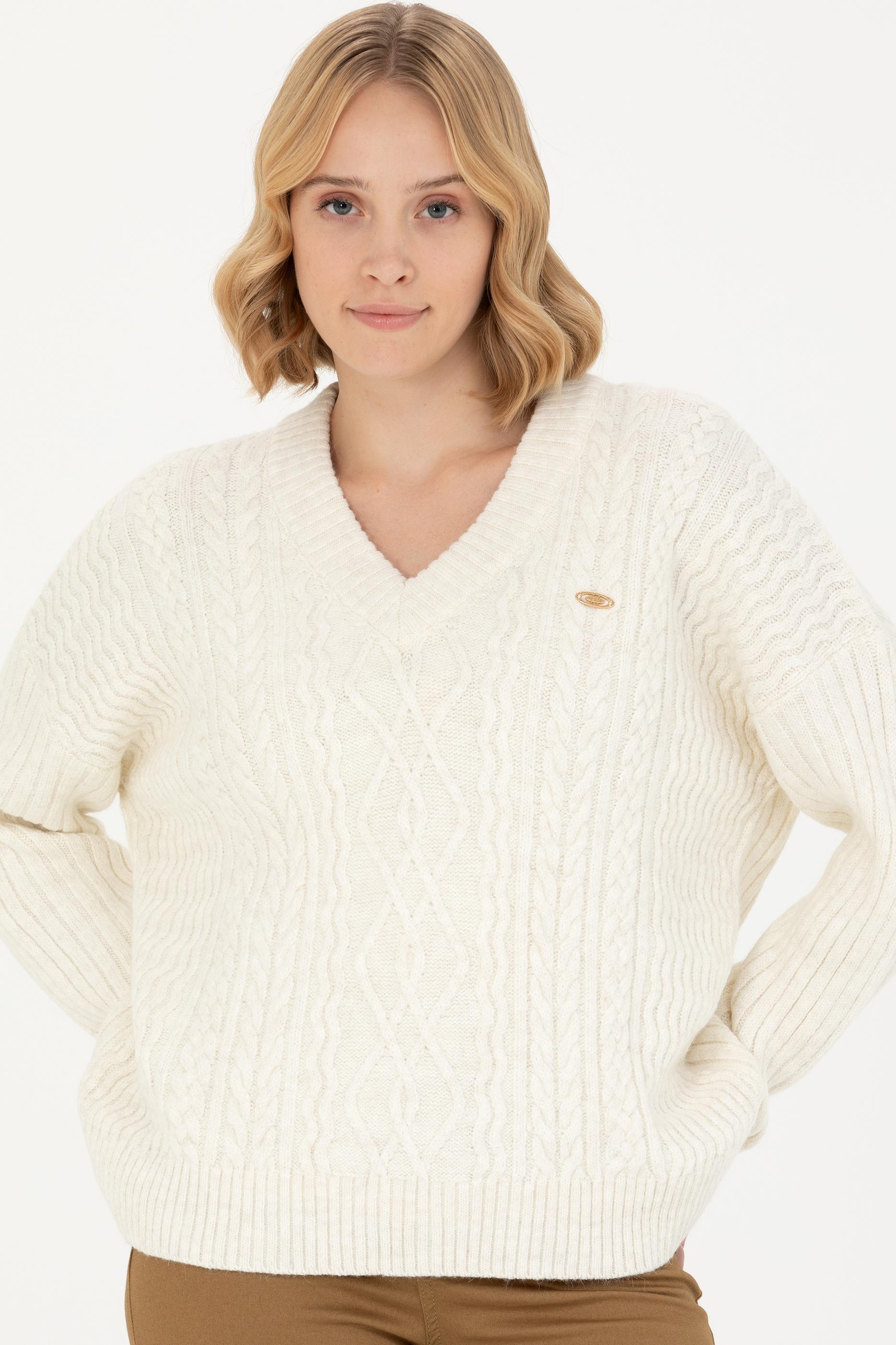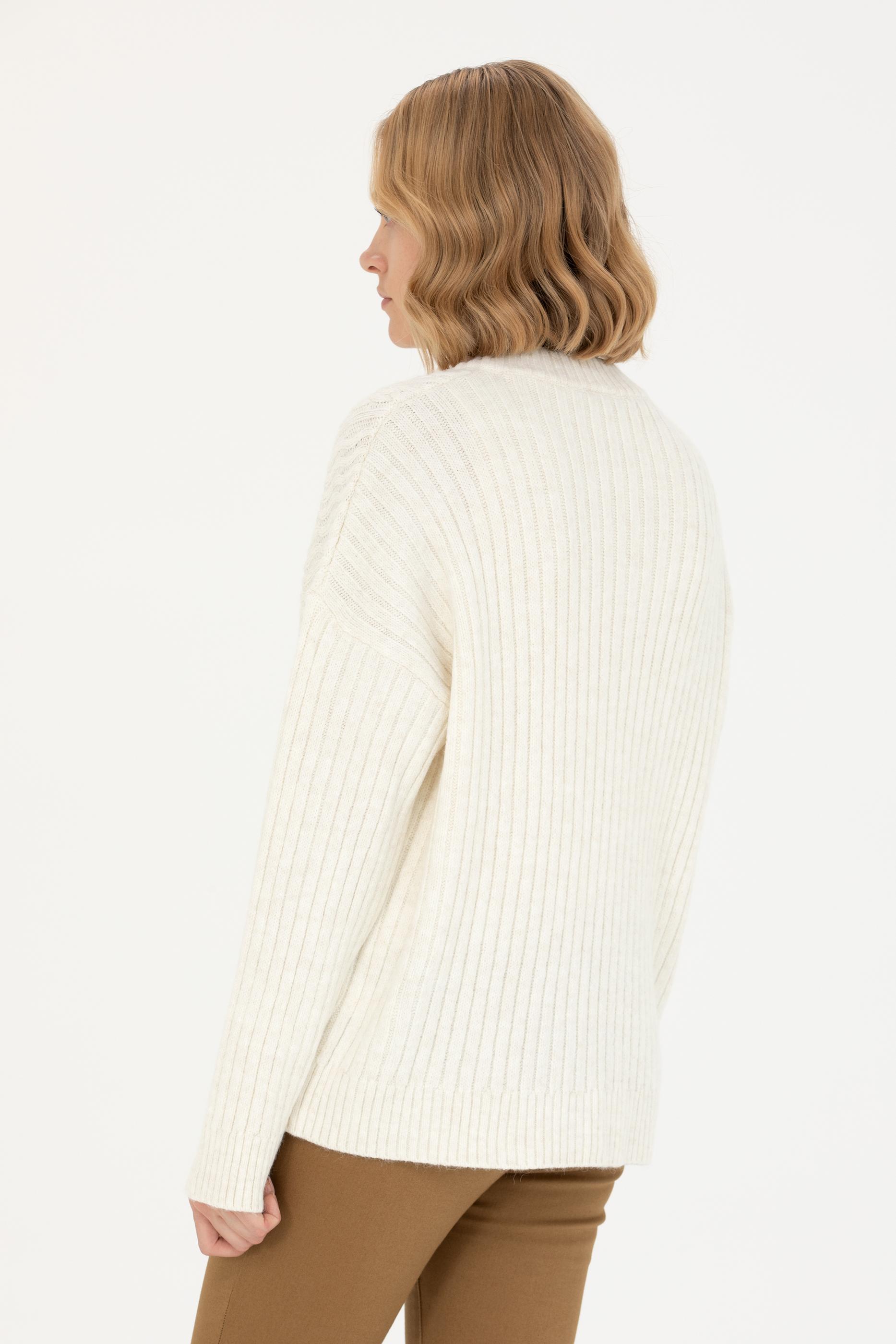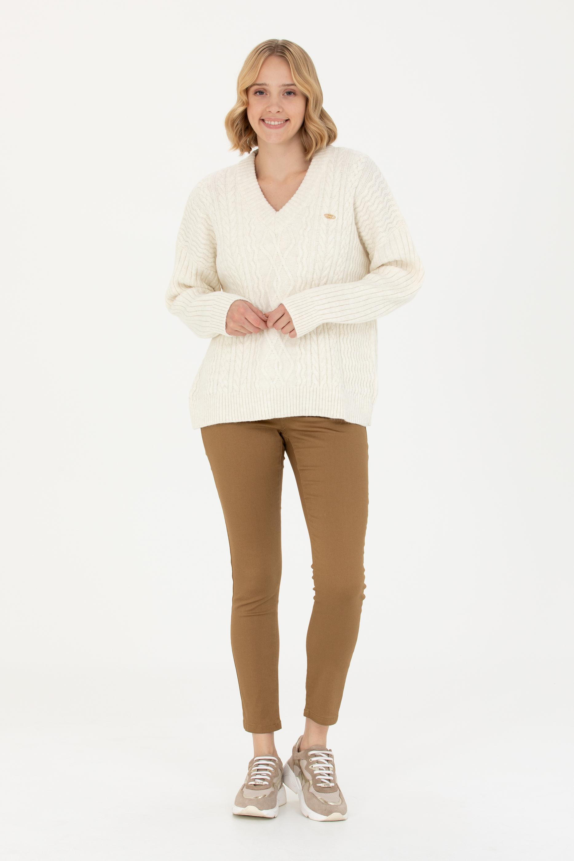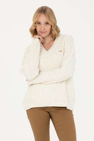 Kadın Krem V Yaka Kazak