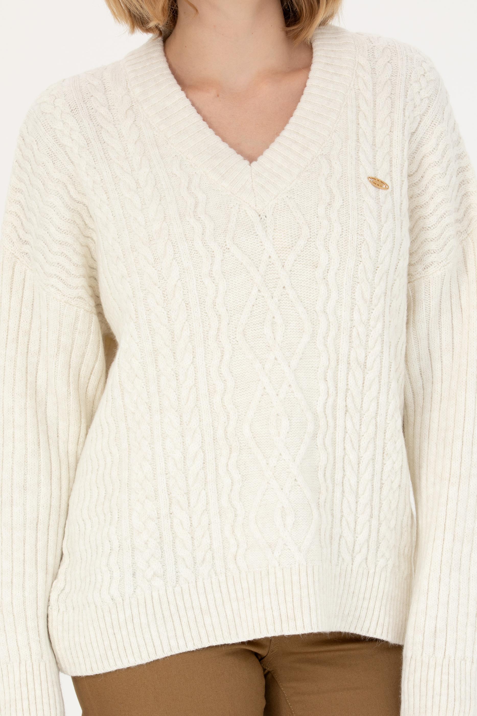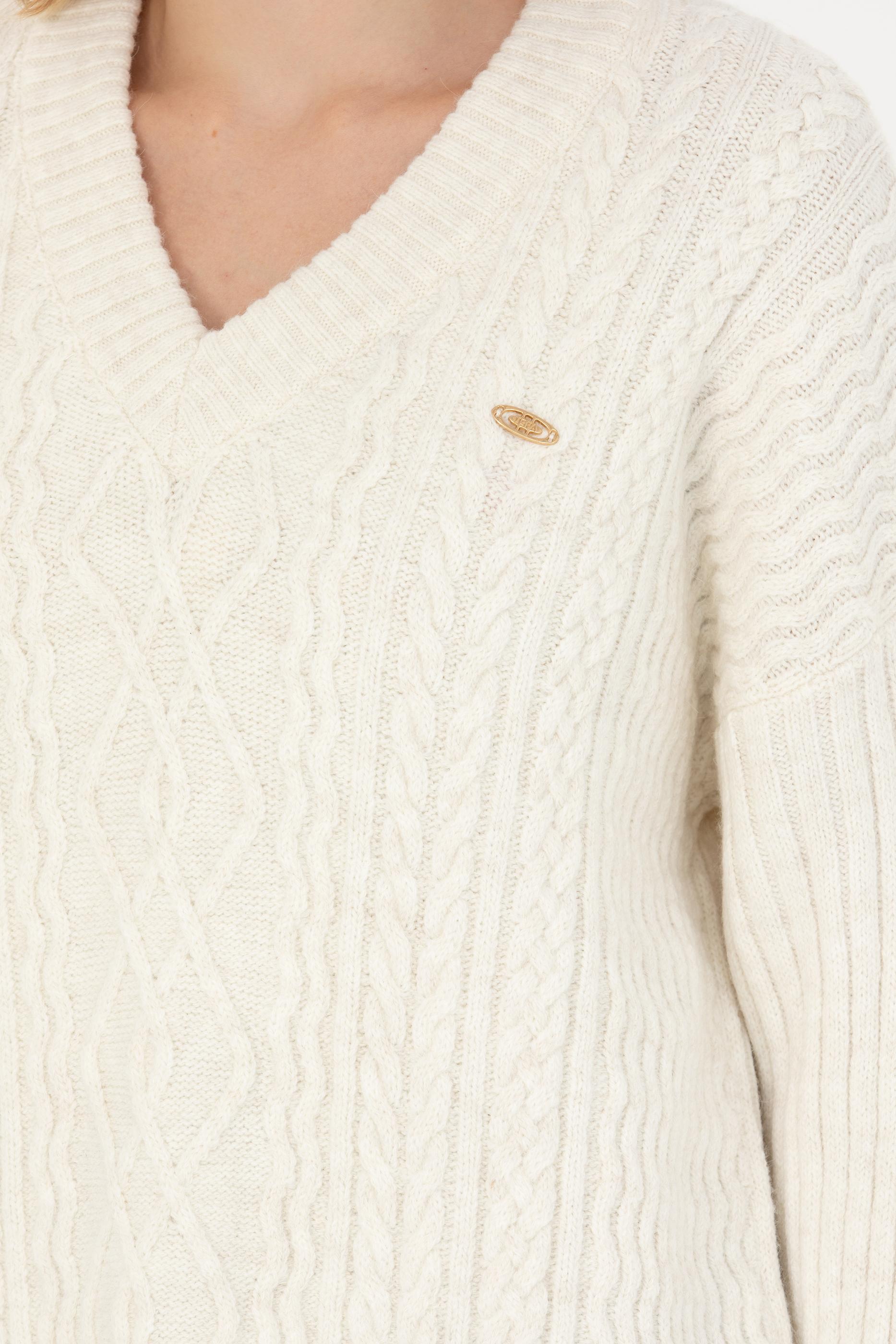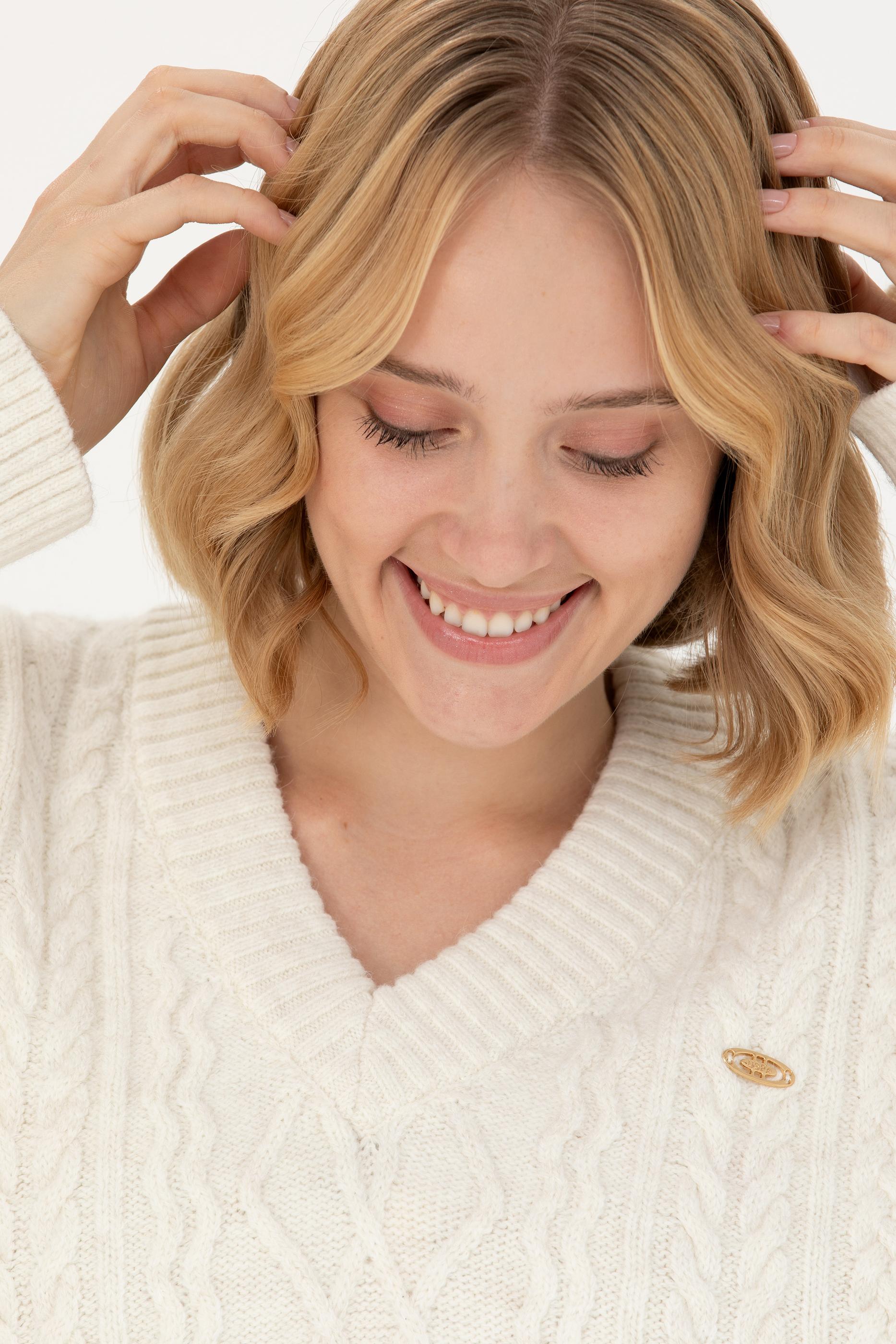 Kadın Krem V Yaka Kazak