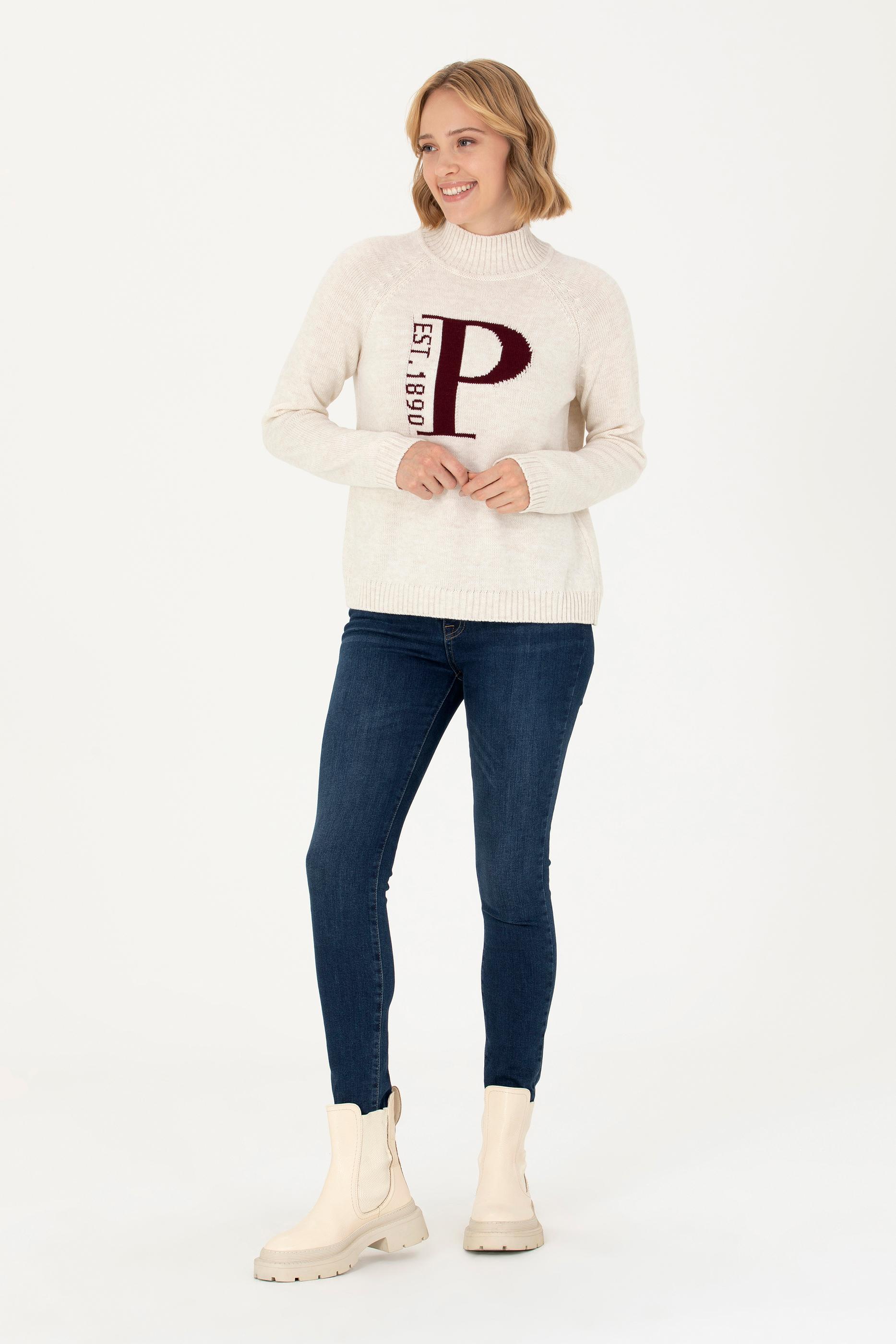 Kadın Krem Balıkçı Yaka Kazak - 50272031004