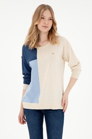 Kadın Krem Bisiklet Yaka Kazak