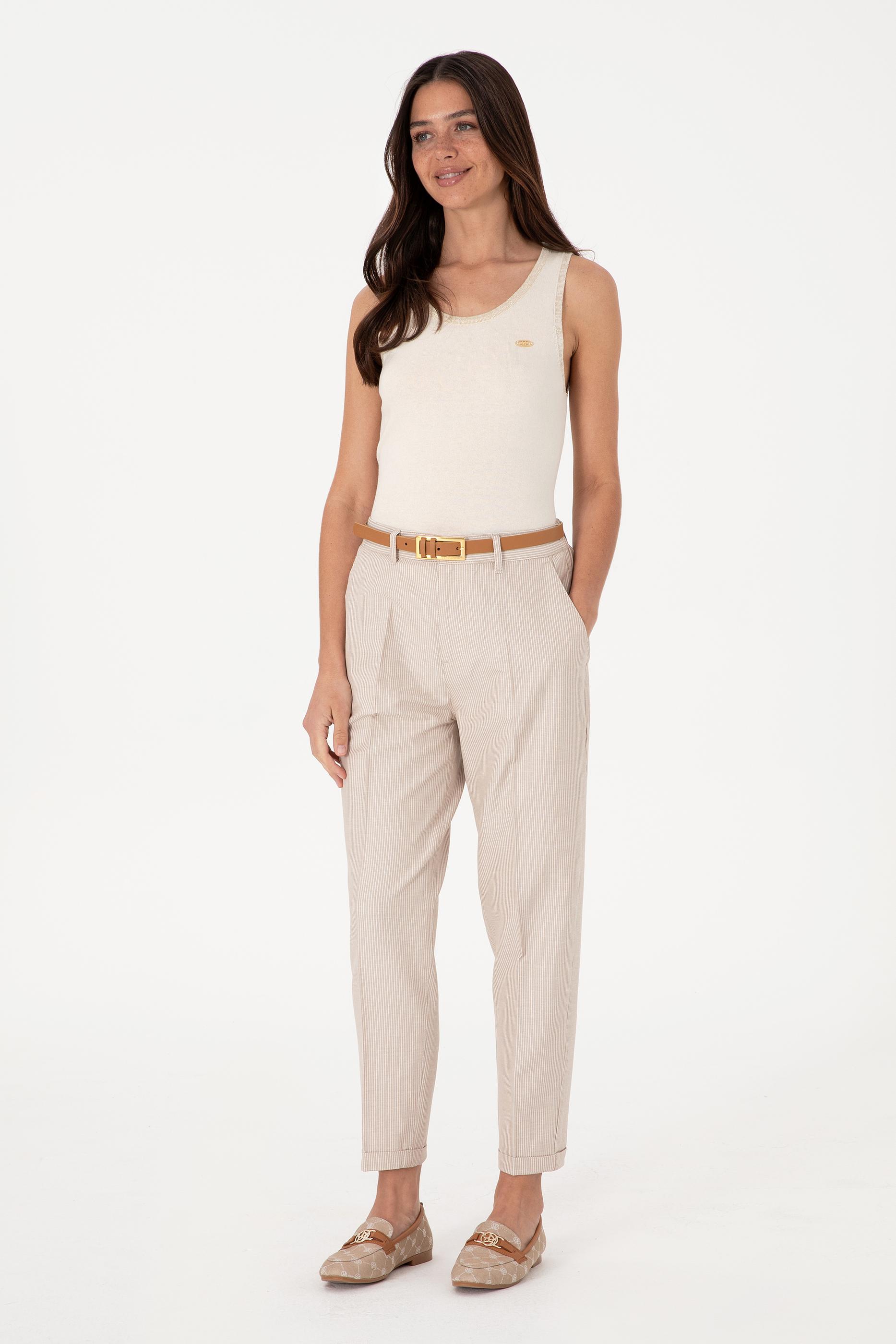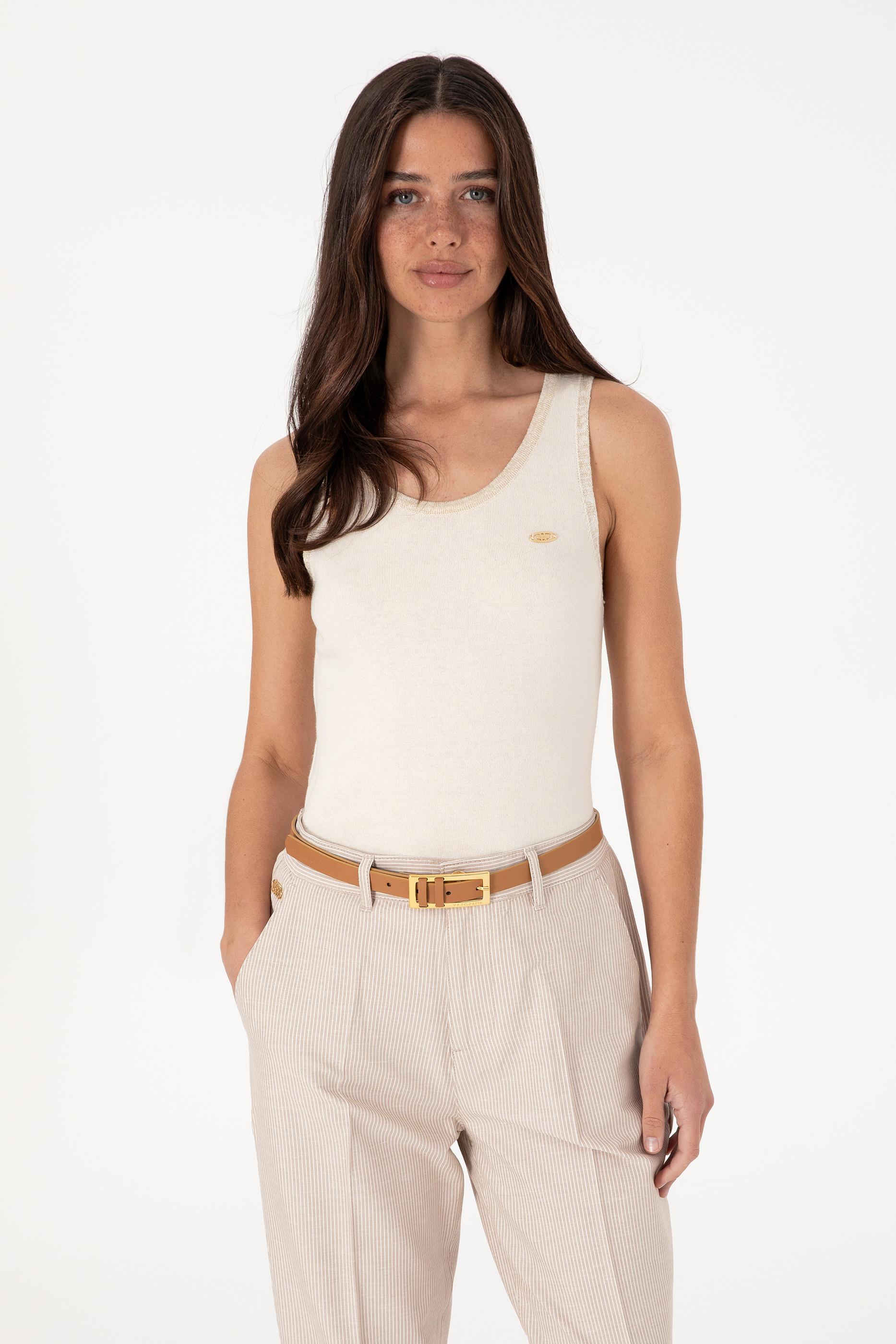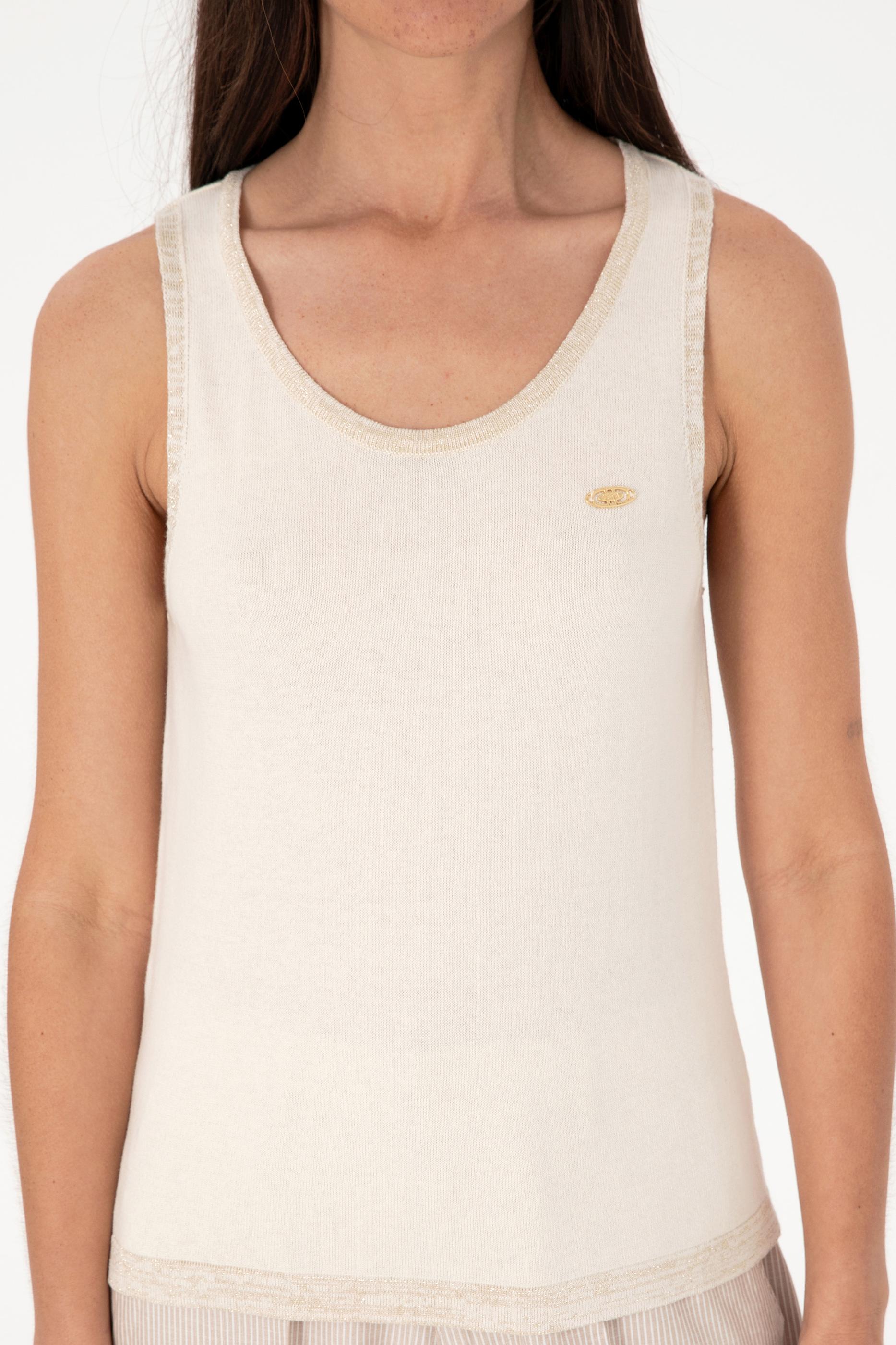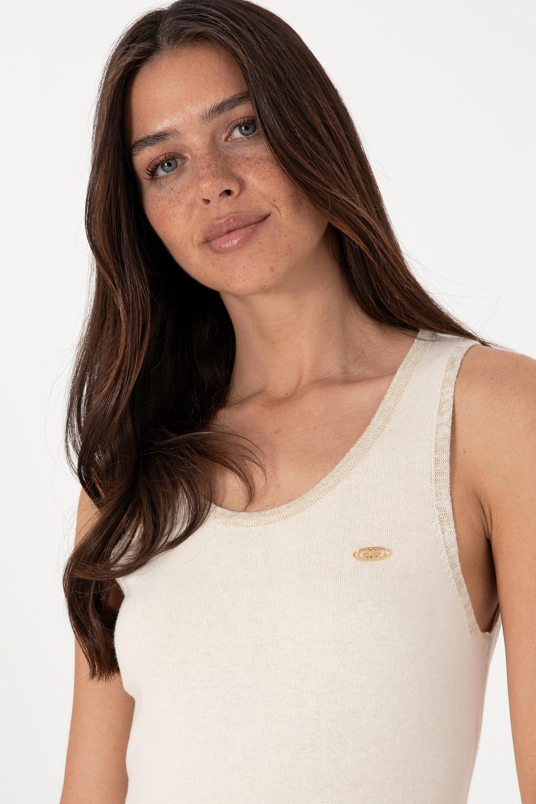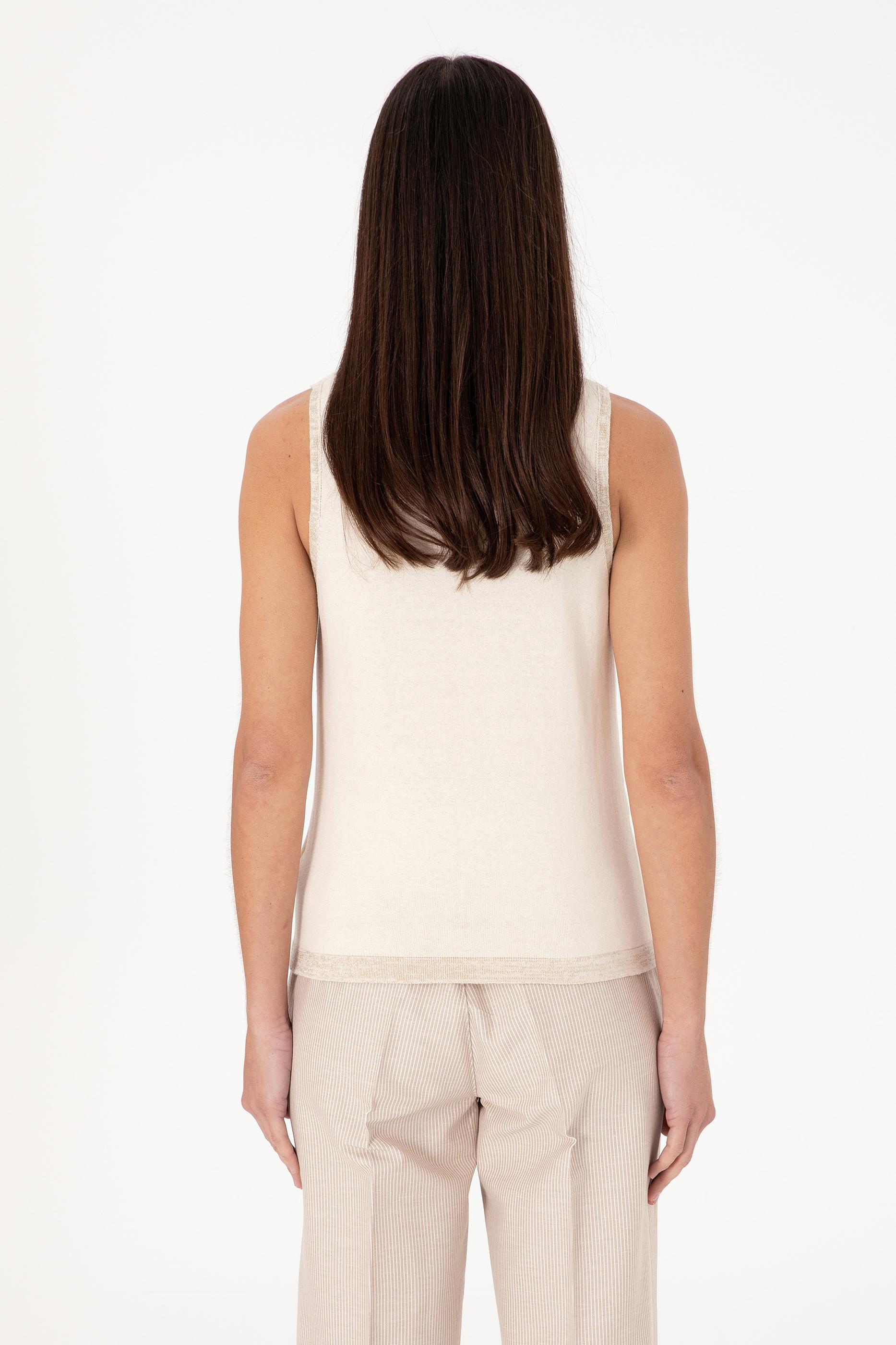 Kadın Krem Bisiklet Yaka Triko Tişört