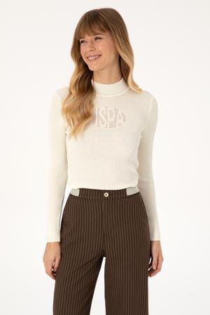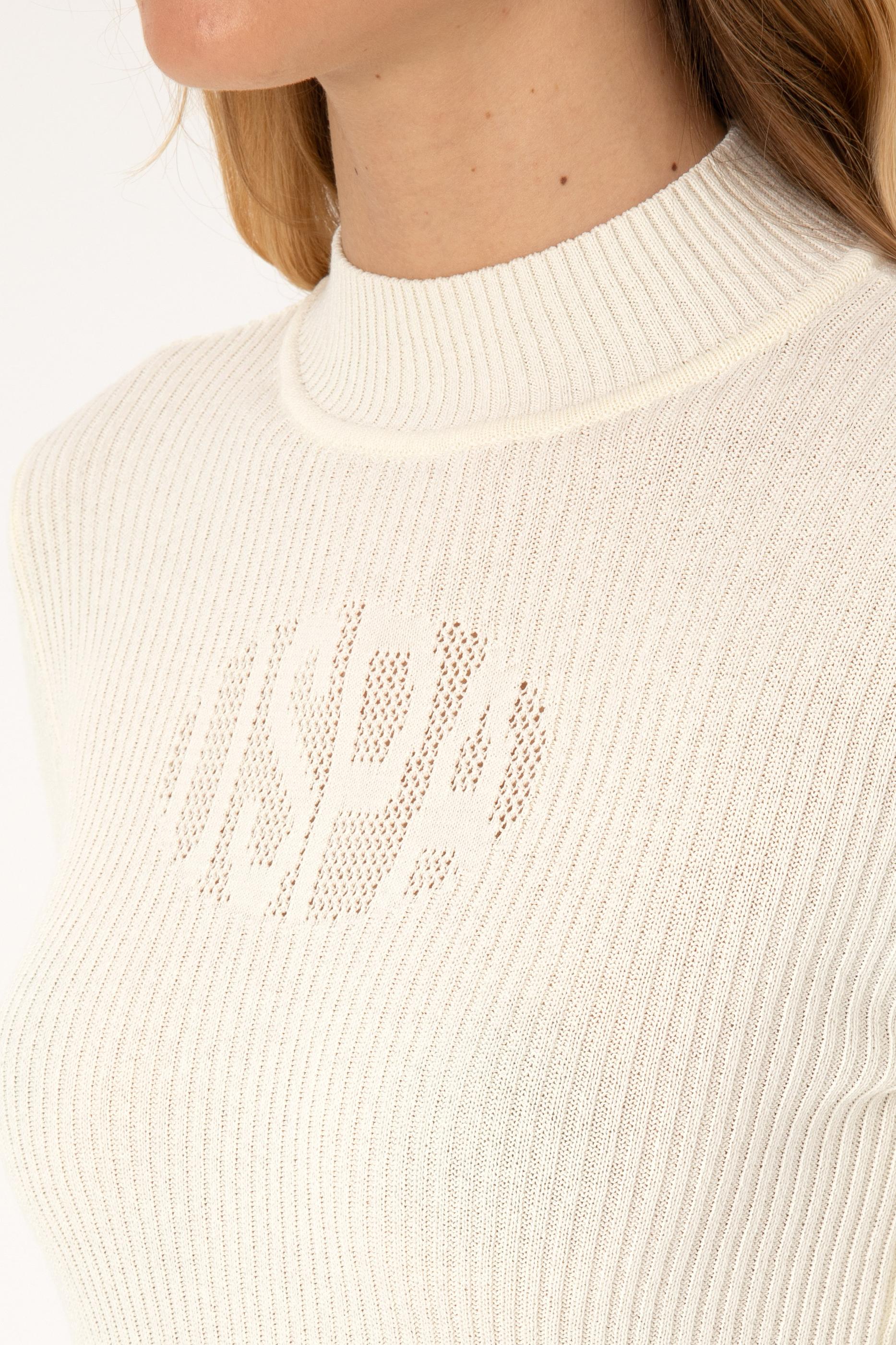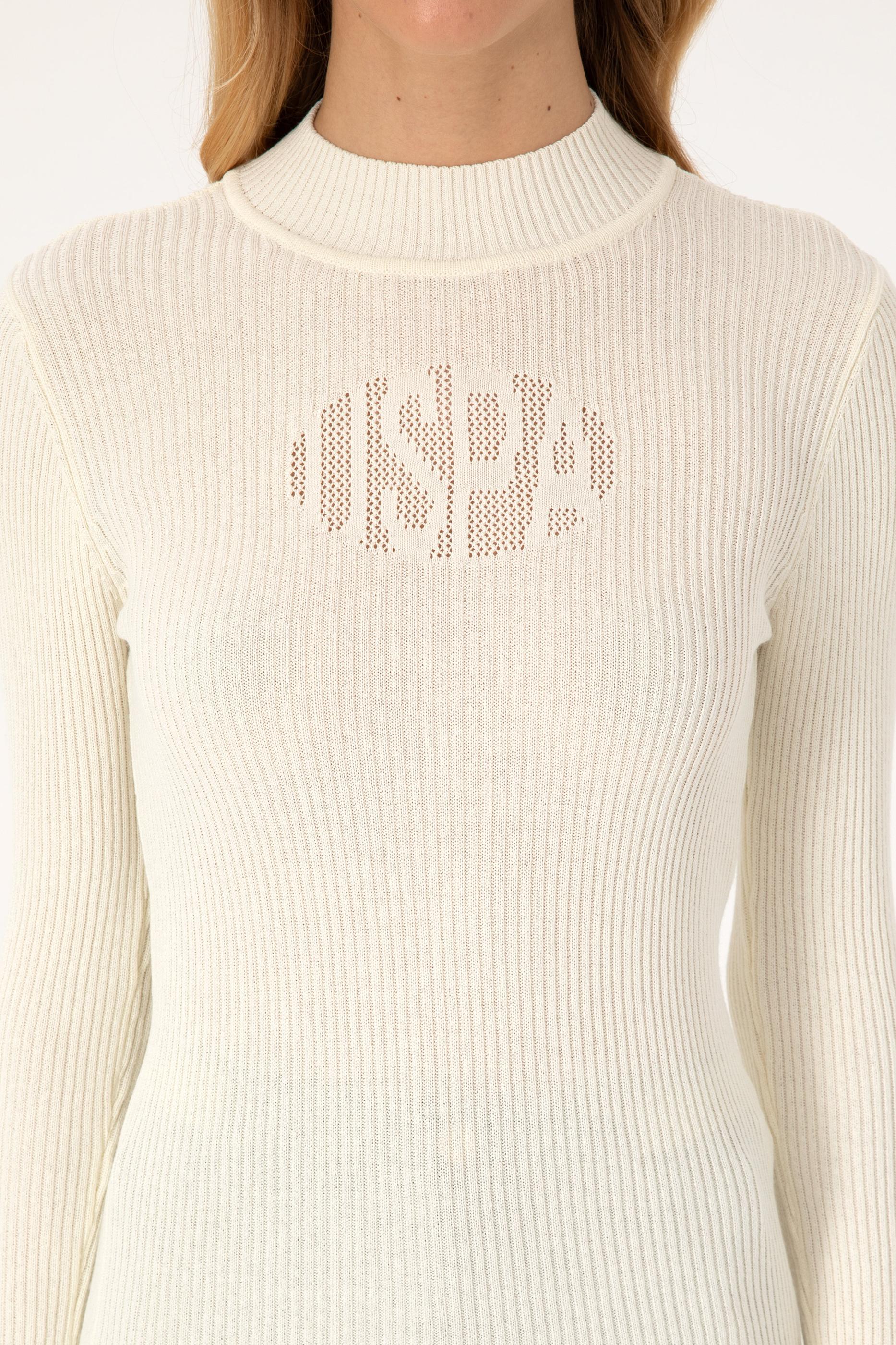 Kadın Krem Yarım Balıkçı Yaka Kazak
