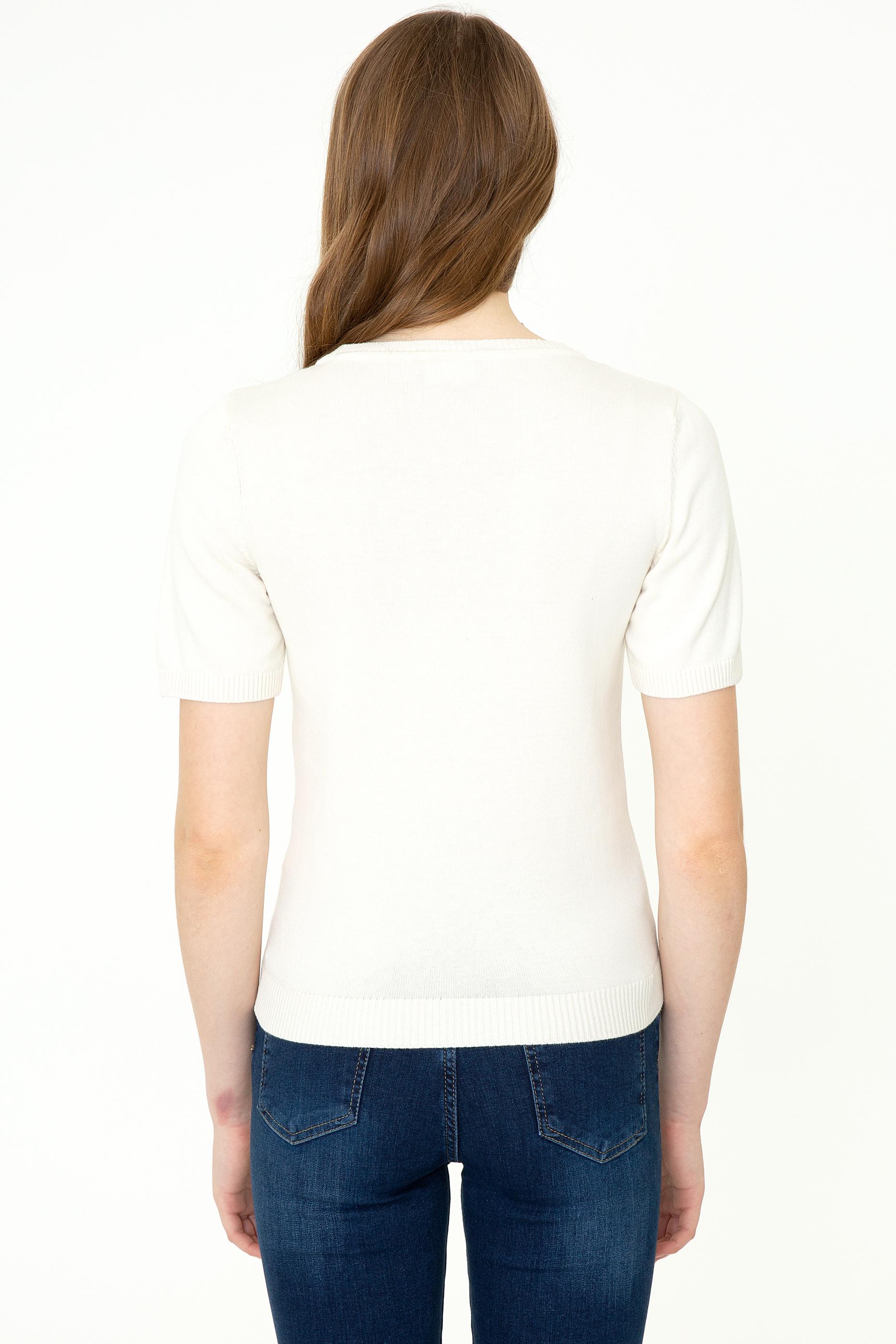 %100 pamuk karışımıyla vücudunuza nefes aldıran, hayranlık uyandıran sadeliğe sahip kısa kollu kadın triko kazağımızı sizin için tasarladık.