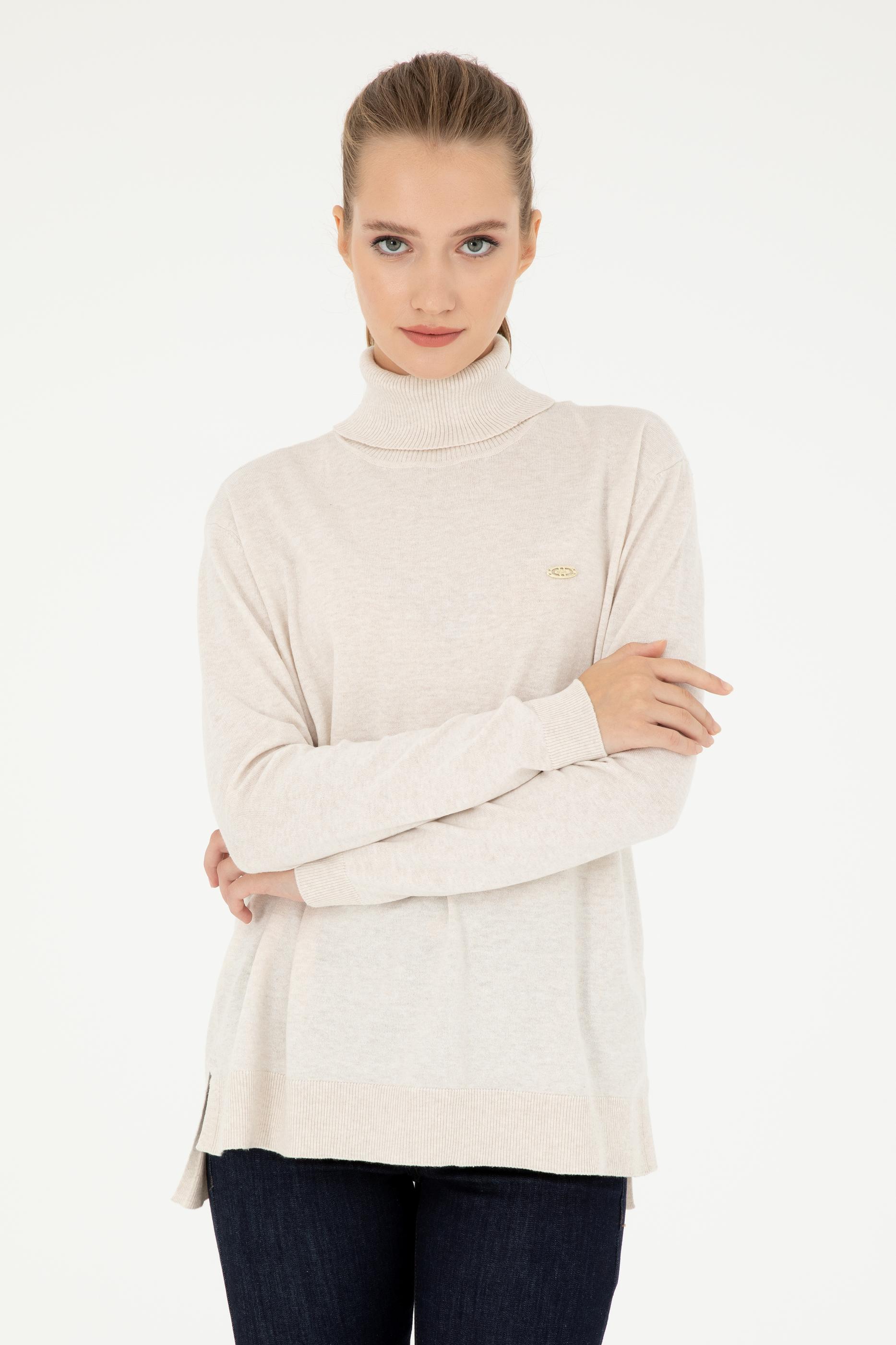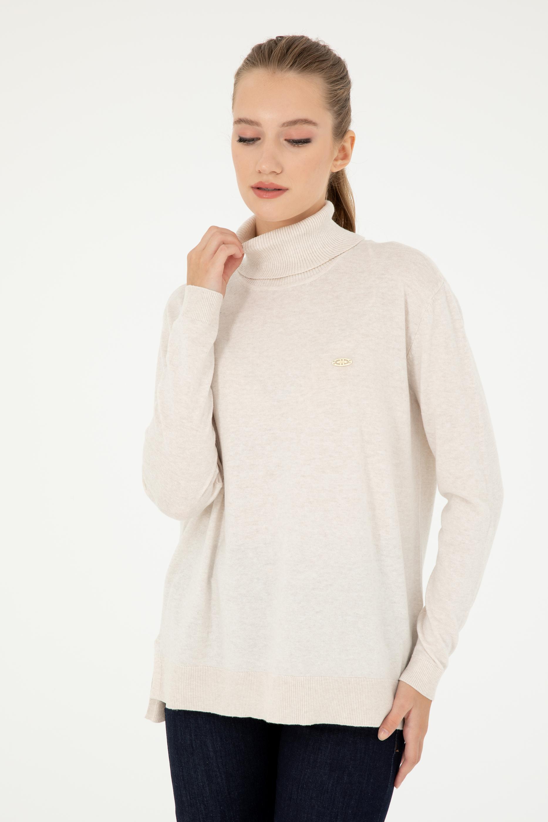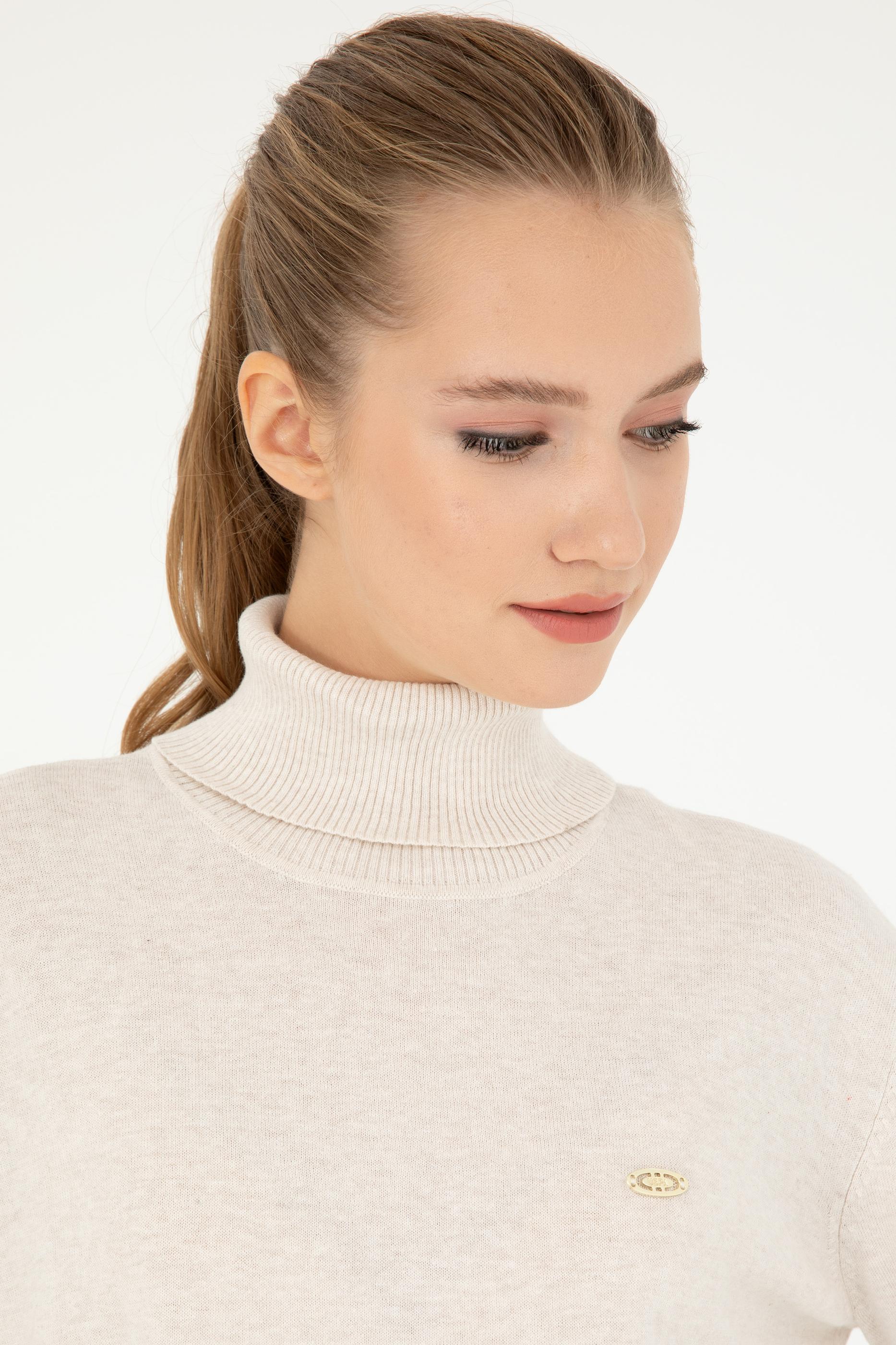 Kadın Krem Melanj Basic Boğazlı Kazak