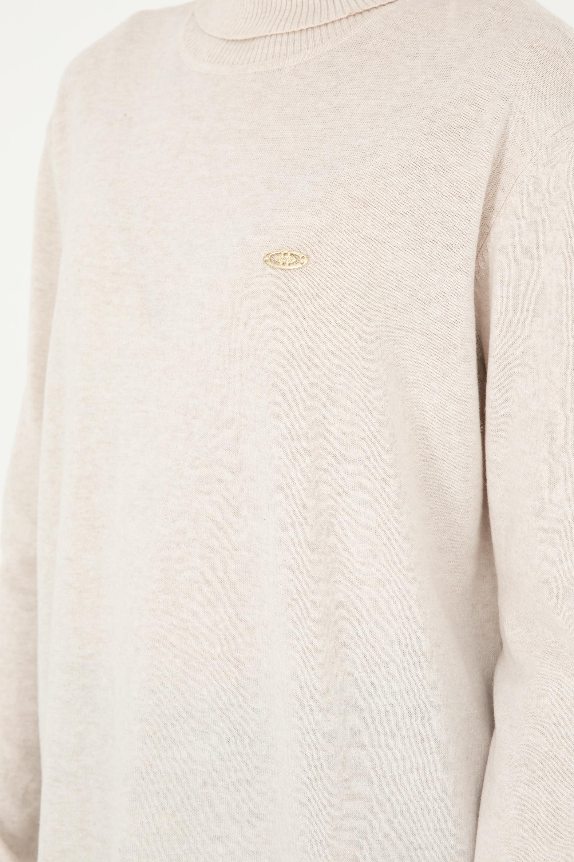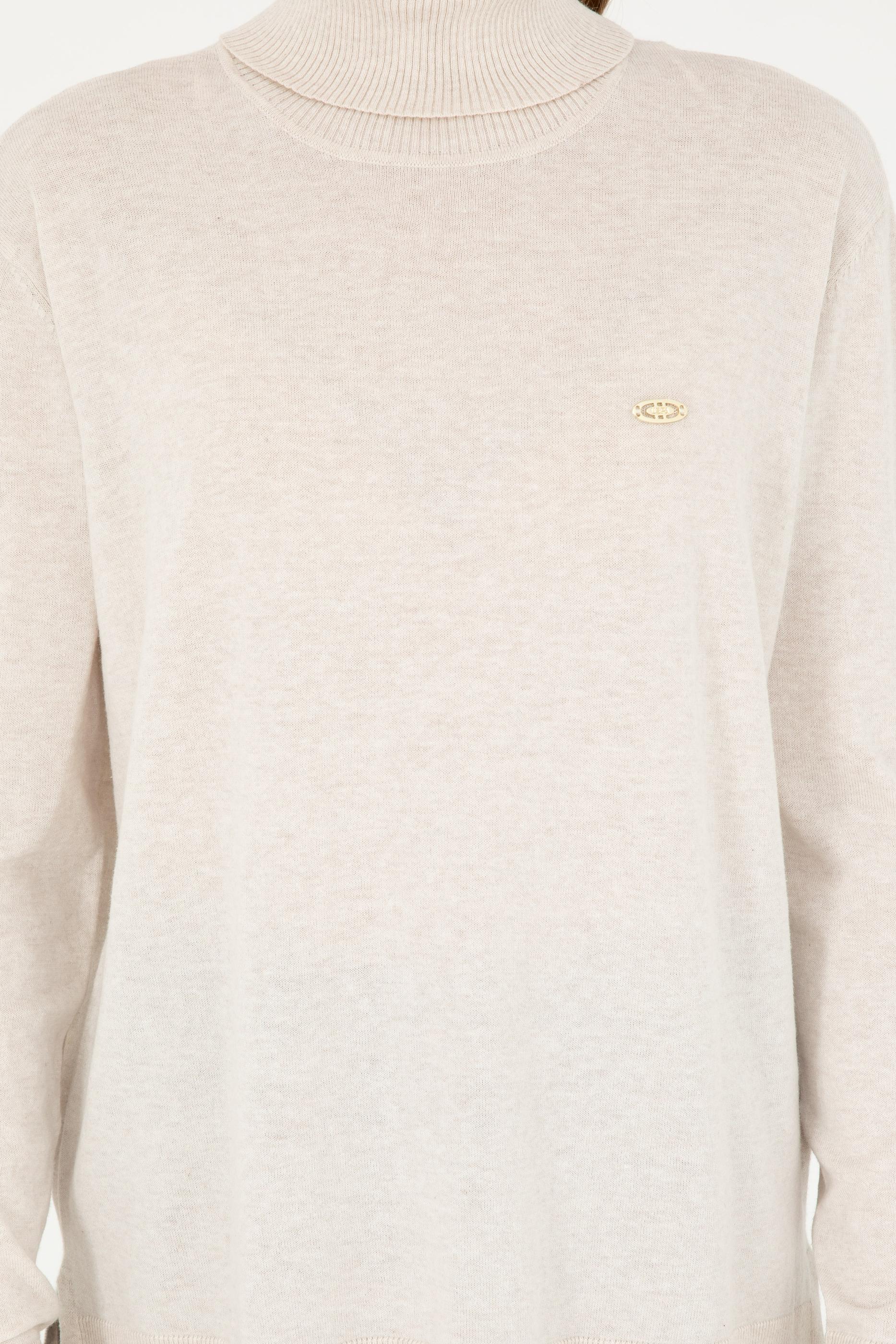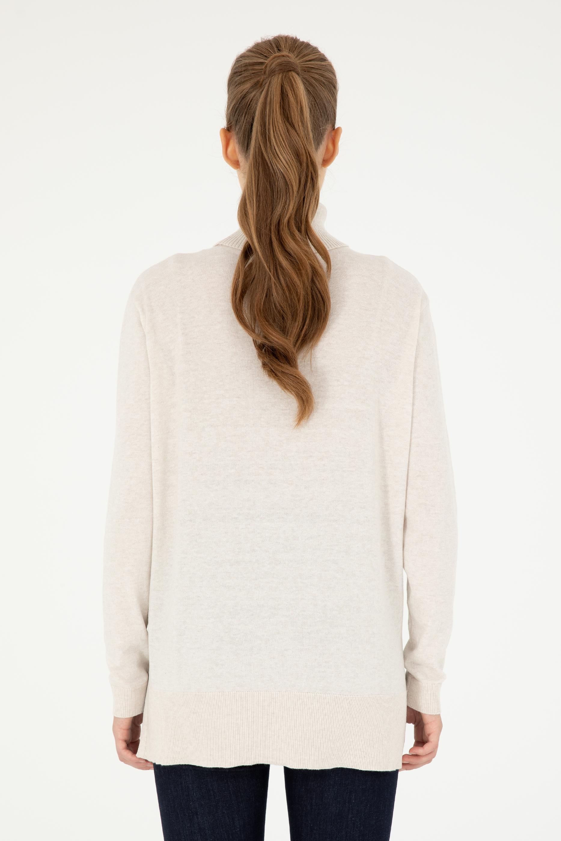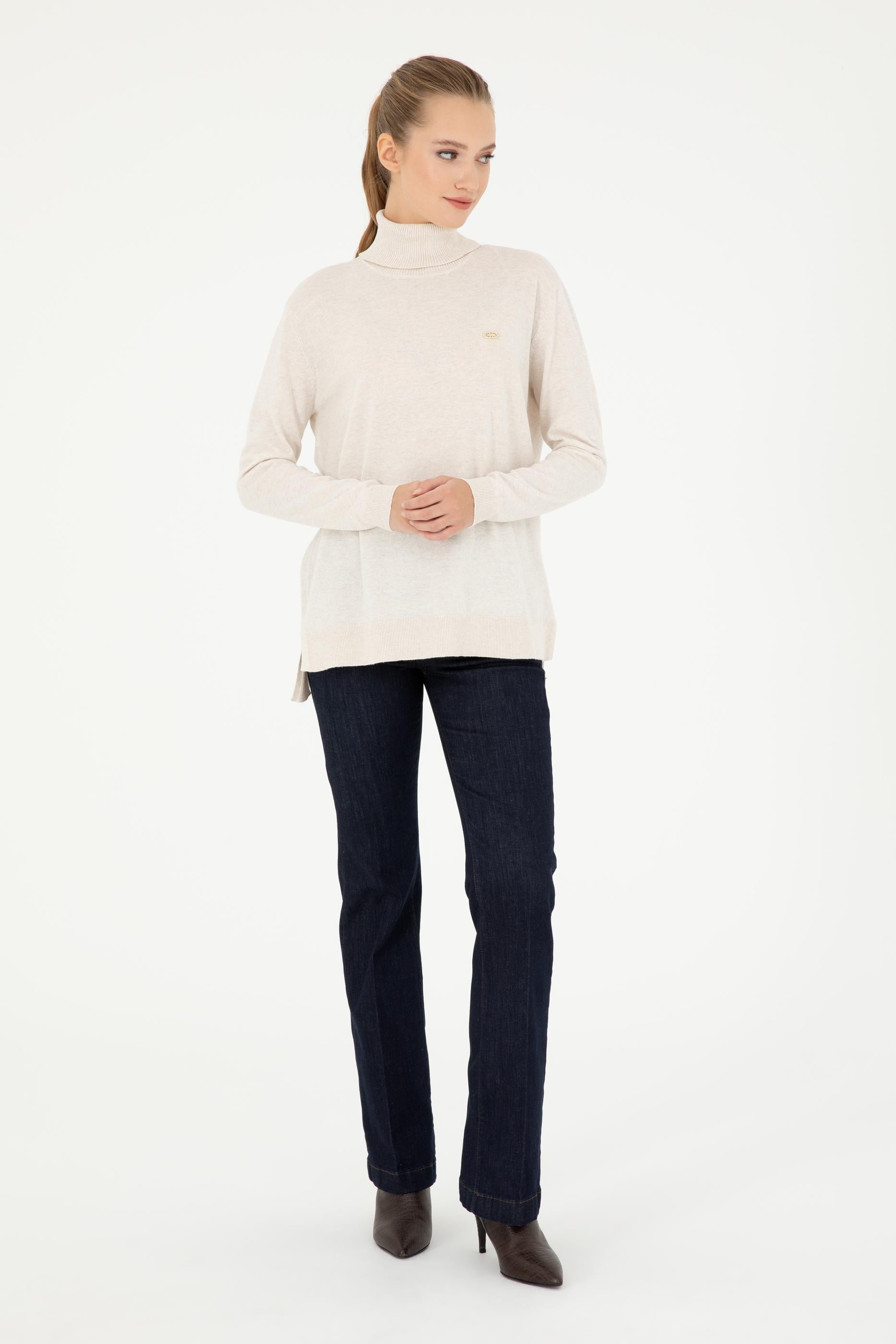 Kadın Krem Melanj Basic Boğazlı Kazak