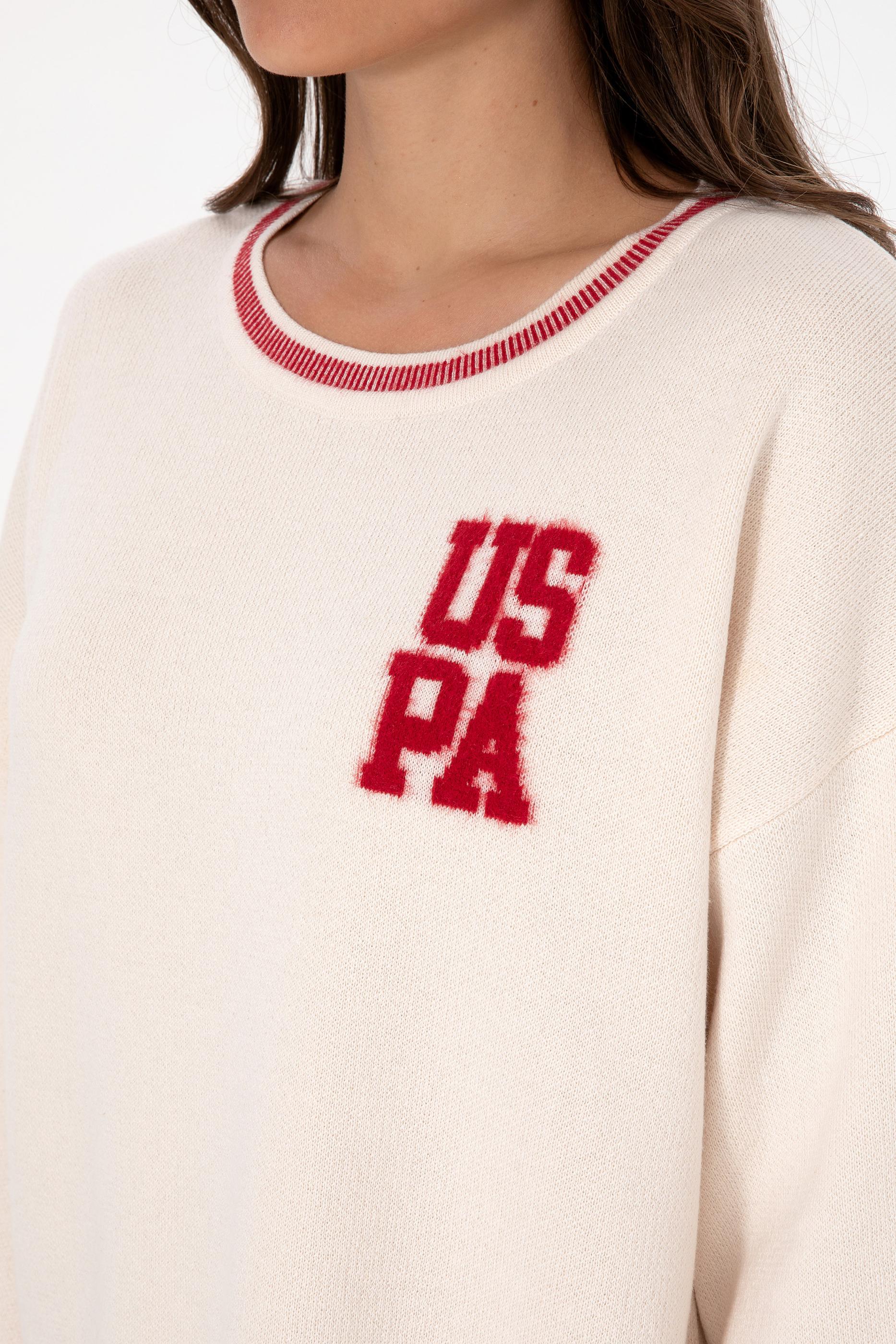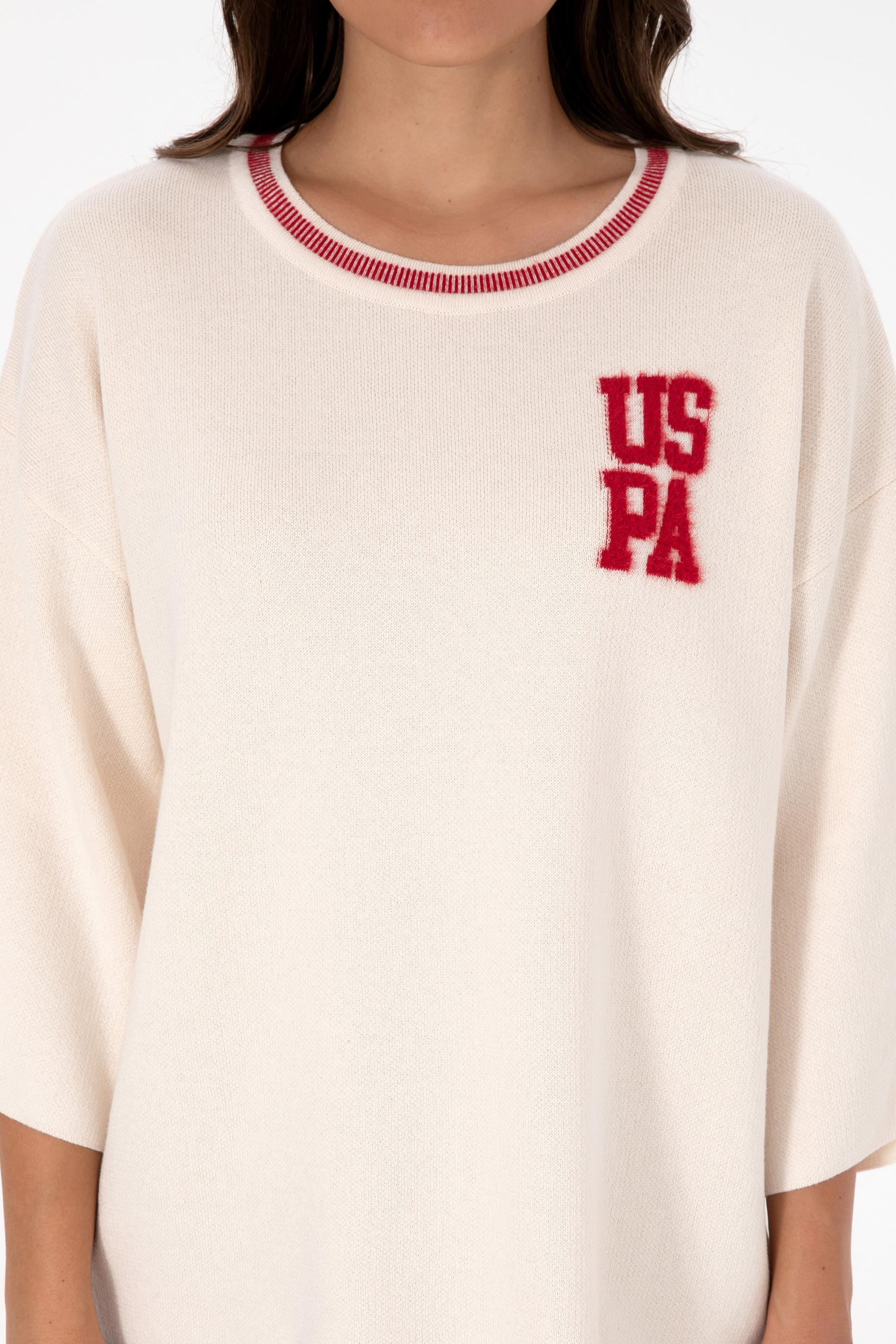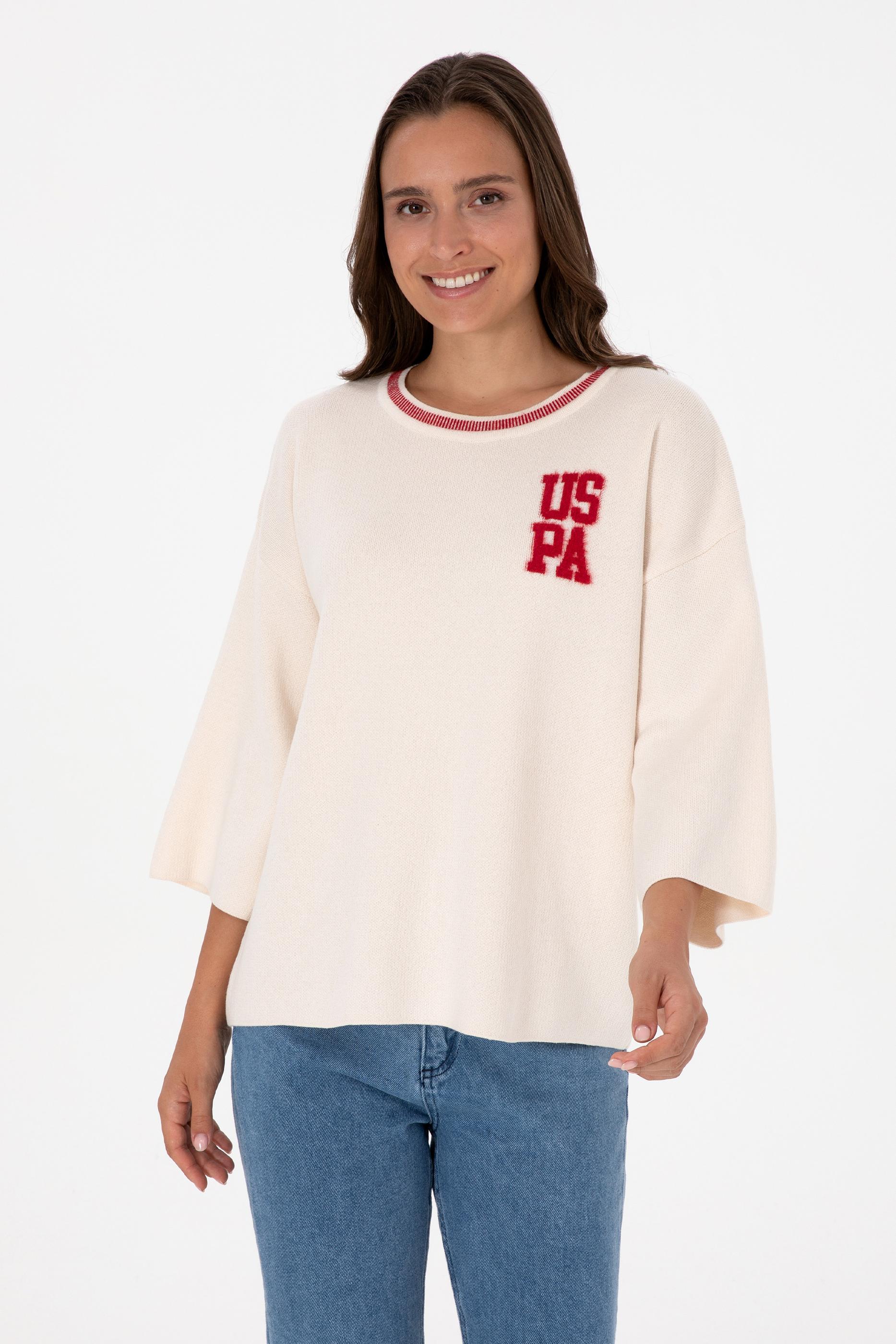 Kadın Krem Melanj Bisiklet Yaka Kazak