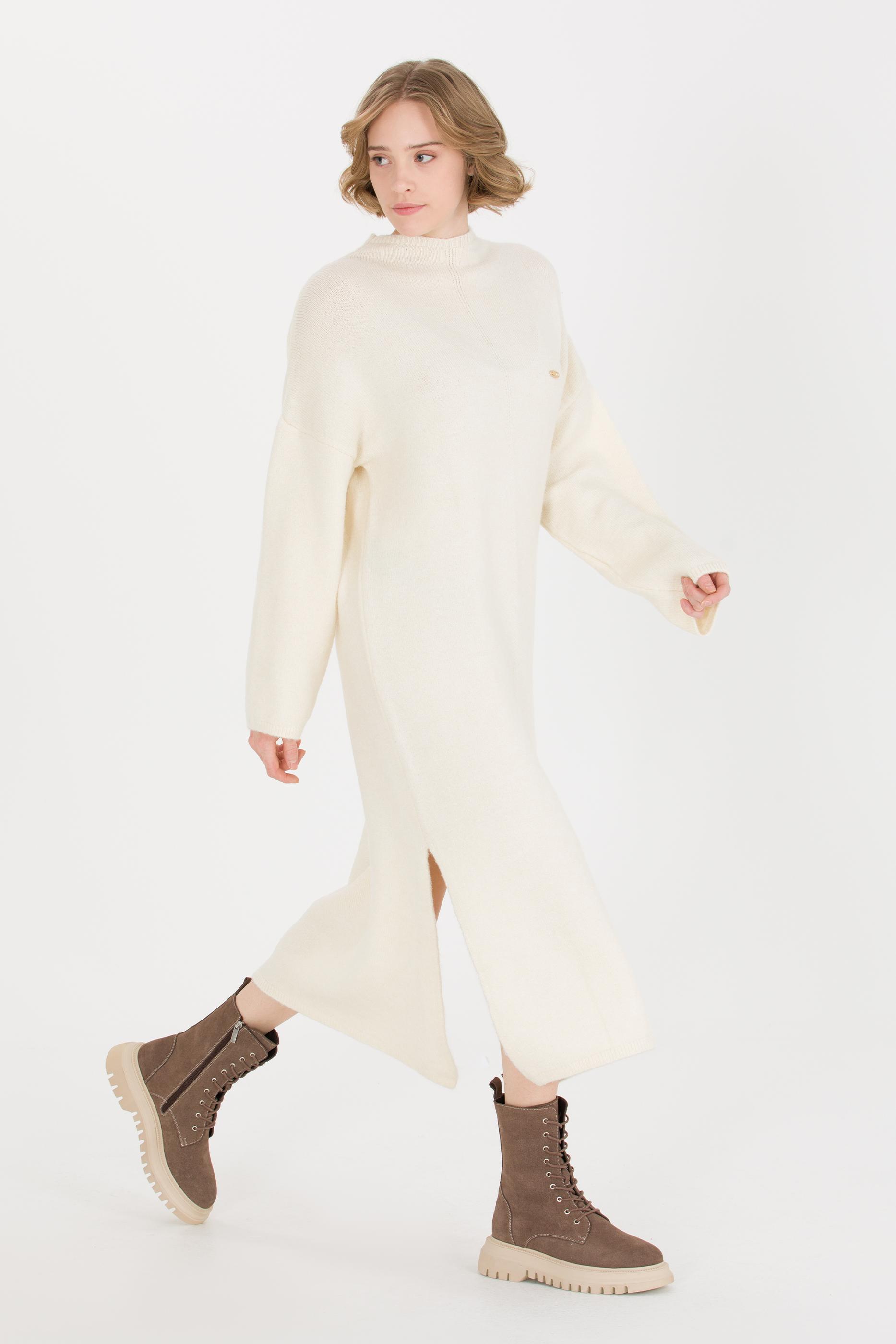 Kadın Krem Melanj Triko Elbise