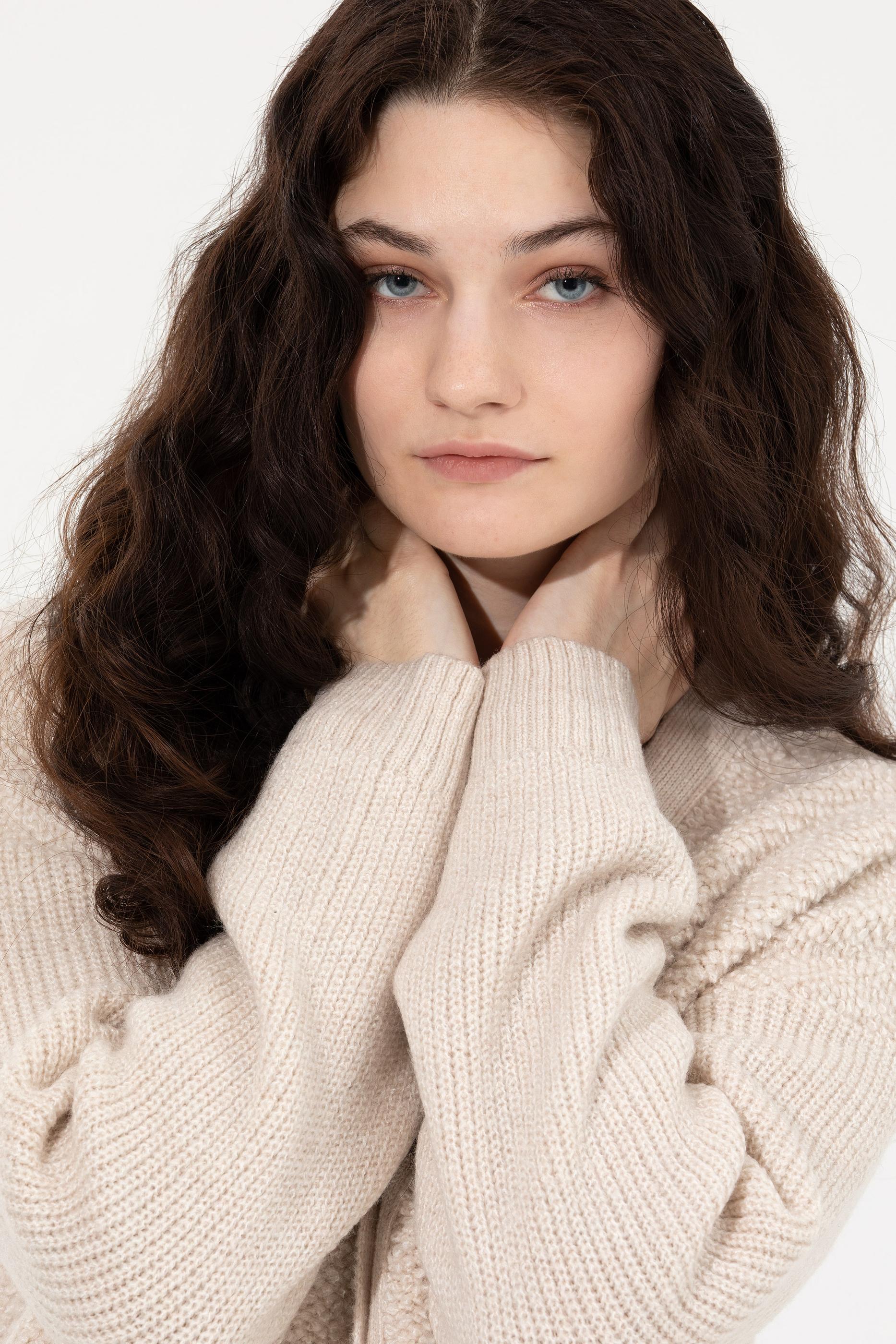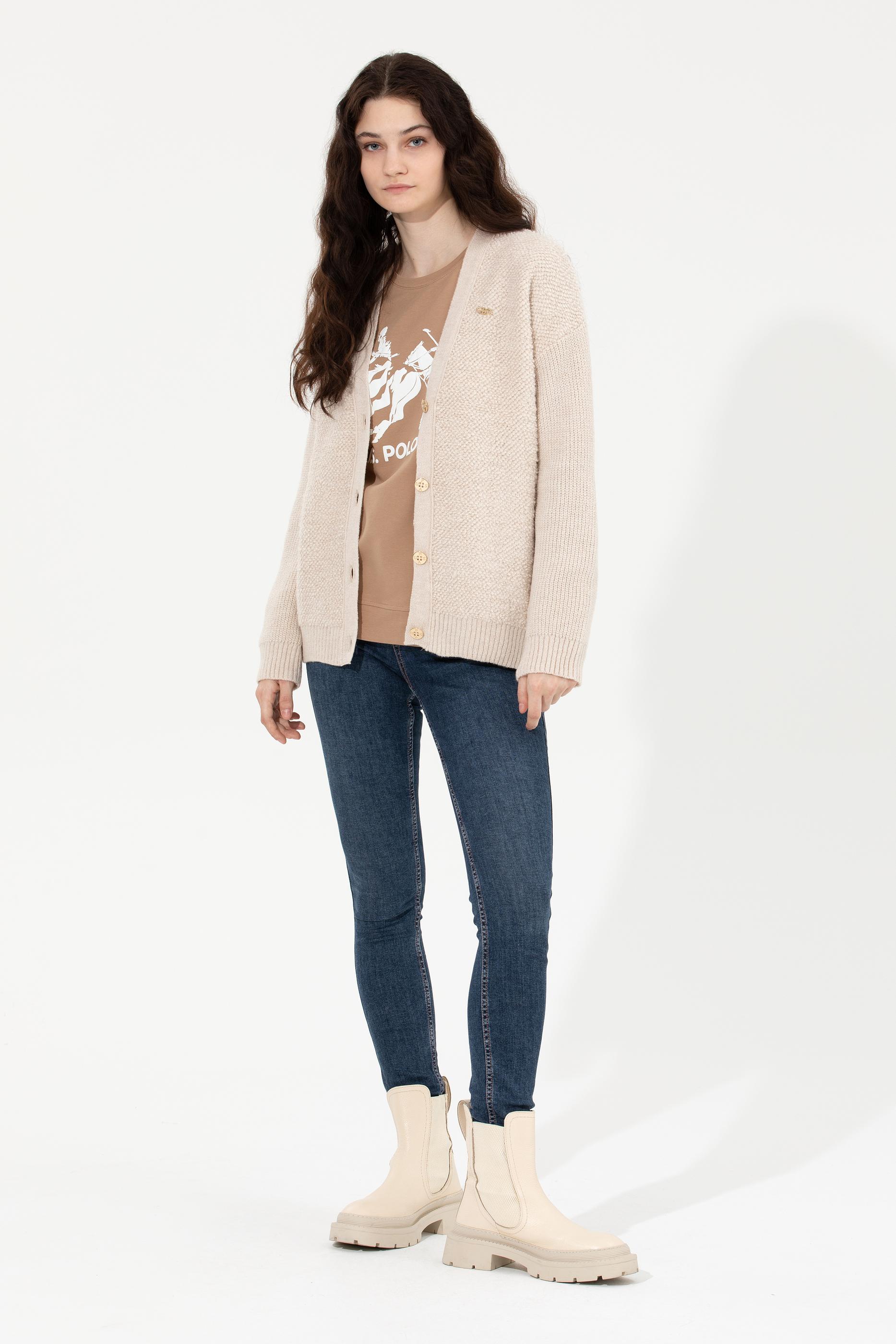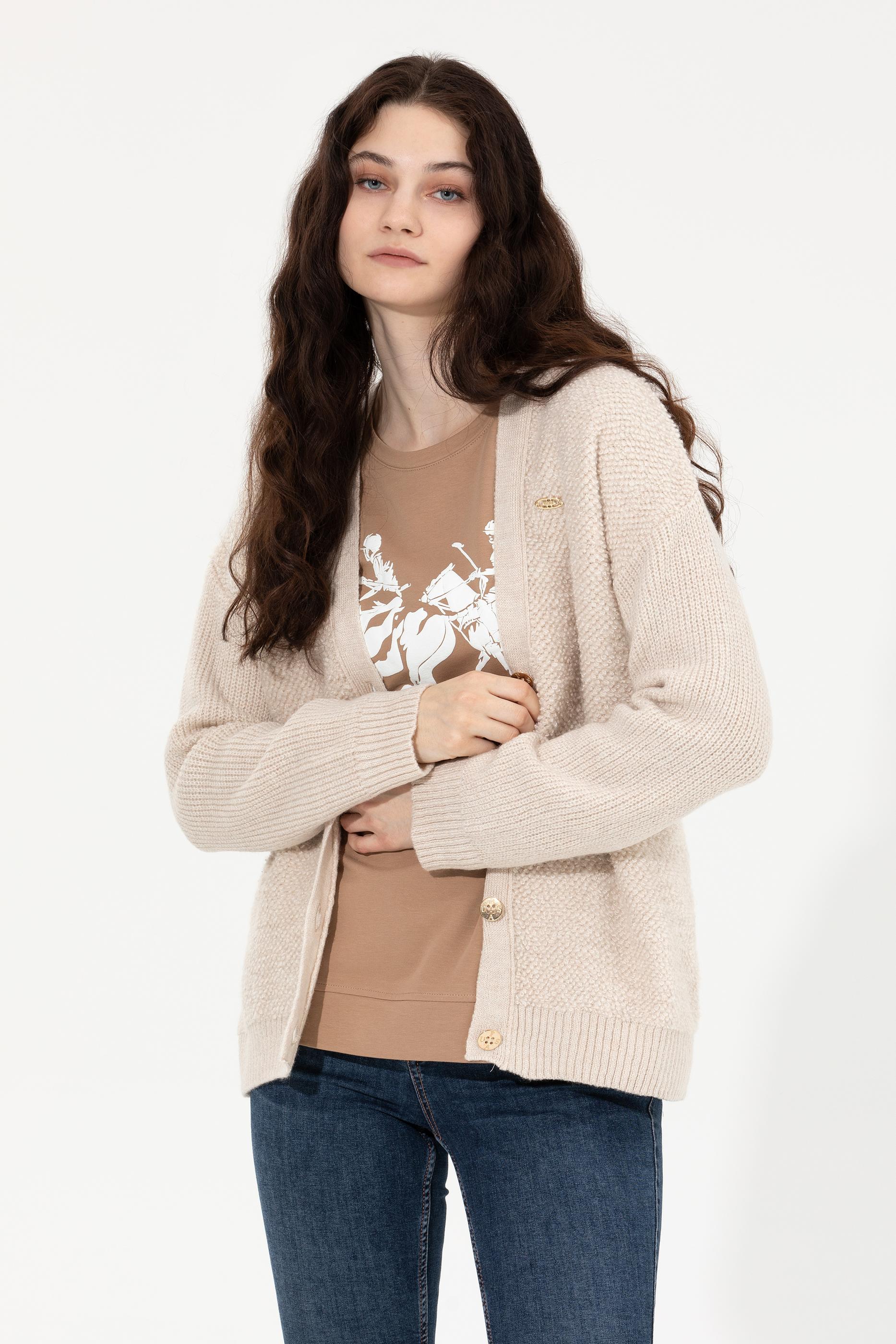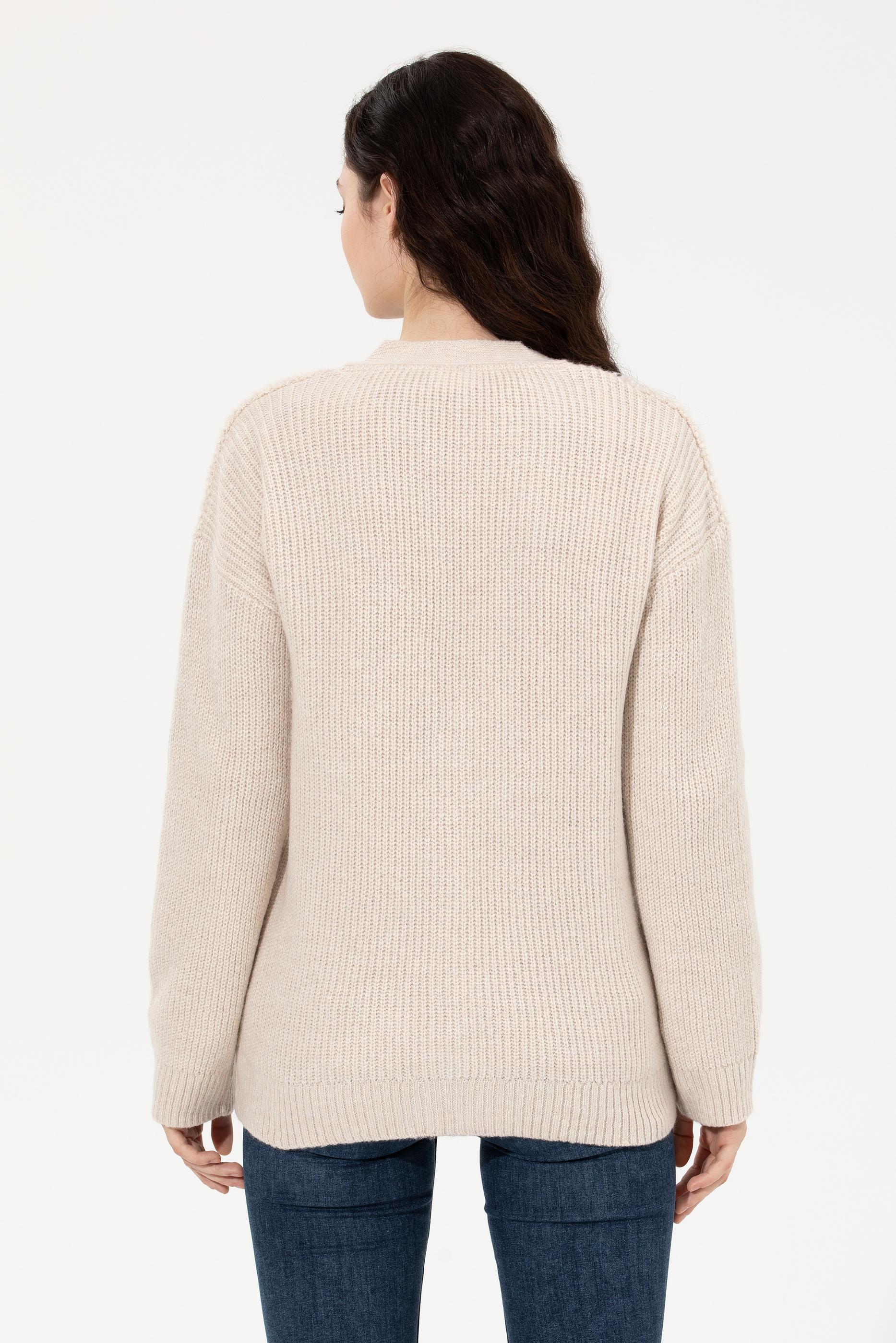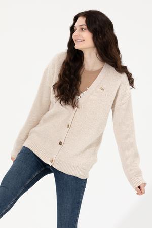 Kadın Krem Melanj Triko Hırka - 50261324021