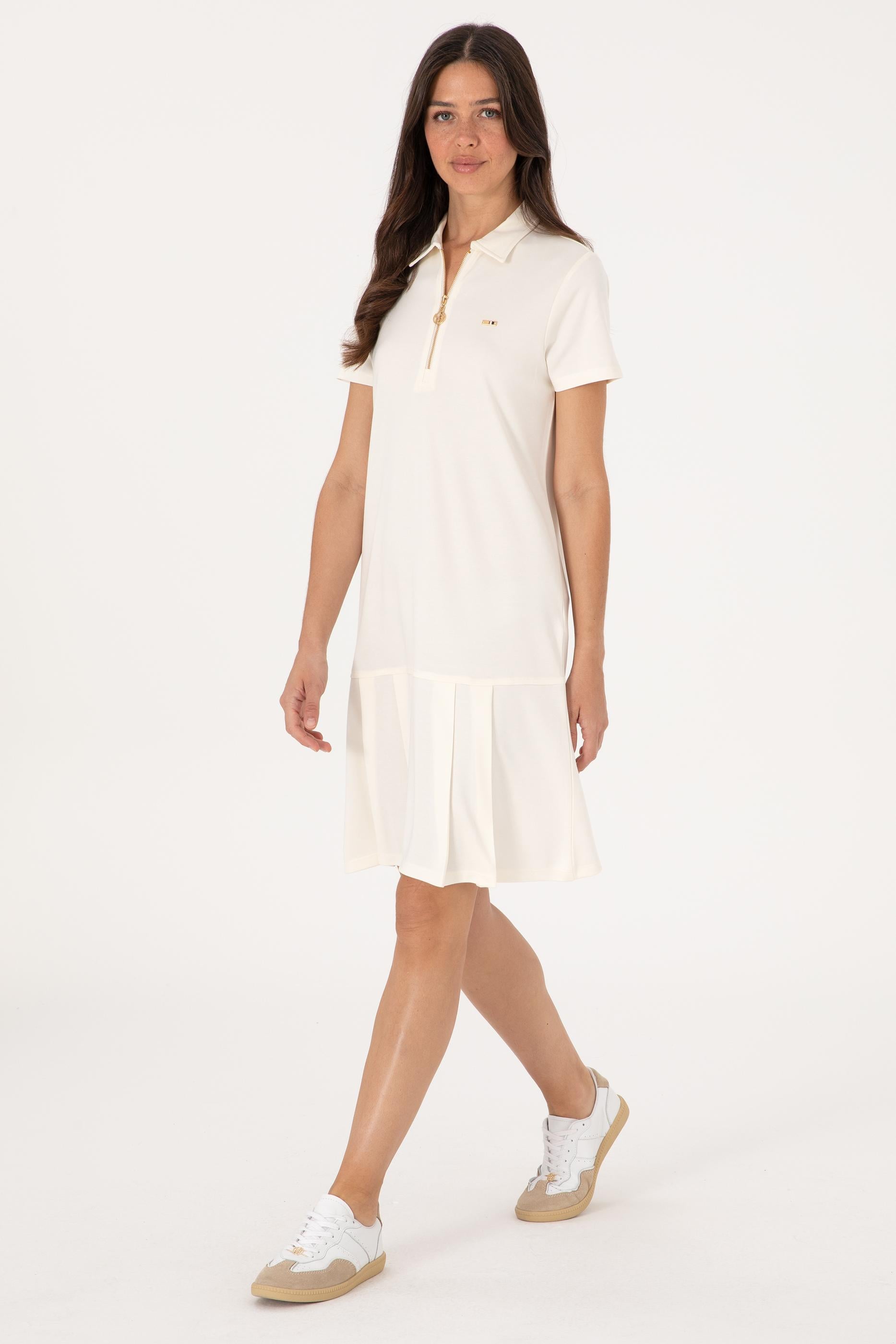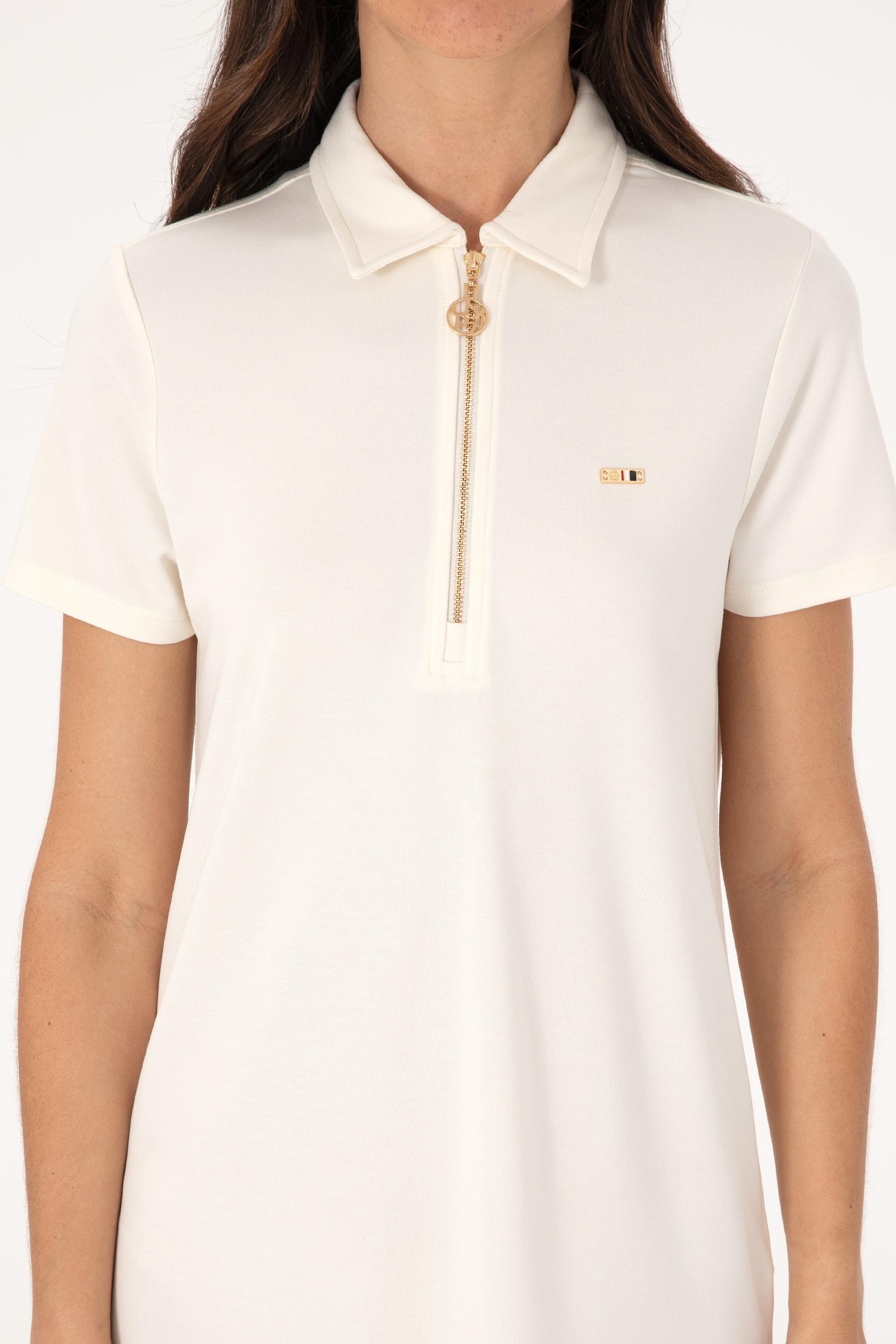 Kadın Krem Modal Karışımlı Polo Yaka Mini Boy Örme Elbise