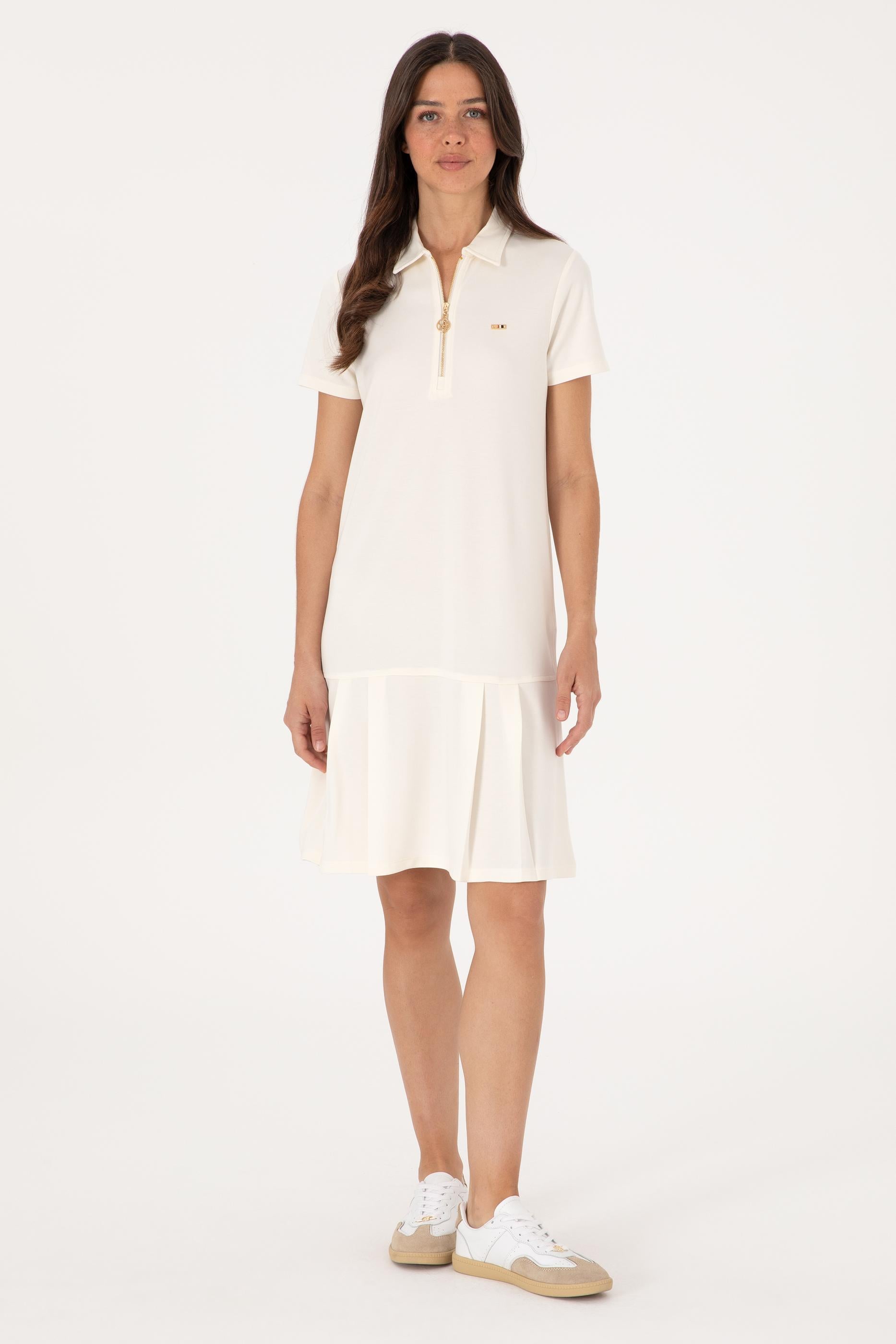 Klasik çizgileri modern rahatlıkla harmanlayan U.S. Polo Assn. tasarımı bu krem elbise, polo yaka formu ve modal karışımlı yumuşak dokusuyla konforlu bir şıklık sunar. Mini boy kesimi ve etek ucundaki volan detayı modele zarif bir hareket katarken, kısa kollu yapısıyla yaz günlerinde serin ve hafif bir kullanım sağlar. Fermuarlı yaka bölgesi sportif detaylarla tamamlanırken, sneaker veya espadril gibi parçalarla kombinlendiğinde günlük stilin en güçlü tamamlayıcısı haline gelir. Krem rengin sade ve doğal tonu ise bu tasarımı her ortama uyumlu zarif bir alternatif hâline getirir.