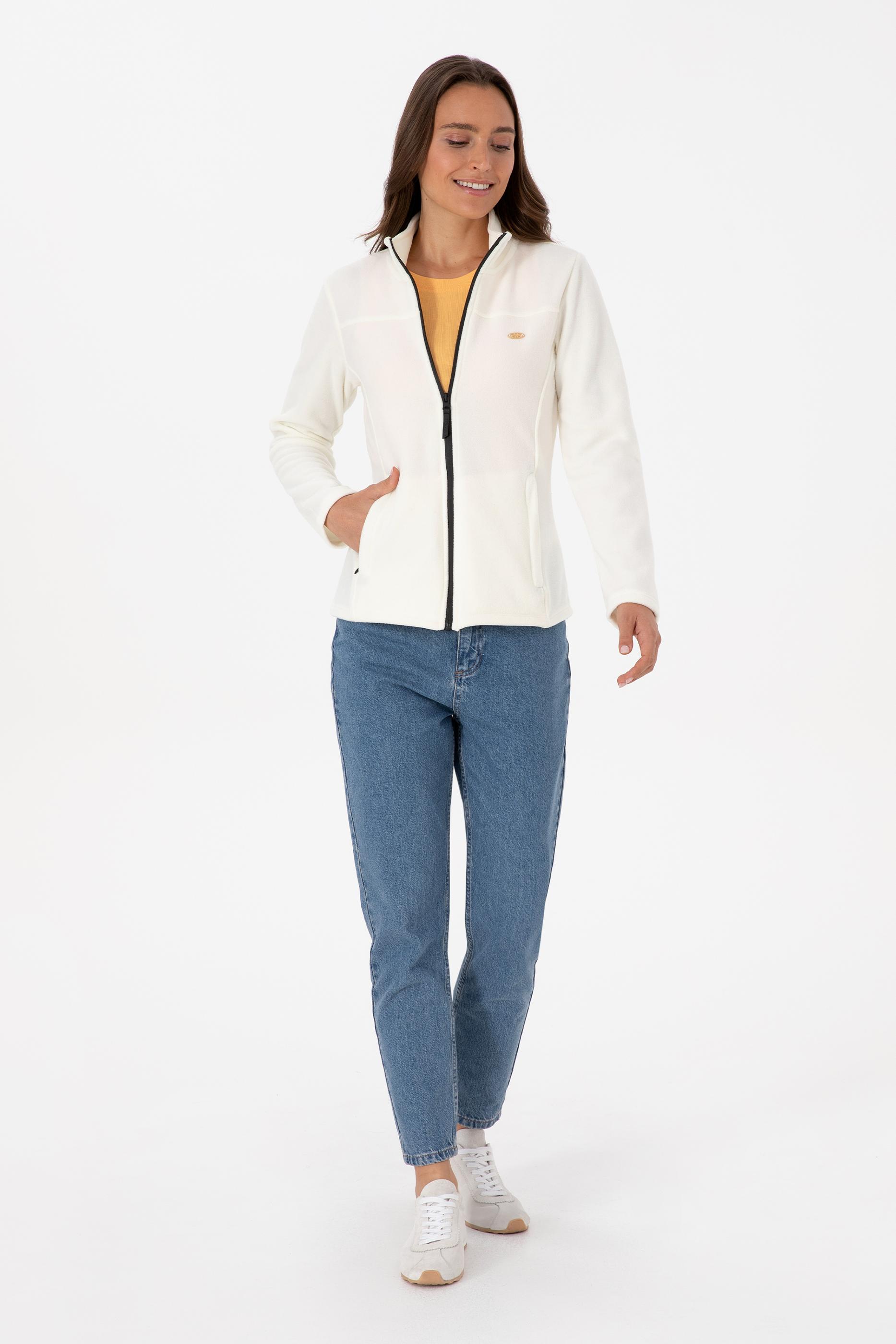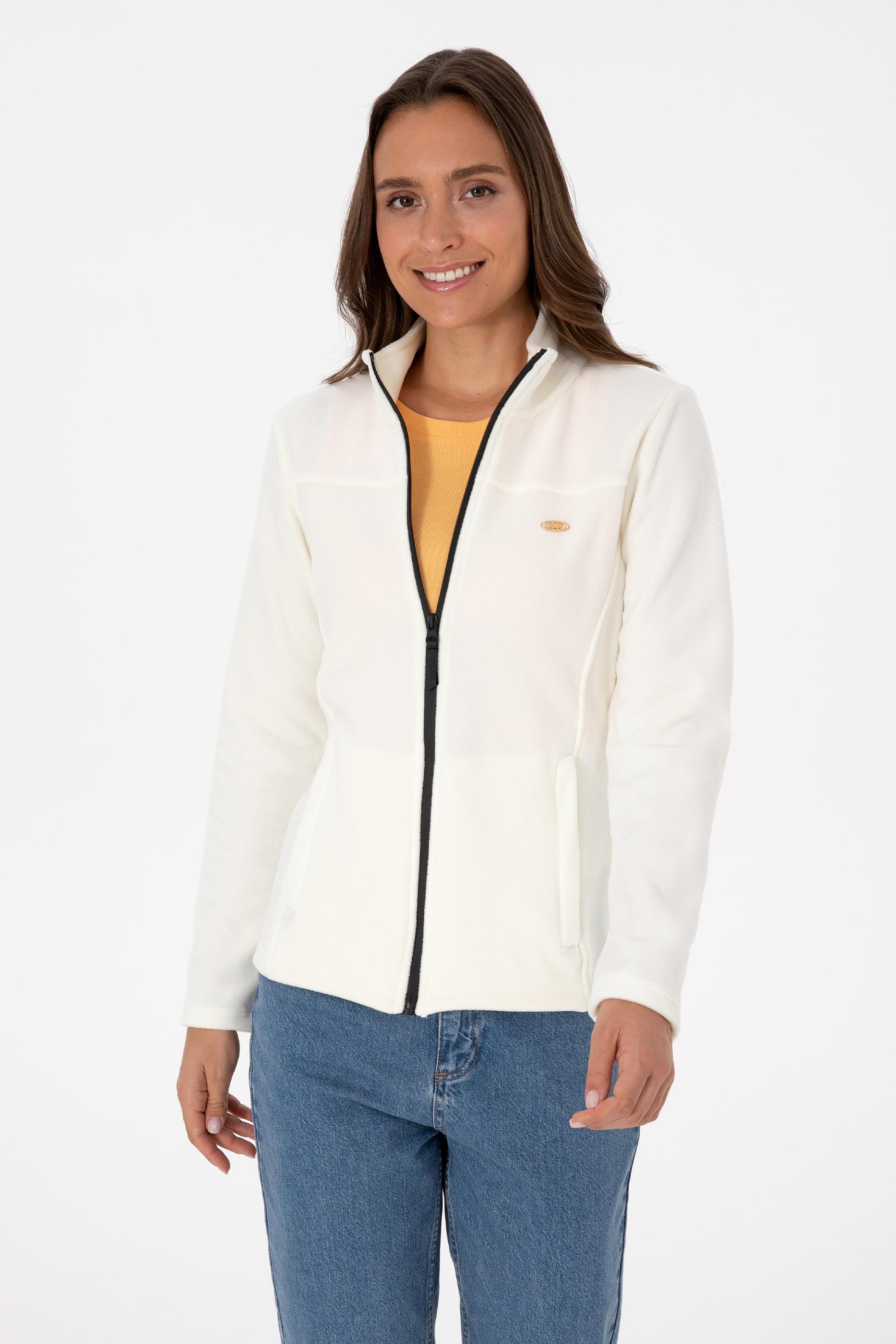 Kadın Krem Fermuarlı Dik Yaka Polar Sweatshirt
