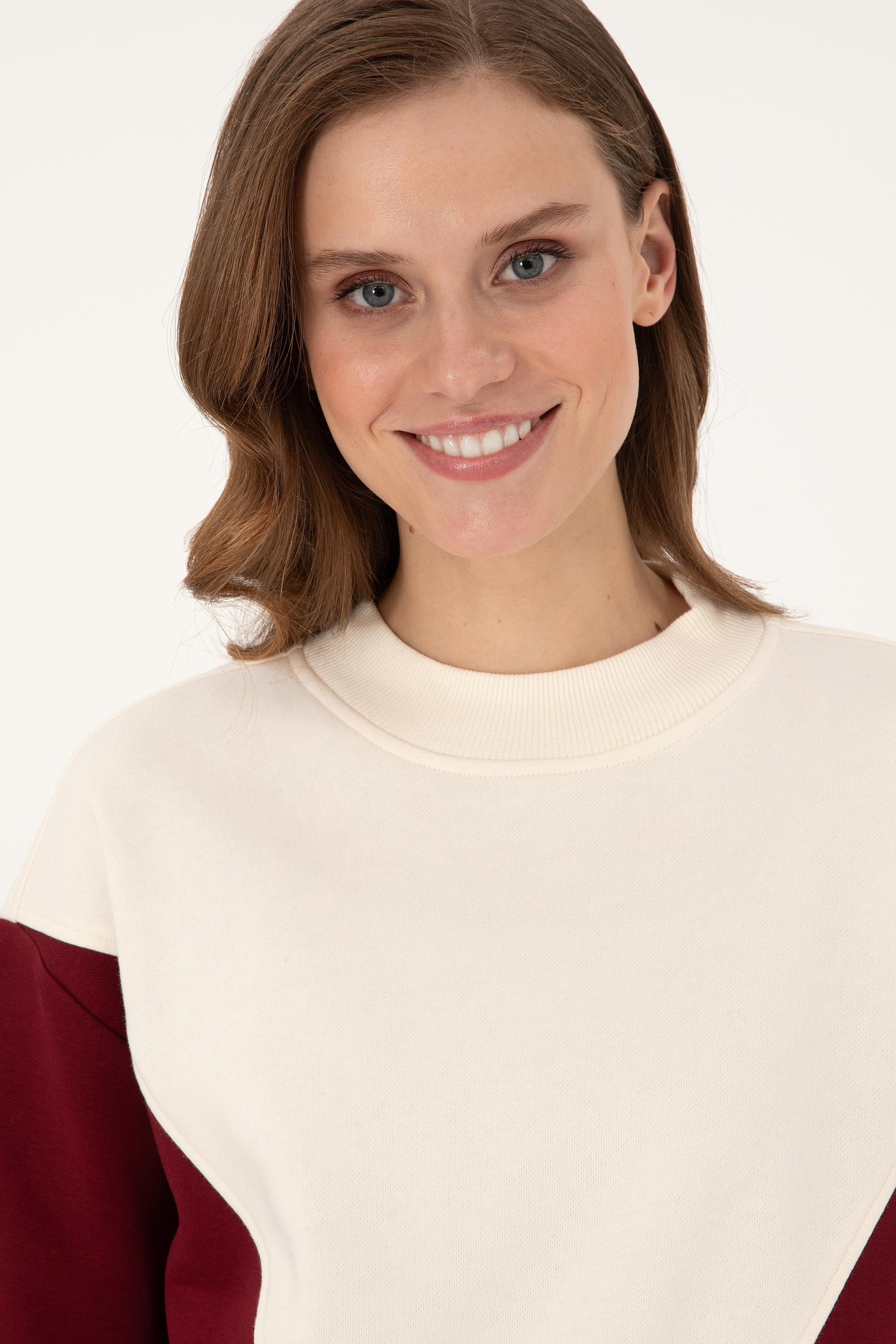 Kadın Krem Bisiklet Yaka Sweatshirt