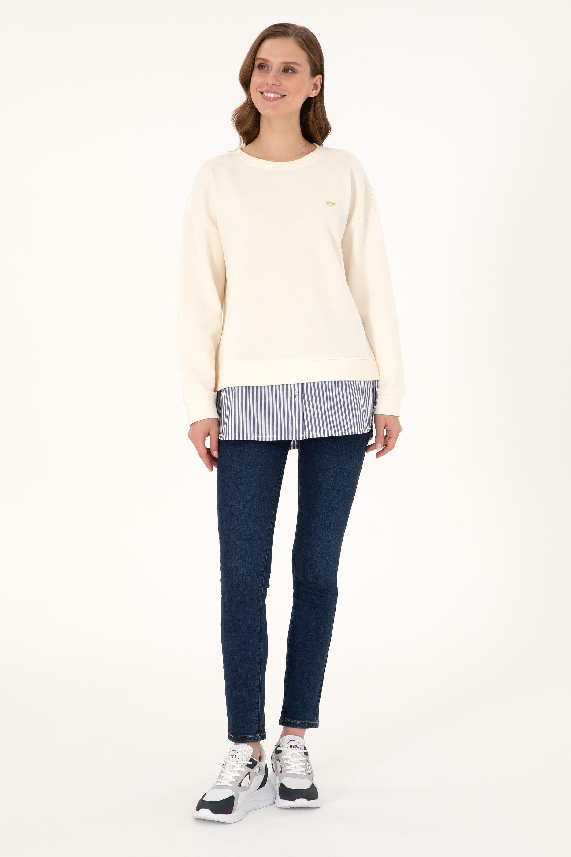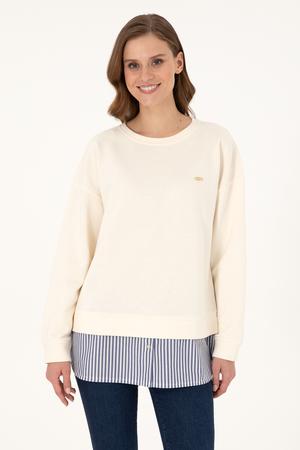 - Kadın Krem Gömlek Detaylı Bisiklet Yaka Sweatshirt