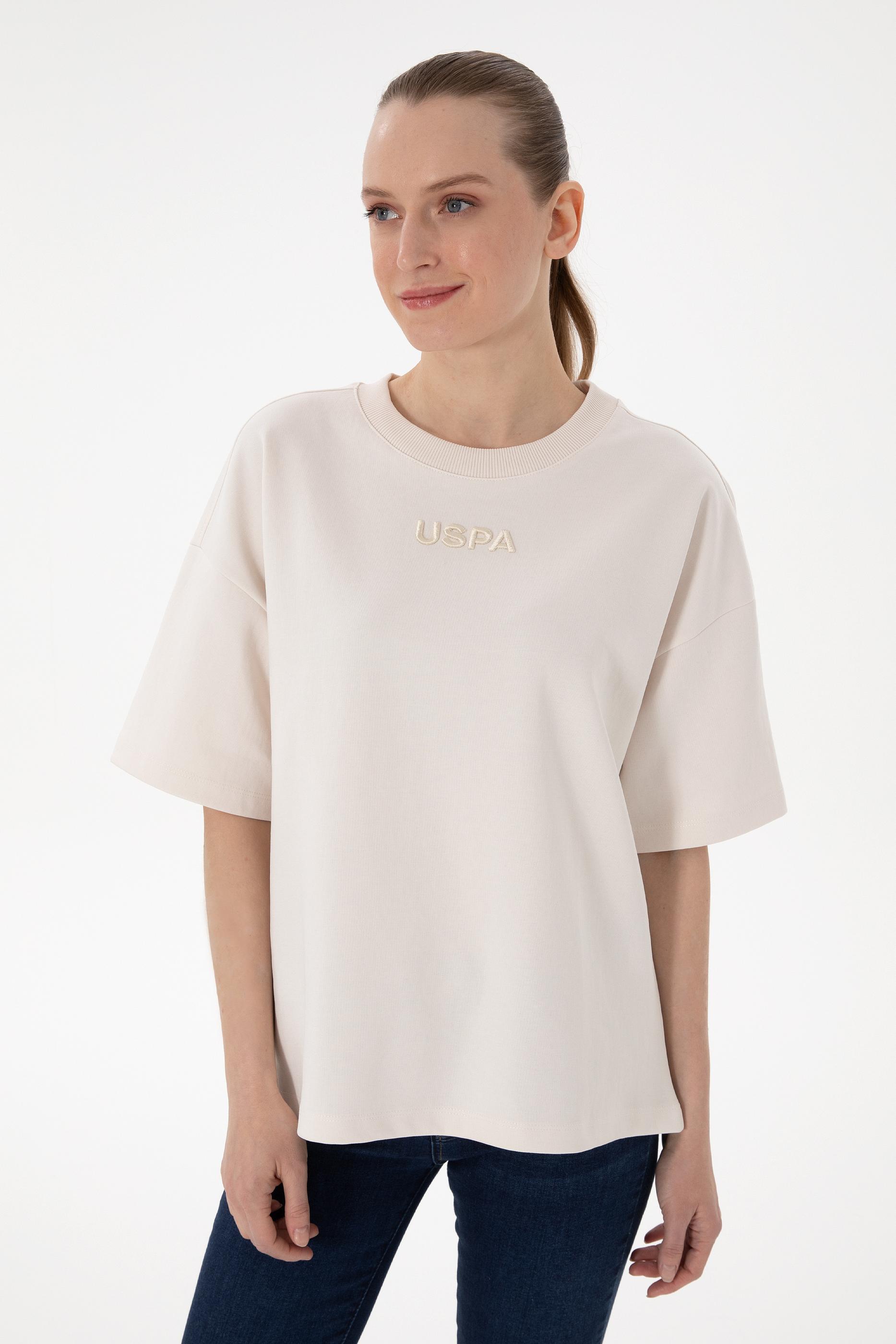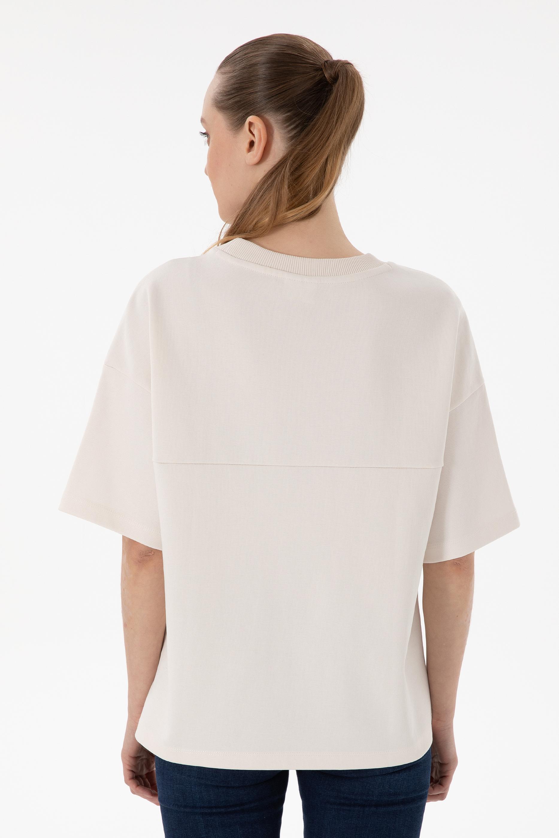 Kadın Krem Oversize Bisiklet Yaka Tişört