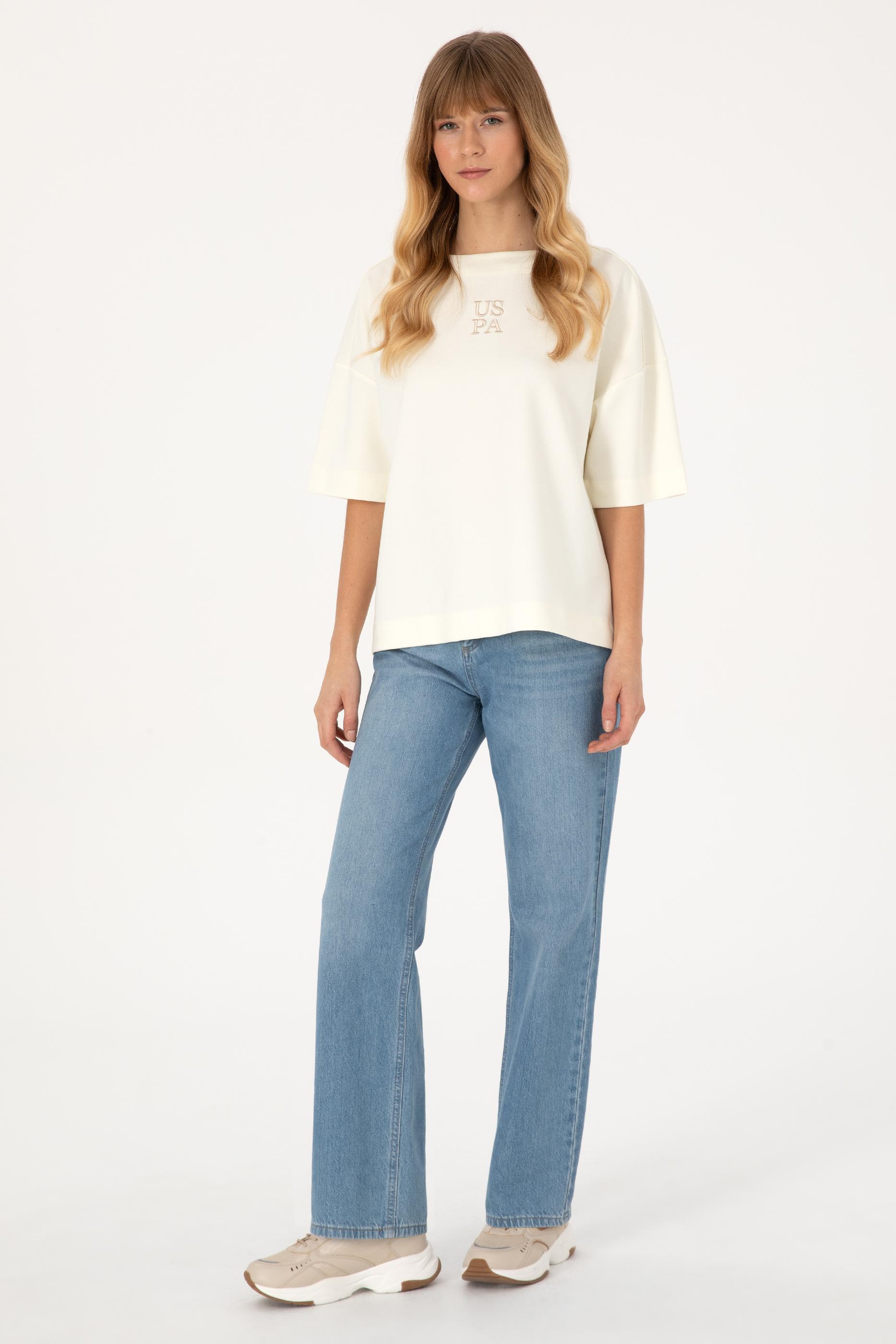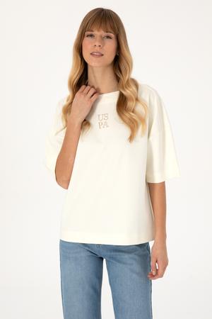 Kadın Krem Kısa Kollu Bisiklet Yaka Sweatshirt