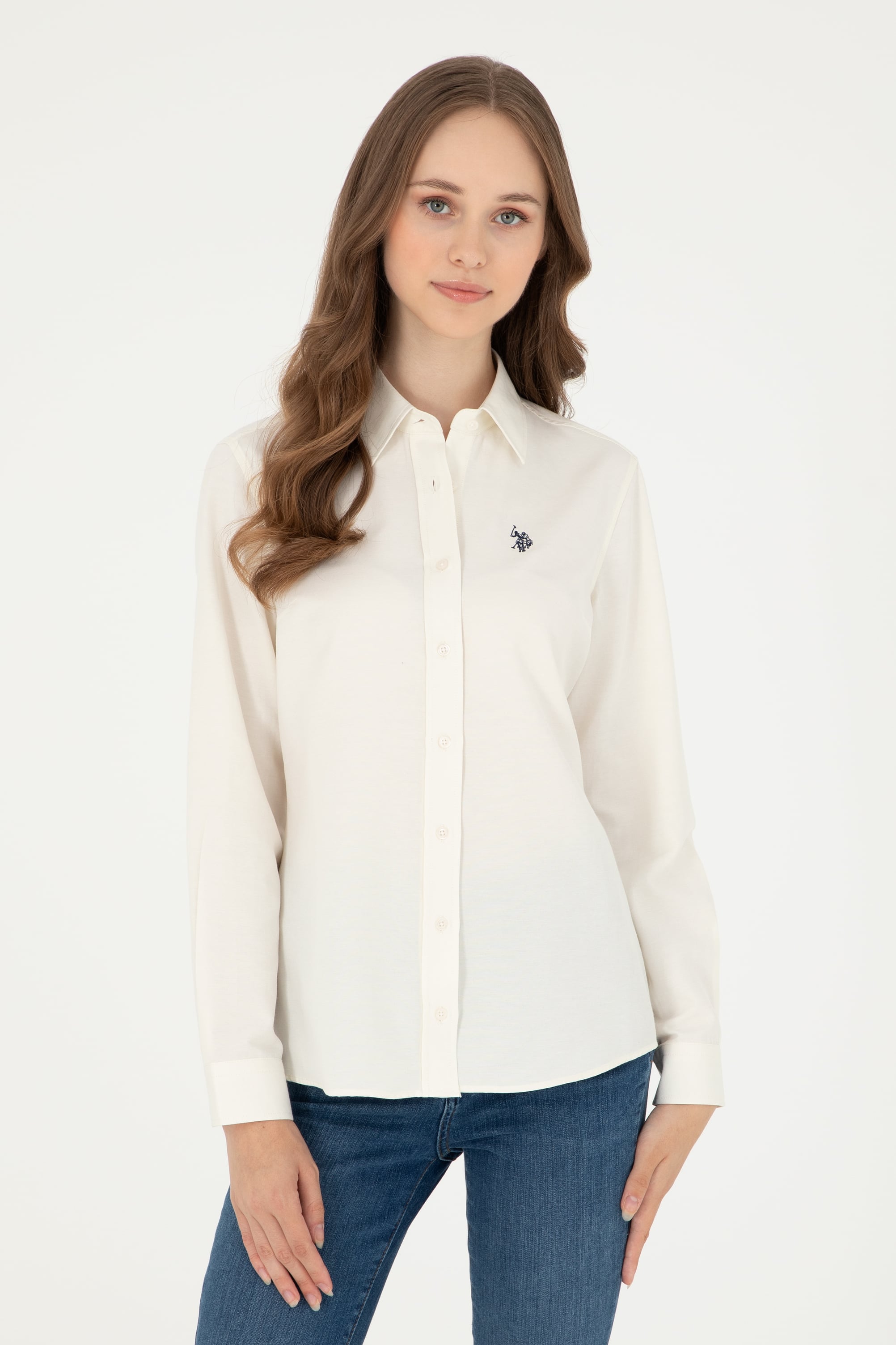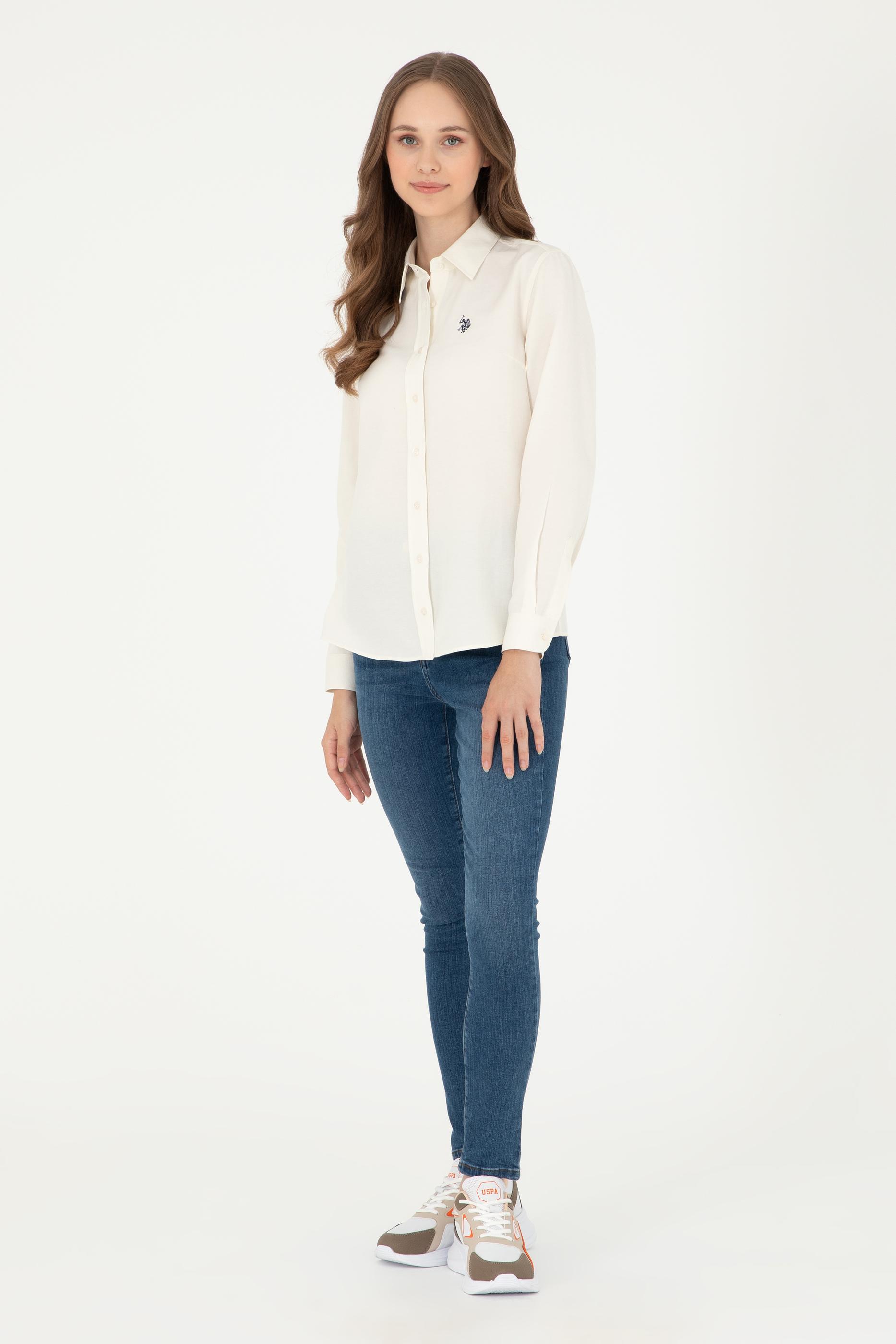 - Kadın Krem Uzun Kollu Basic Gömlek