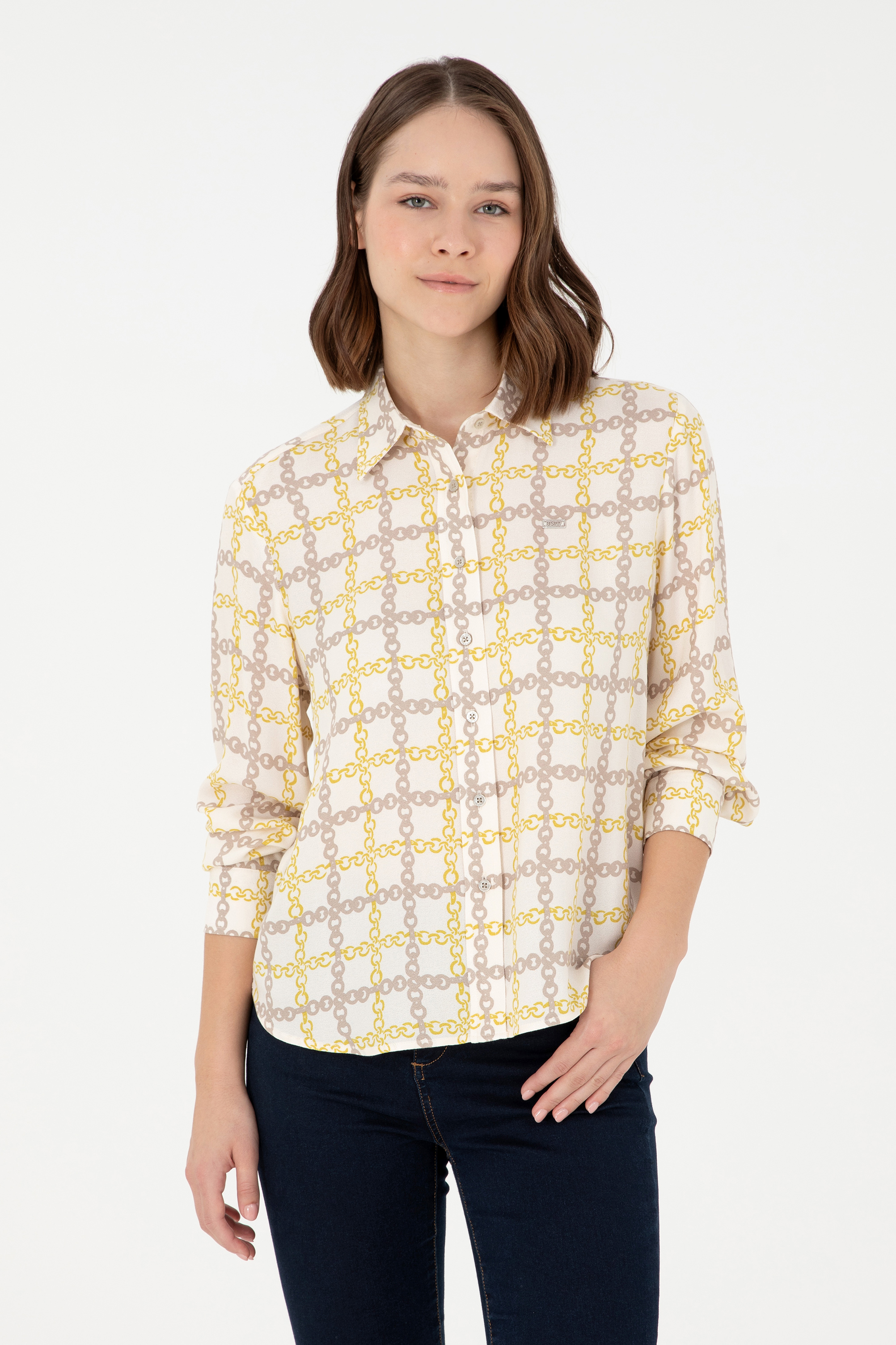 - Kadın Krem Uzun Kollu Gömlek