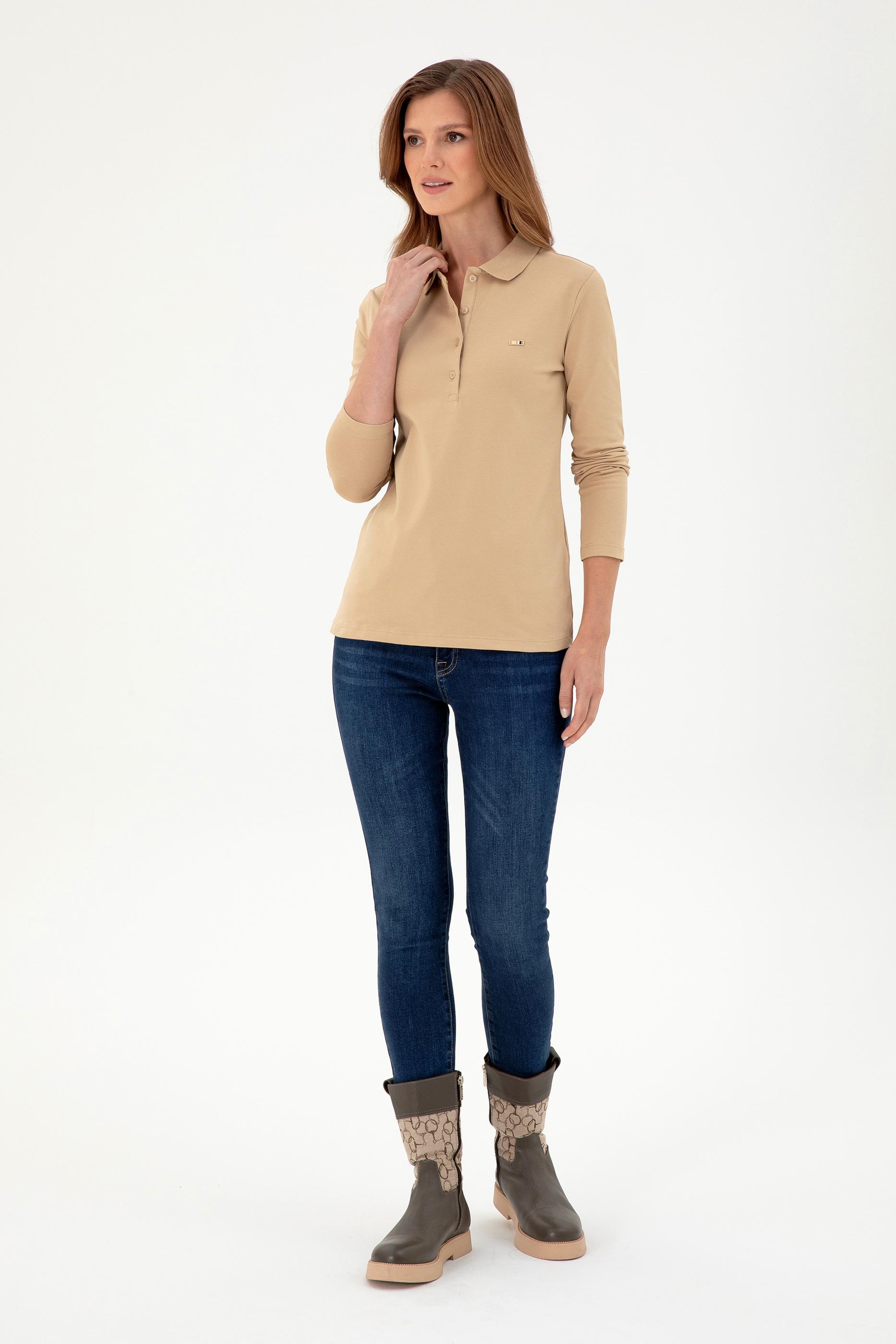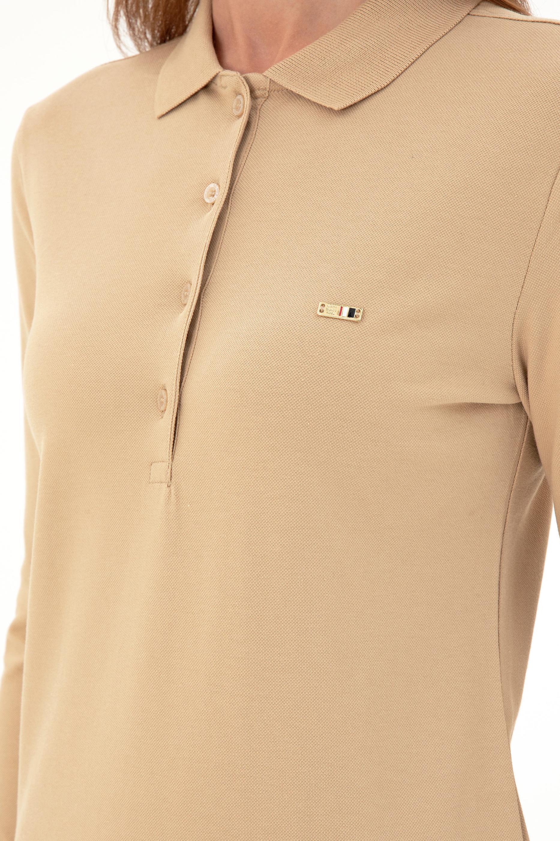 Kadın Kum Basic Polo Yaka Sweatshirt