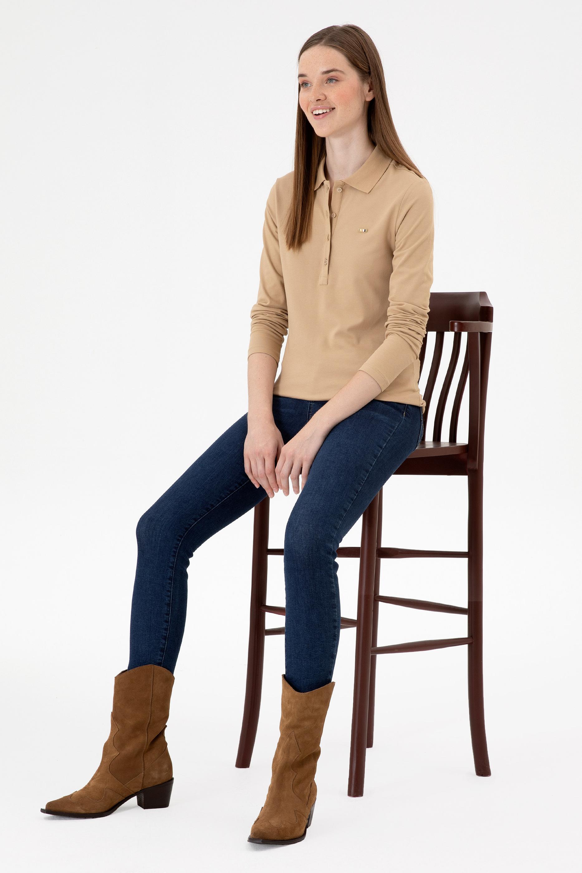 Kadın Kum Basic Polo Yaka Sweatshırt