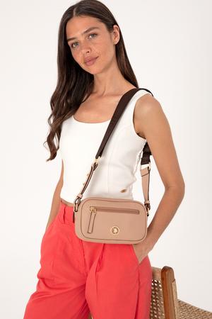 İşlevsel tasarımıyla öne çıkan kum rengi çapraz çanta, günlük kullanımda pratiklik sunar. Kompakt boyutu hafif yapısıyla gün boyu rahat taşınabilirken, fonksiyonel detayları sayesinde ihtiyaca yönelik kullanımı destekler. Çapraz askılı yapısı, elleri serbest bırakma imkânı sunarak hareket özgürlüğü kazandırır. Kum rengi, soft ve doğal tonlarıyla her kombine uyum sağlayarak klasik ve modern stillere kolayca adapte olur. Ön yüzeyde yer alan fermuarlı cep detayı, küçük eşyaların pratik bir şekilde saklanmasını sağlarken, altın renkli logo detayı modele şık bir dokunuş ekler. Ayarlanabilir askı uzunluğu sayesinde kişisel tercihlere göre farklı şekillerde taşınabilir. Ana bölmesi geniş iç hacmiyle günlük eşyaları rahatça taşıma imkânı sunarken, iç cepleri düzenli kullanım sağlar. Fermuarlı kapama sistemi, eşyaların güvenliğini artırırken kolay erişim imkânı tanır. Hafif yapısı, gün boyunca rahat bir deneyim sunarken, dayanıklı malzemesi uzun süreli kullanım imkânı sağlar. Spor ve klasik kombinlerle rahatça tamamlanabilen model, şehir hayatından seyahatlere kadar her ortamda stil sahibi bir duruş sergiler. Hem şık hem de kullanışlı bir çanta arayanlar için mükemmel bir alternatif olurken, detaylı tasarımıyla fark yaratır.