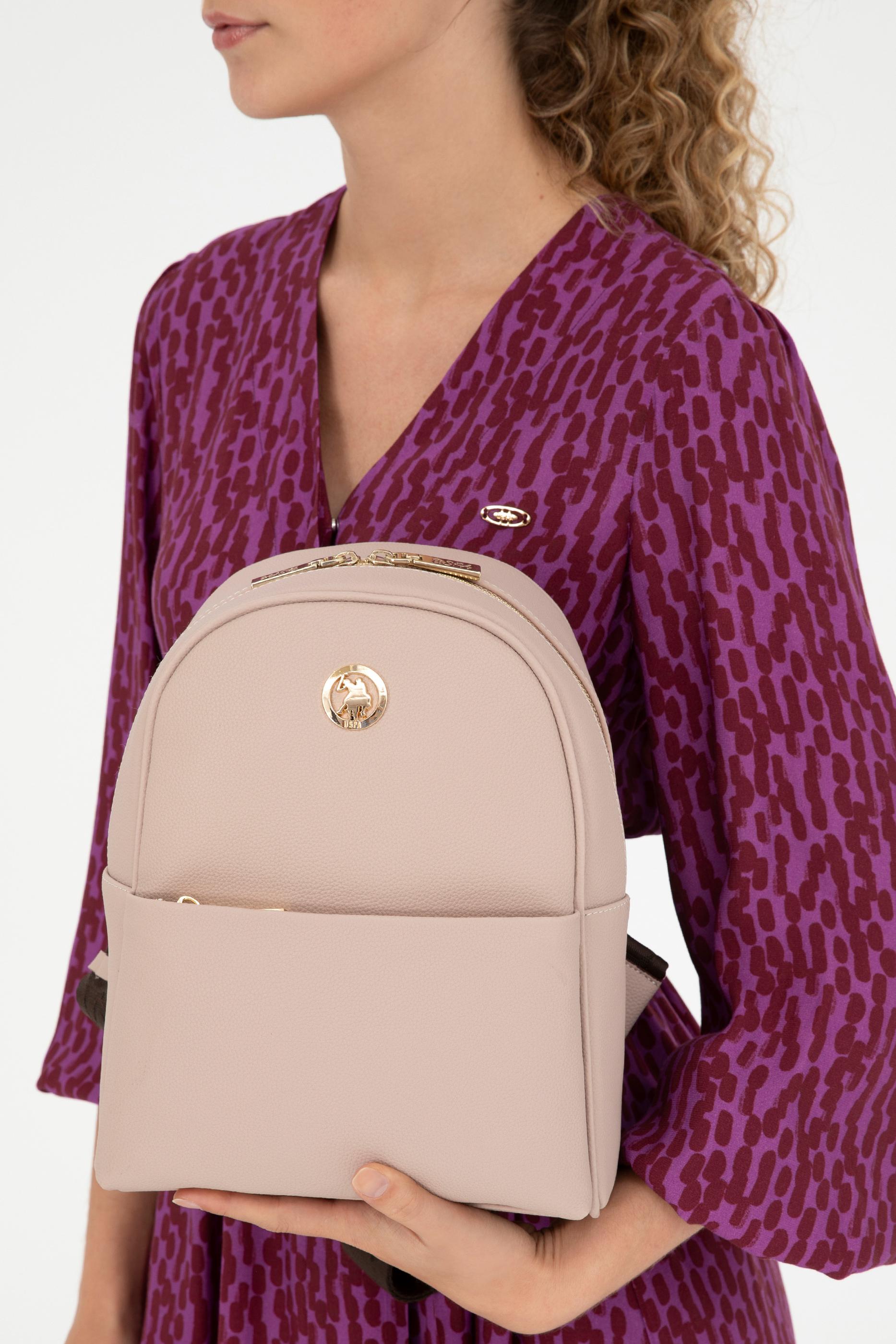 Yumuşak kum renginin zarif enerjisini günlük şıklıkla buluşturan U.S. Polo Assn. kadın sırt çantası, modern ve fonksiyonel tasarımıyla öne çıkıyor. Yuvarlak formu ve sade dış yüzeyiyle feminen bir duruş sergileyen bu model, altın renkli fermuar detayları ve metalik logo rozetiyle şık bir görünüm kazanıyor. Ön yüzeyde yer alan fermuarlı cep, sık kullanılan küçük eşyalar için pratik erişim sağlarken; ayarlanabilir omuz askıları sayesinde konforlu bir taşıma deneyimi sunuyor. Şehirde aktif bir gün geçiren ya da hafta sonu rahat kombinlerine zarif bir dokunuş eklemek isteyen kadınlar için ideal bir tamamlayıcıdır.