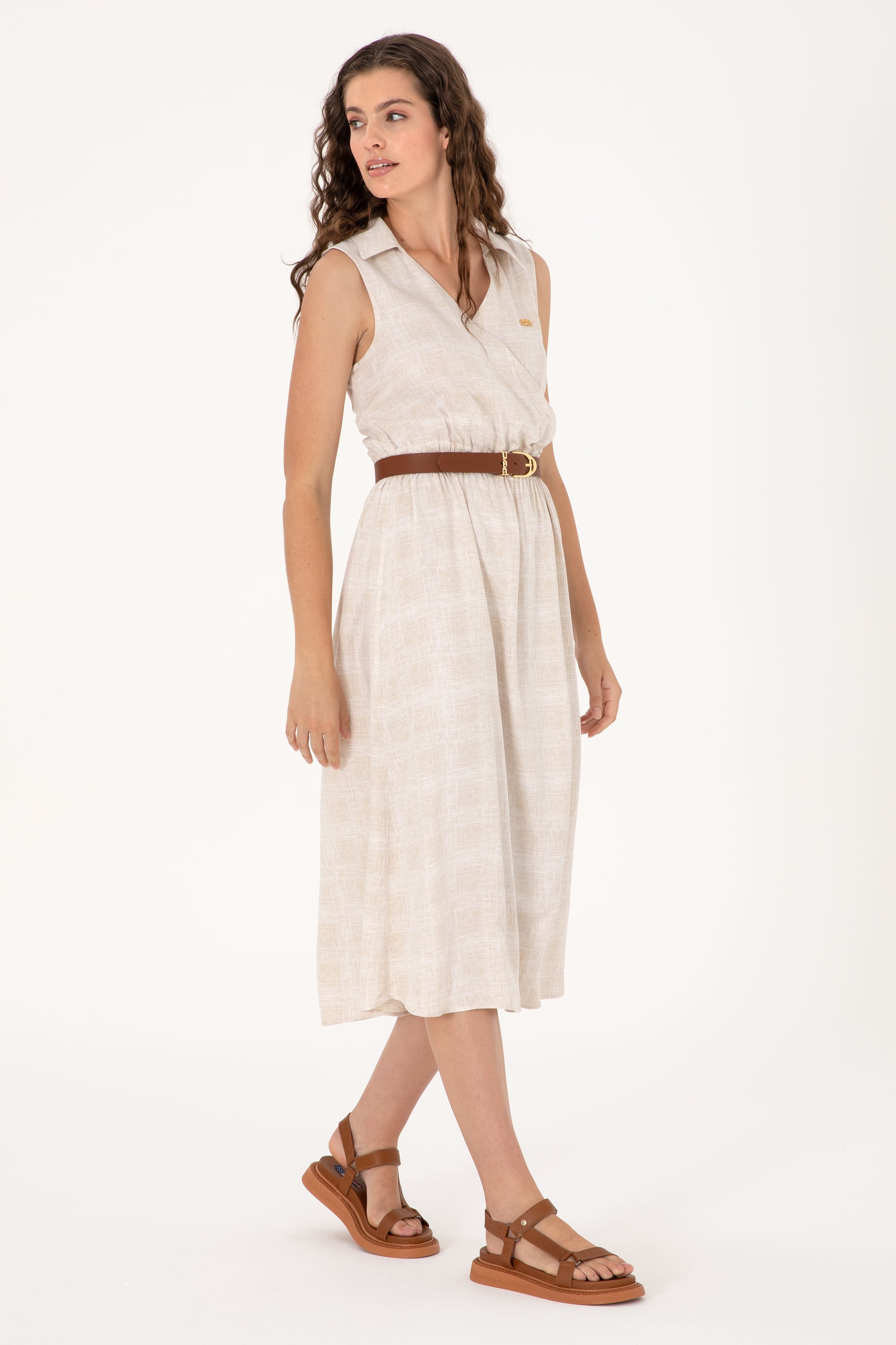 Kadın Kum Polo Yaka Midi Boy Dokuma Elbise