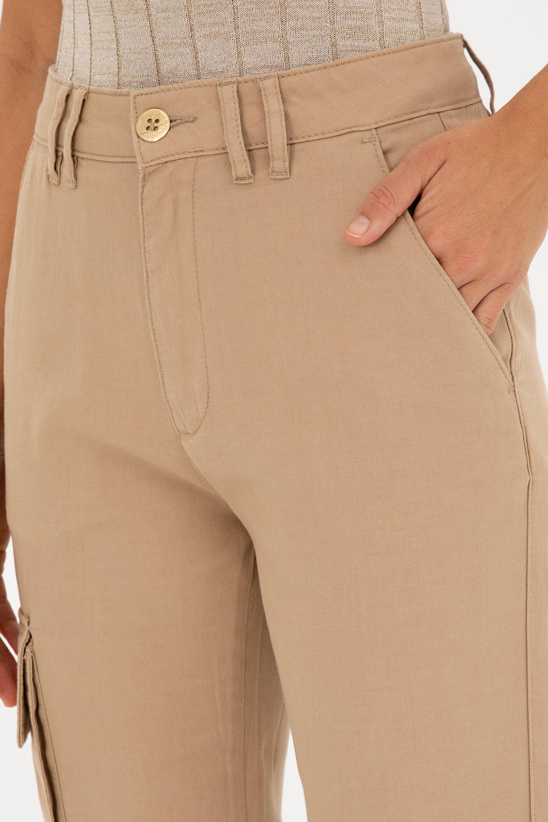 Kadın Kum Carrot Hight Waist Kanvas Pantolon