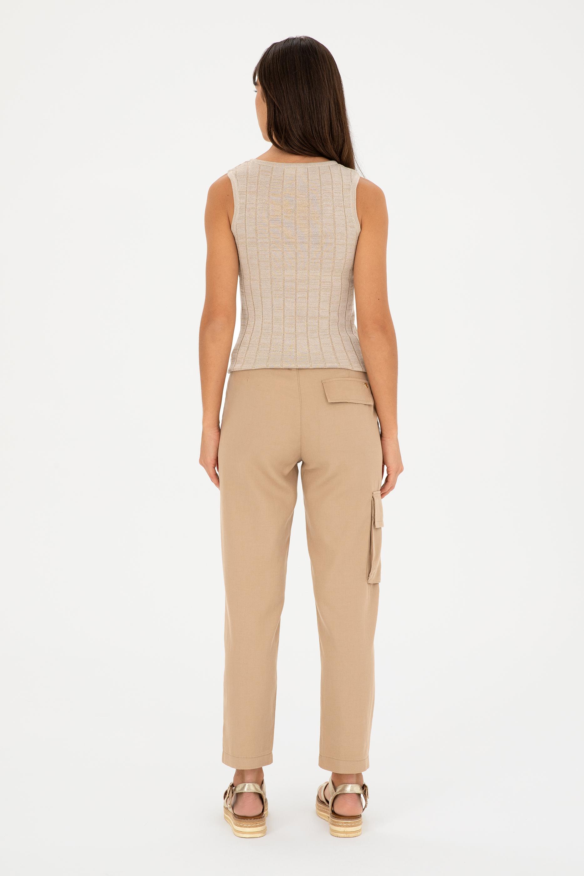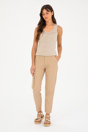 - Kadın Kum Carrot Hight Waist Kanvas Pantolon