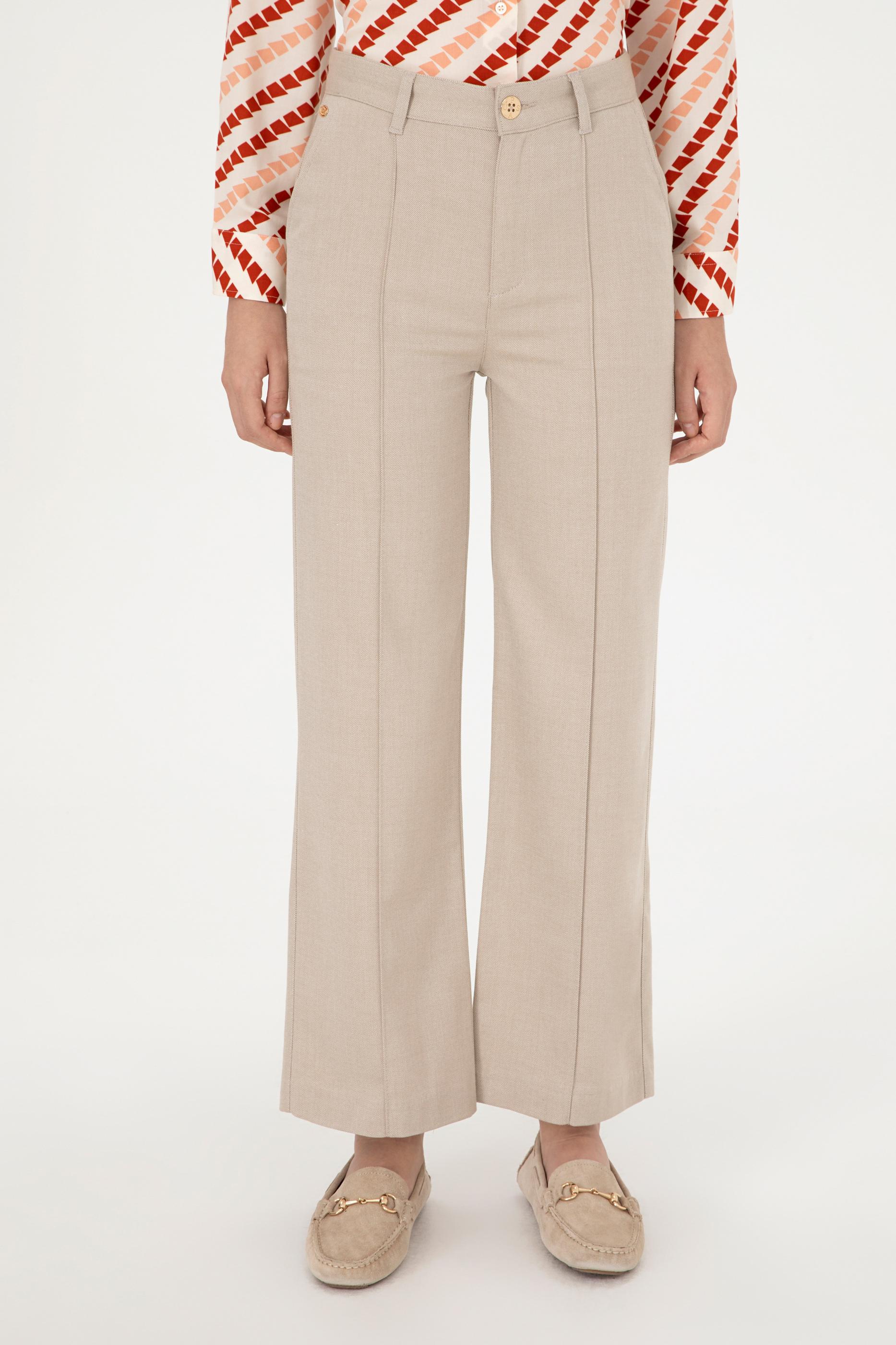 Aktif yaşam tarzına sahip kadınlar için tasarlanmış dokuma spor pantolon, %64 polyester, %34 viskoz ve %2 elastan karışımından üretilmiştir. Kum rengi, doğal ve sıcak tonlarıyla her ortamda uyum sağlarken, şıklığınızı artırmaktadır. Pantolonun hafif yapısı, nefes alabilen kumaşı sayesinde gün boyu rahatlık sunmakta ve hareket özgürlüğü sağlamaktadır. Straight fit tasarımı, vücut hatlarınızı nazik bir şekilde vurgulamakta ve her adımda rahat bir oturuş sunmaktadır. Geniş kesimi sayesinde spor aktiviteleri sırasında da rahatlıkla tercih edilebilecek bir parçadır. Aynı zamanda ofis ortamlarında şıklığınızı korumanıza yardımcı olur. Kaliteli dikiş detayları, pantolonun dayanıklılığını artırarak uzun süreli kullanım imkanı tanımaktadır. Şık bir tişört ya da bluz ile kolayca kombinlenebilen parça, dolabınızda vazgeçilmez bir yer edinmektedir. Seçeceğiniz ayakkabıya bağlı olarak da stilinizi farklılaştırabilmeye olanak tanımaktadır. Modern ve kullanışlı tasarımıyla dikkat çeken dokuma spor pantolon, her kadının stiline katkıda bulunmakta ve her durumda rahat hissetmenizi sağlamaktadır. Hem günlük yaşamda hem de sosyal ortamlarda şıklığınızı ön planda tutacak bir seçenek sunmaktadır.