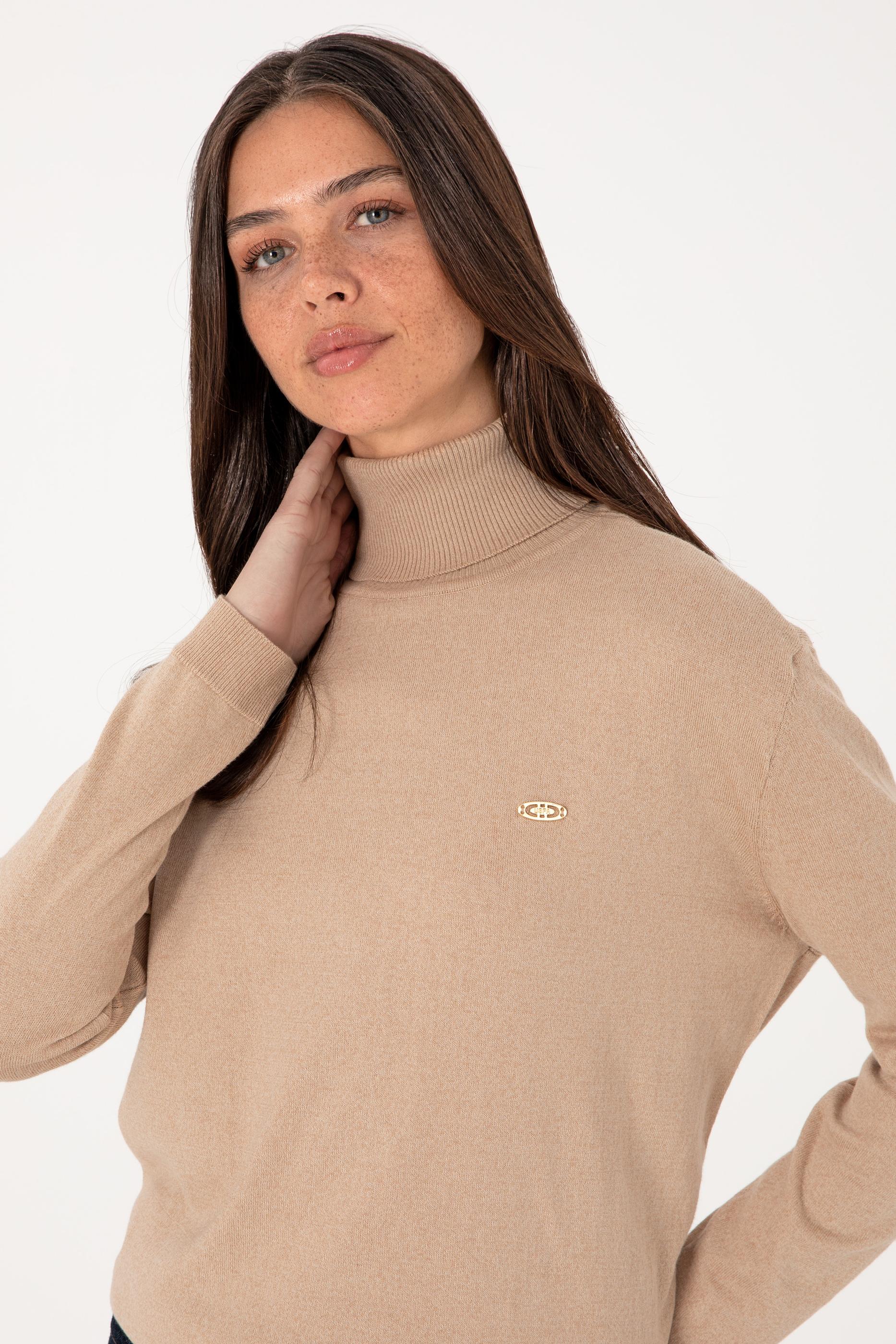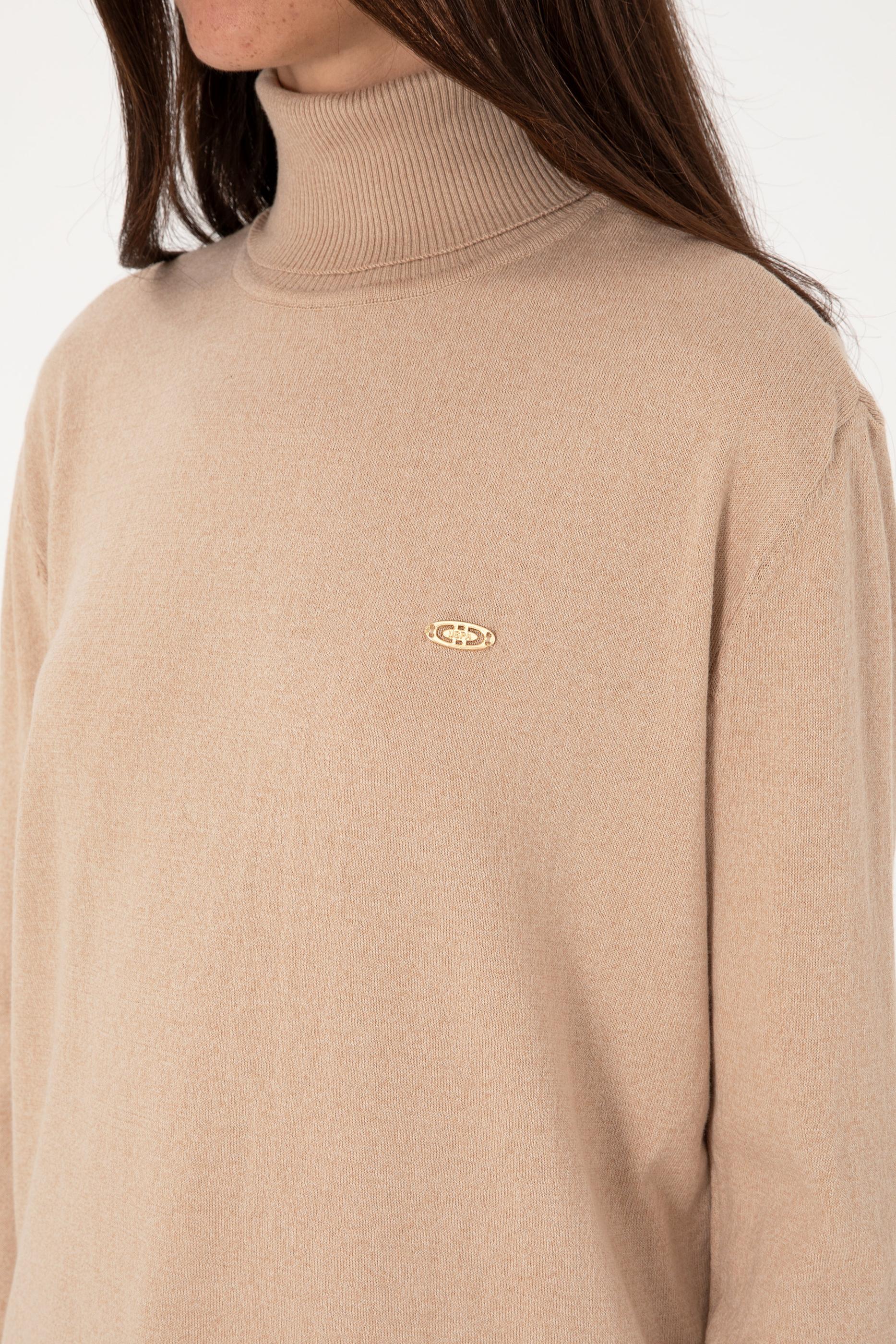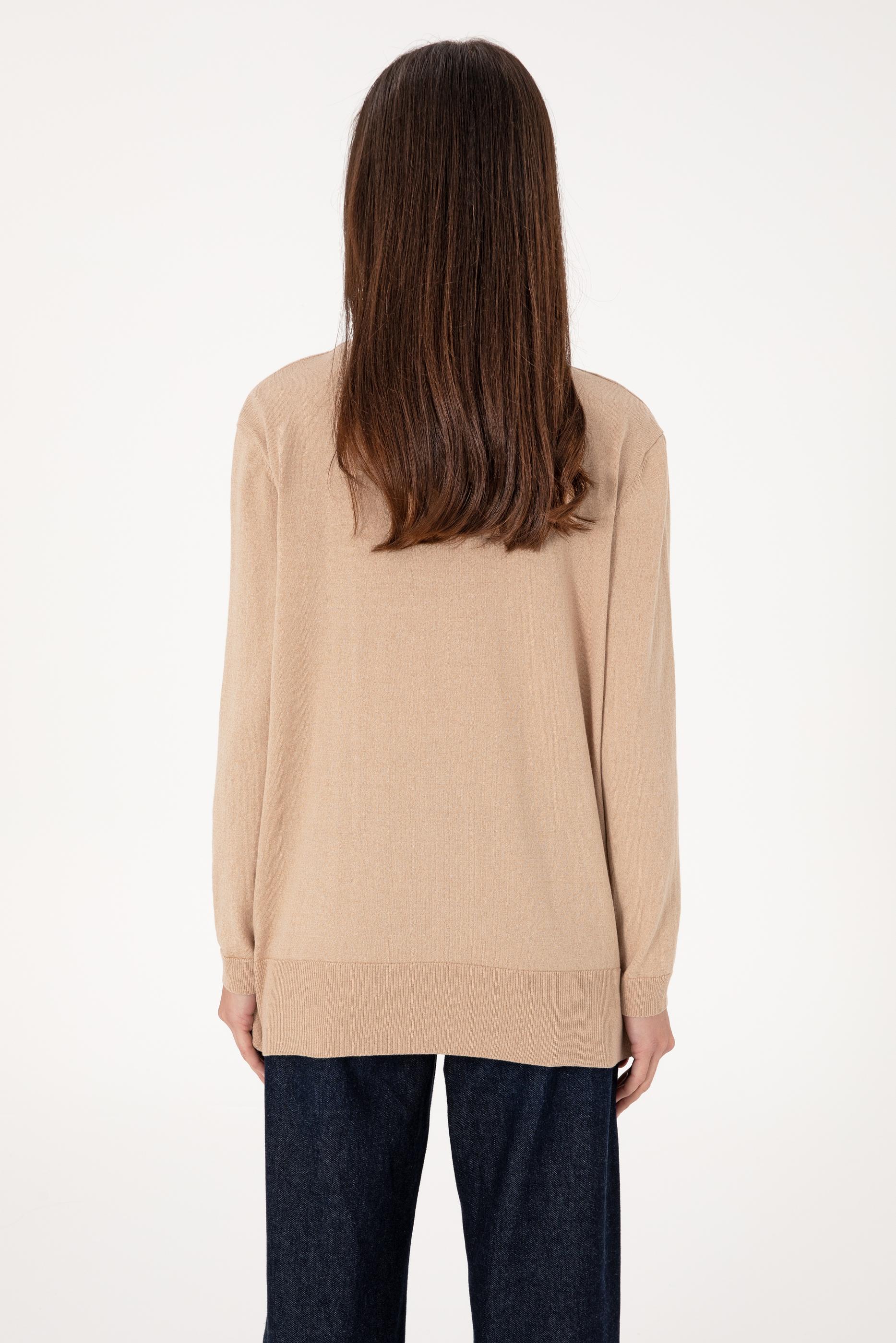 Kadın Kum Melanj Boğazlı Basic Kazak
