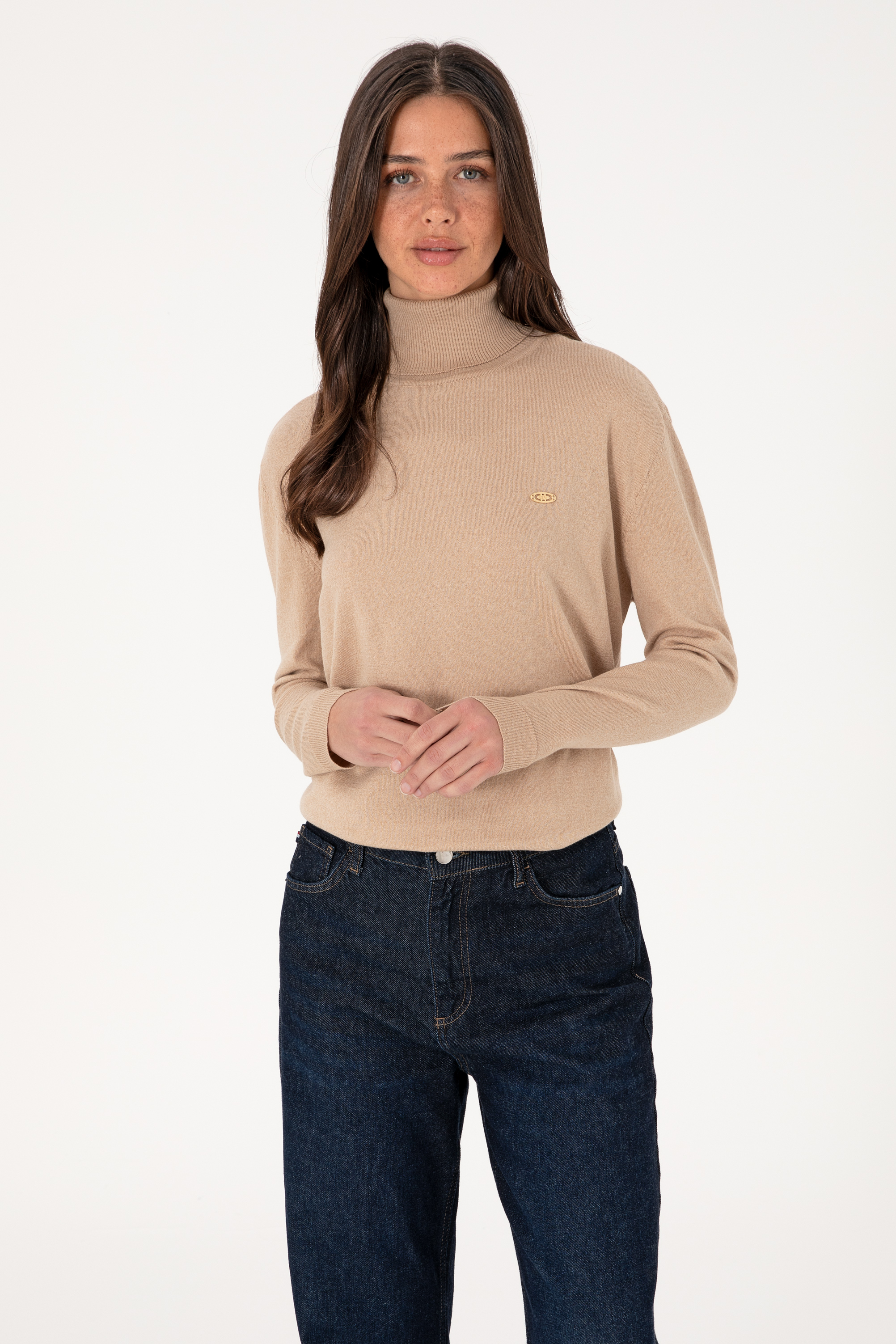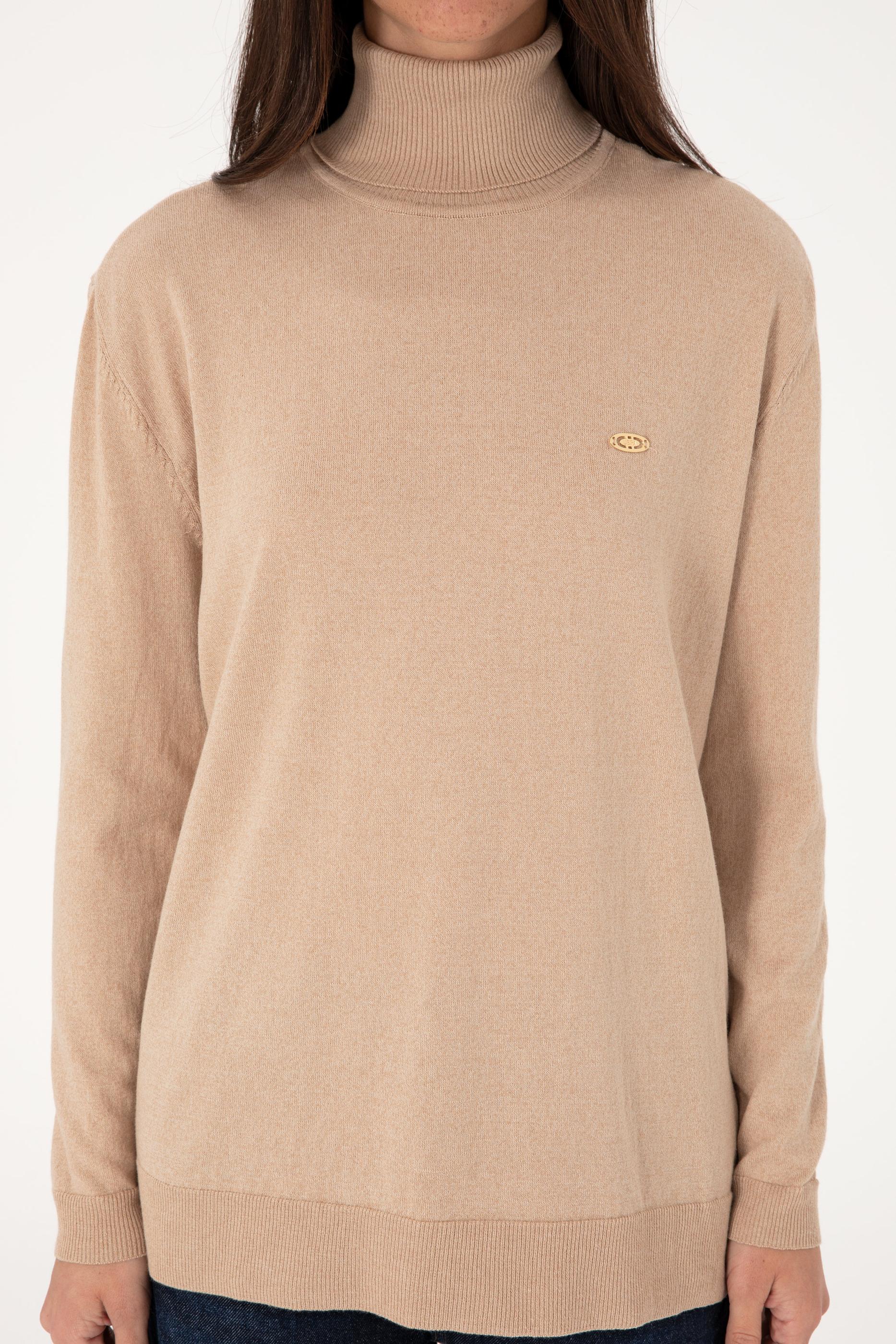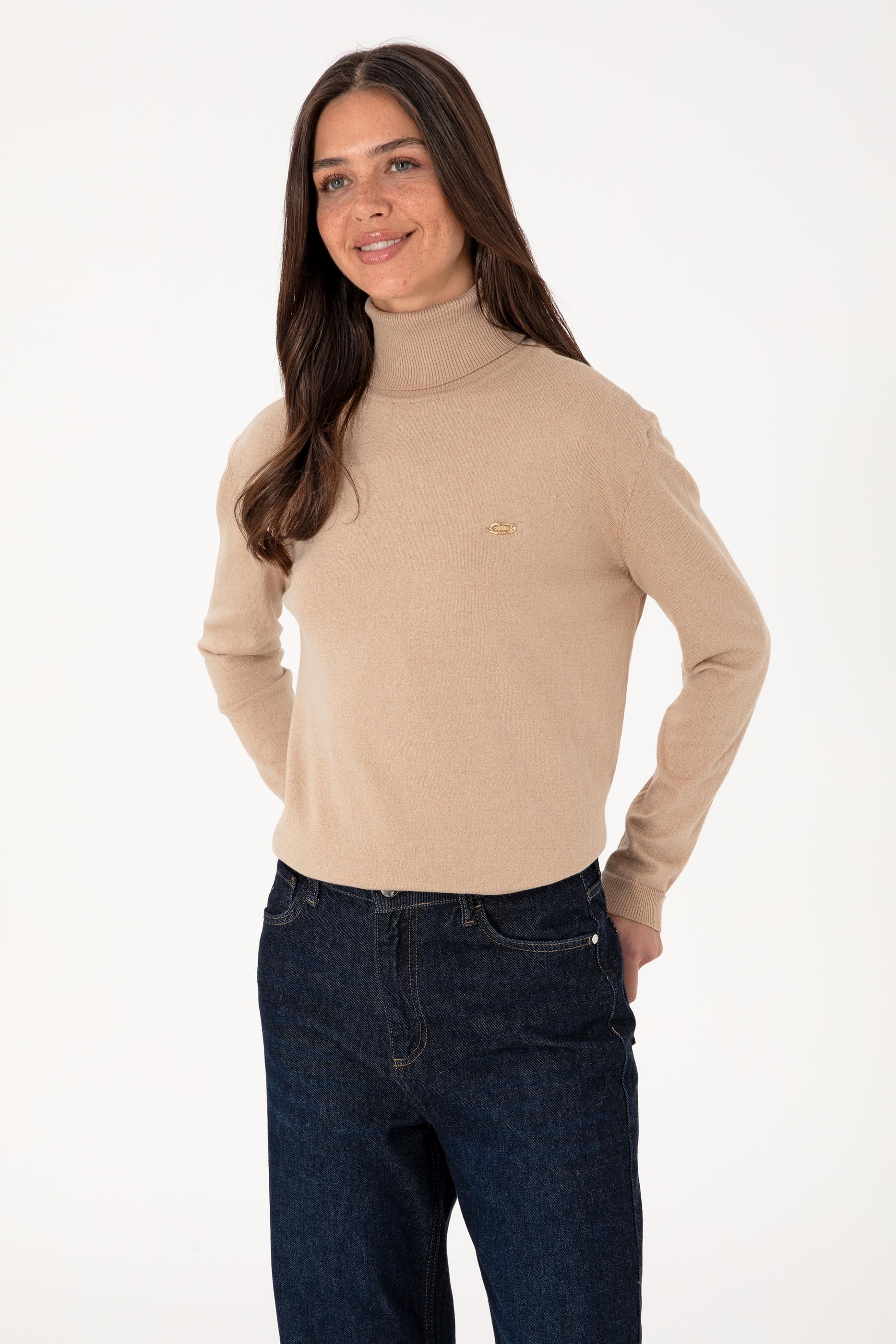 Kadın Kum Melanj Boğazlı Basic Kazak