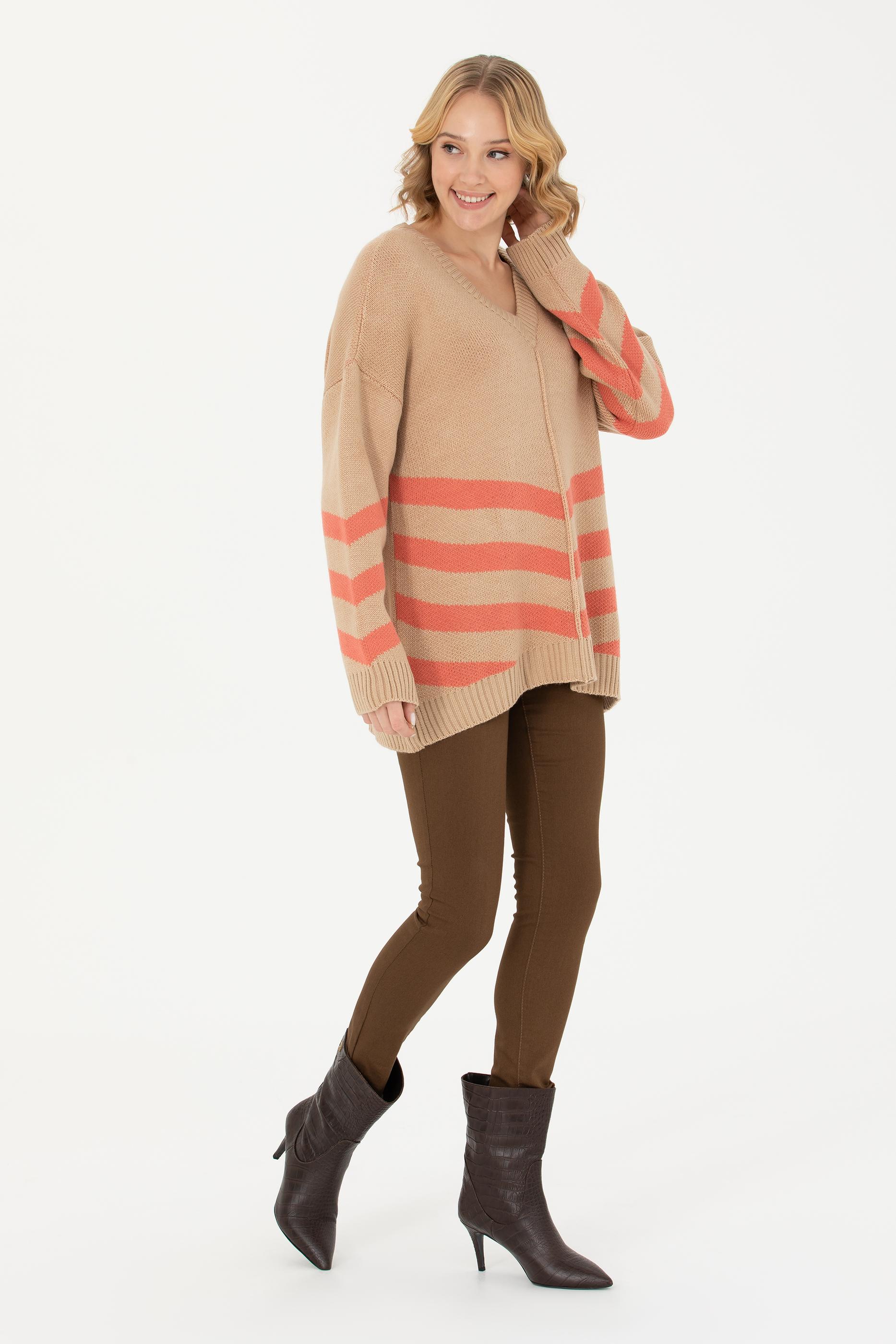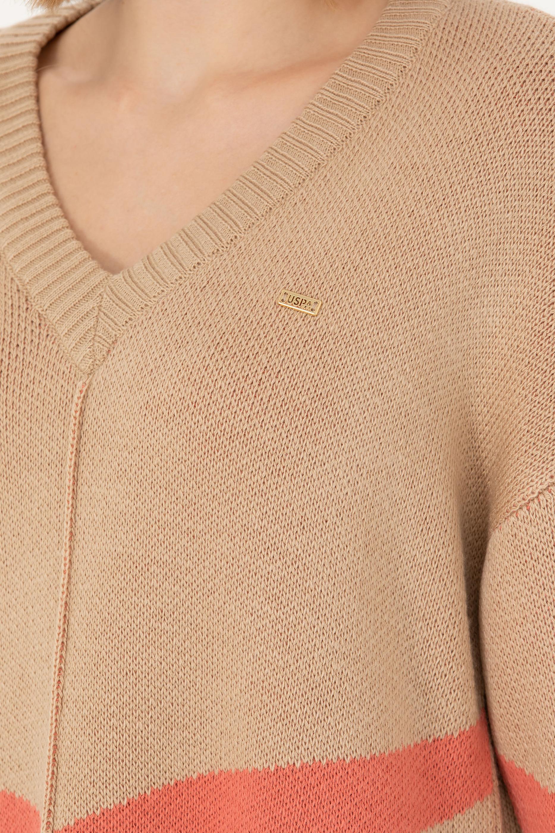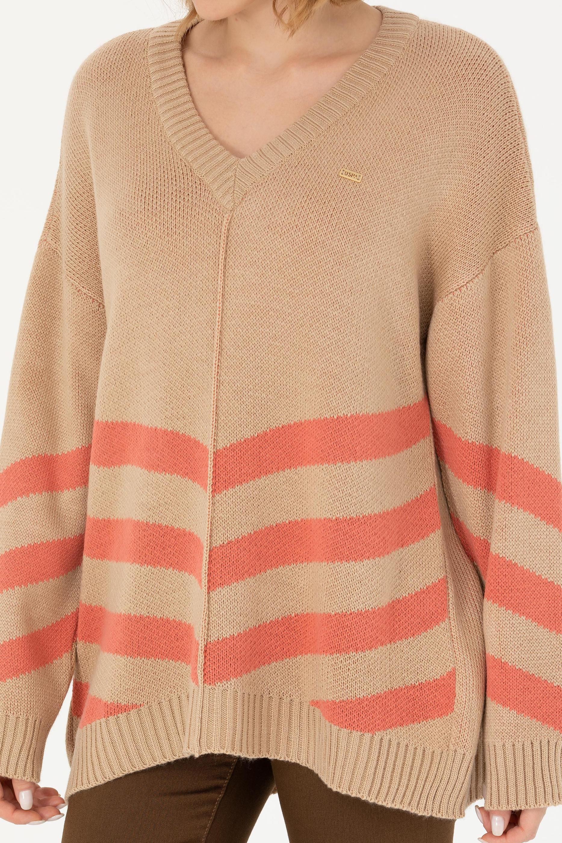 Kadın Kum Melanj V Yaka Triko Kazak