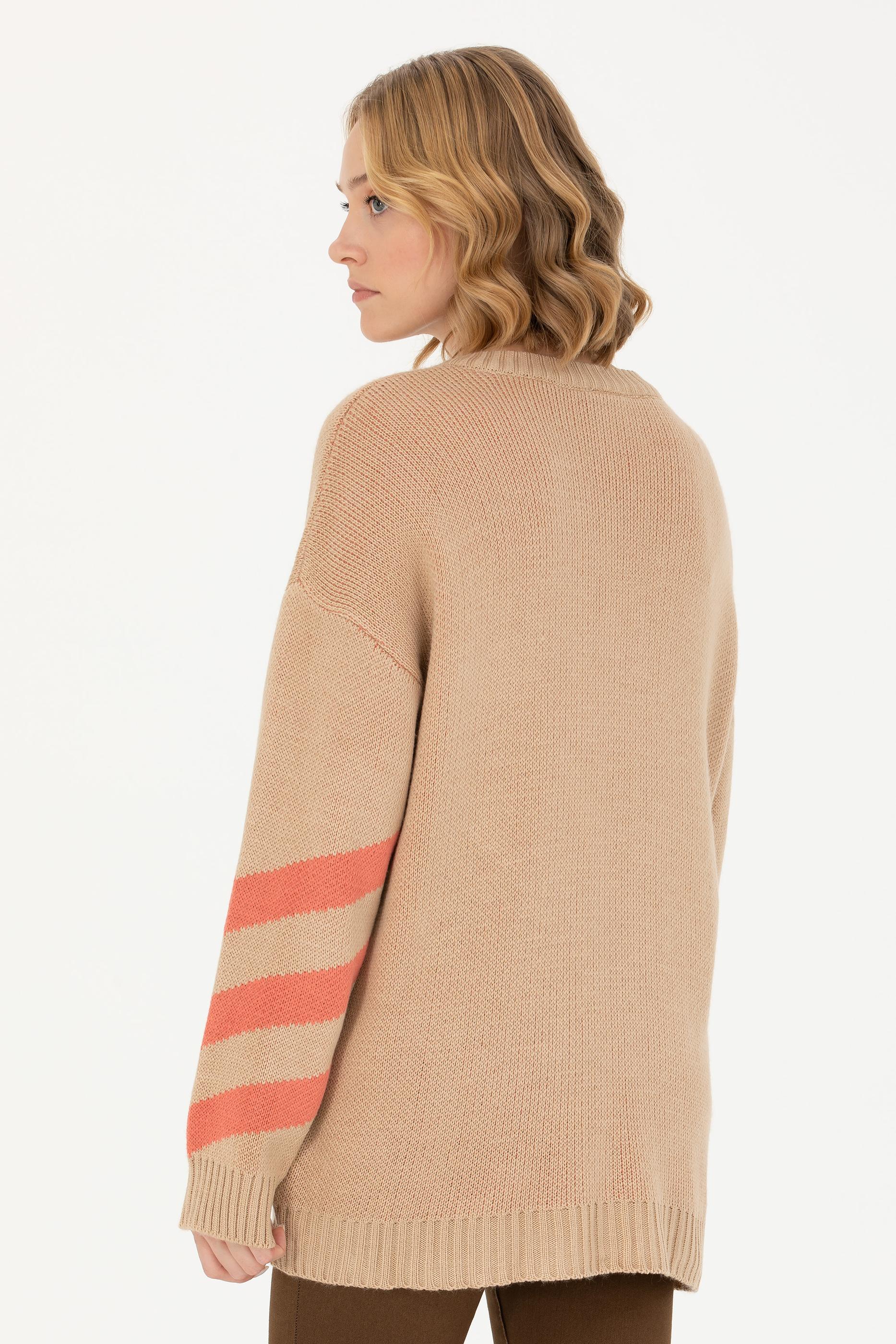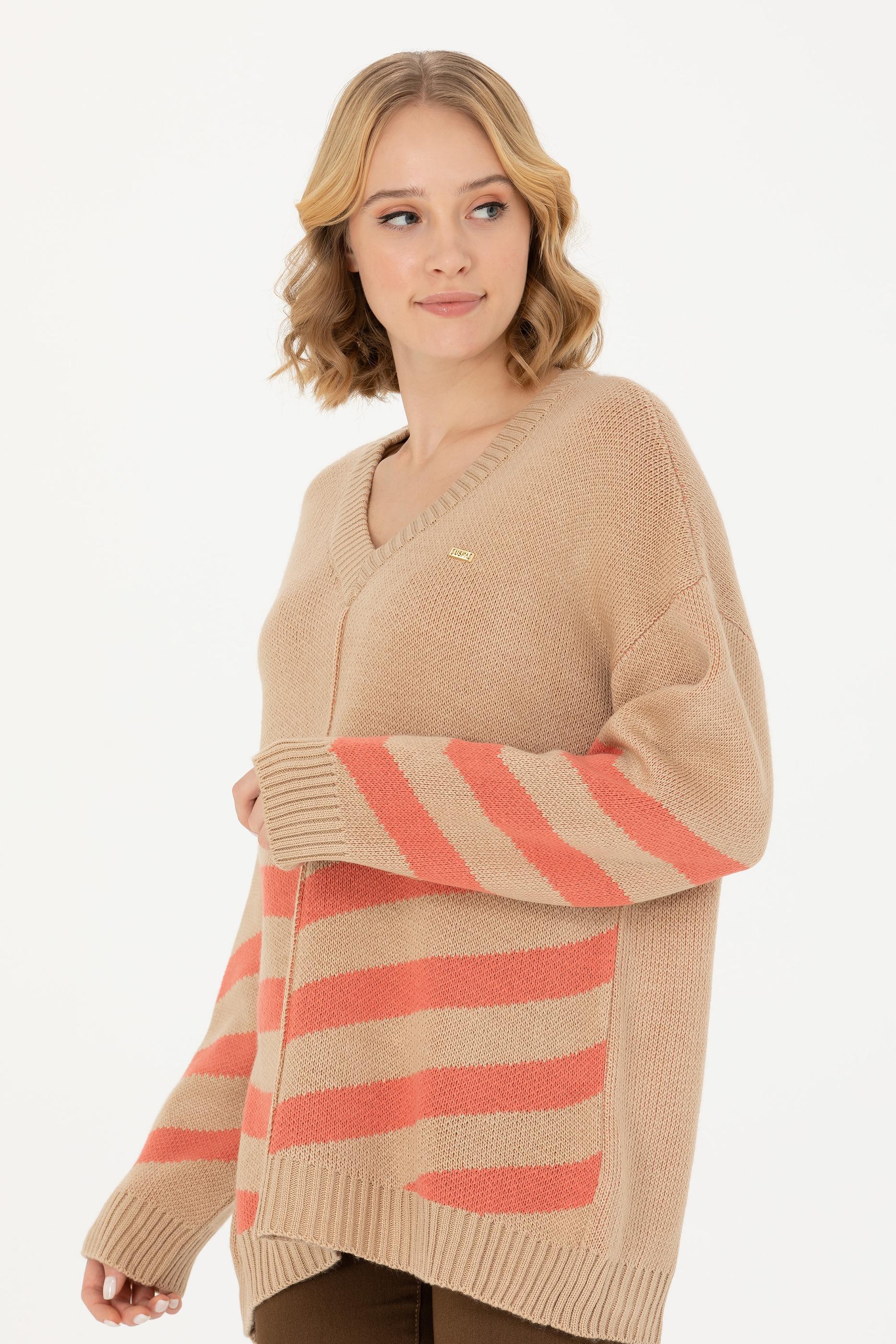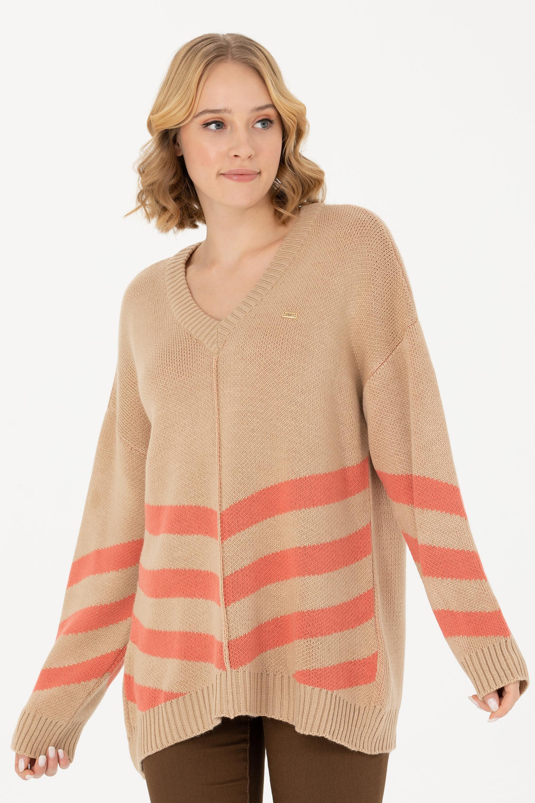 Kadın Kum Melanj V Yaka Triko Kazak