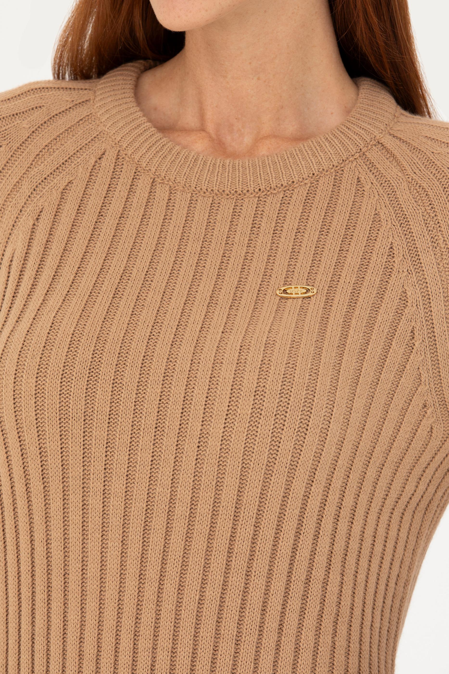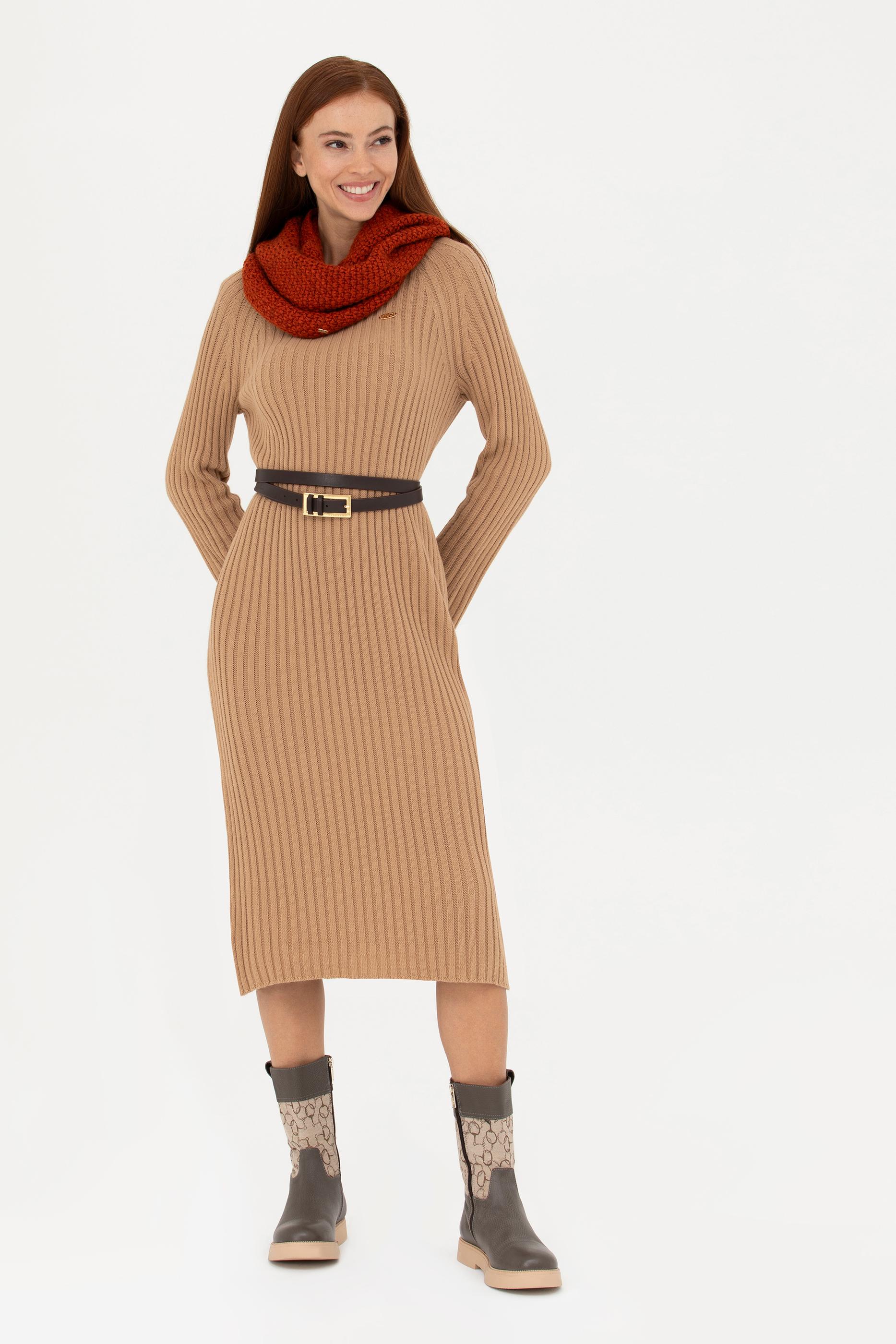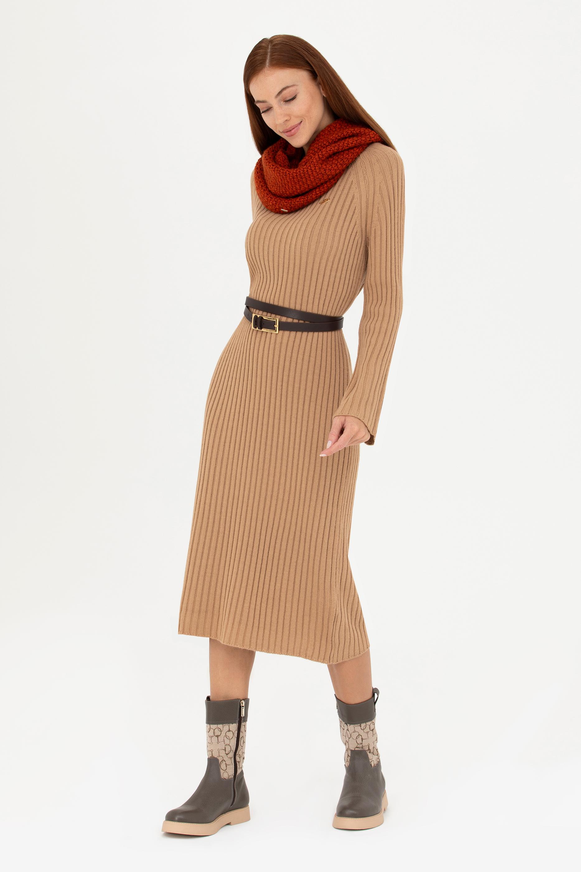 Kadın Kum Bisiklet Yaka Triko Elbise