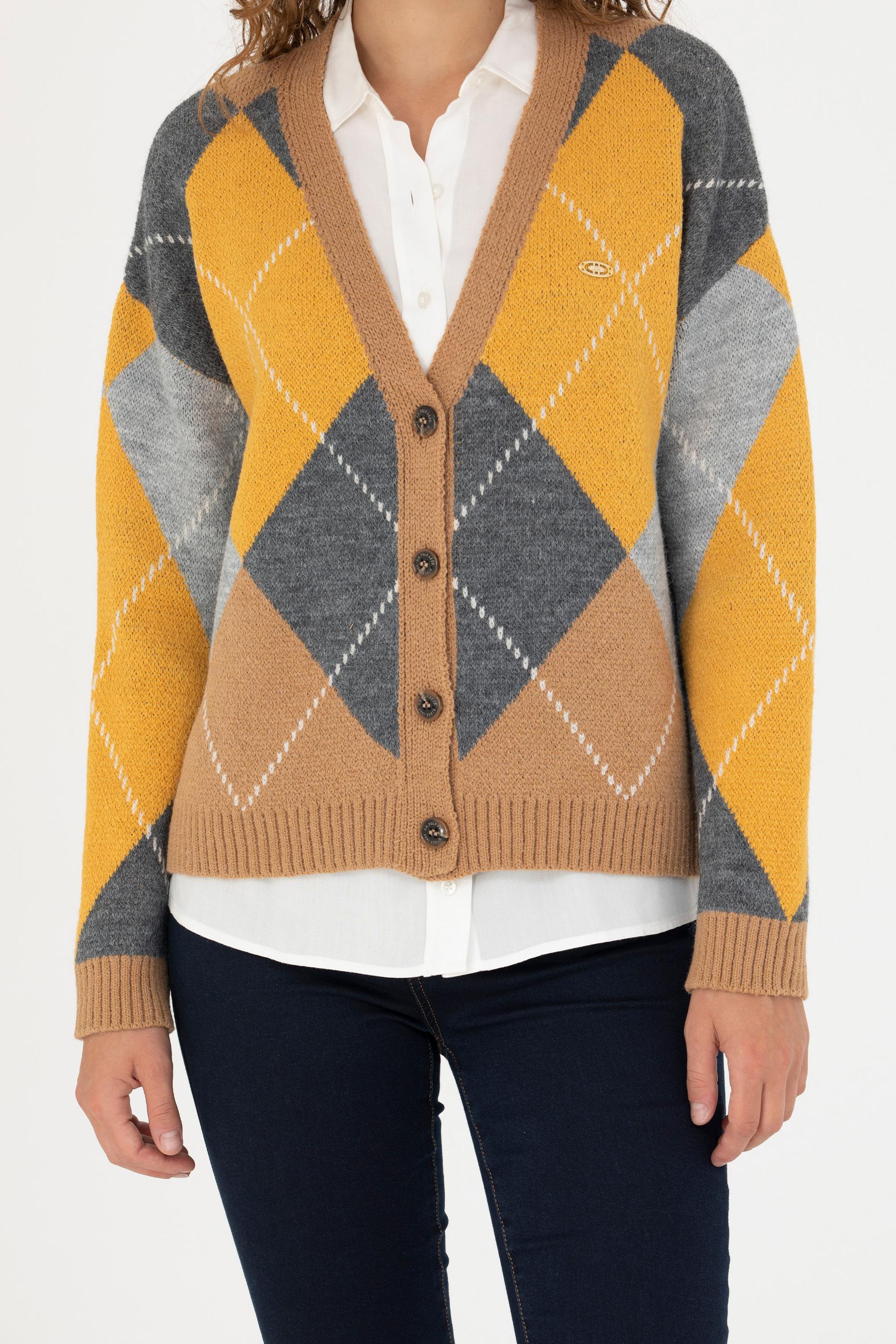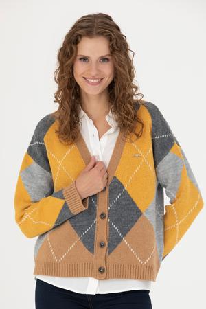 Kadın V Yaka Kum Melanj Triko Hırka