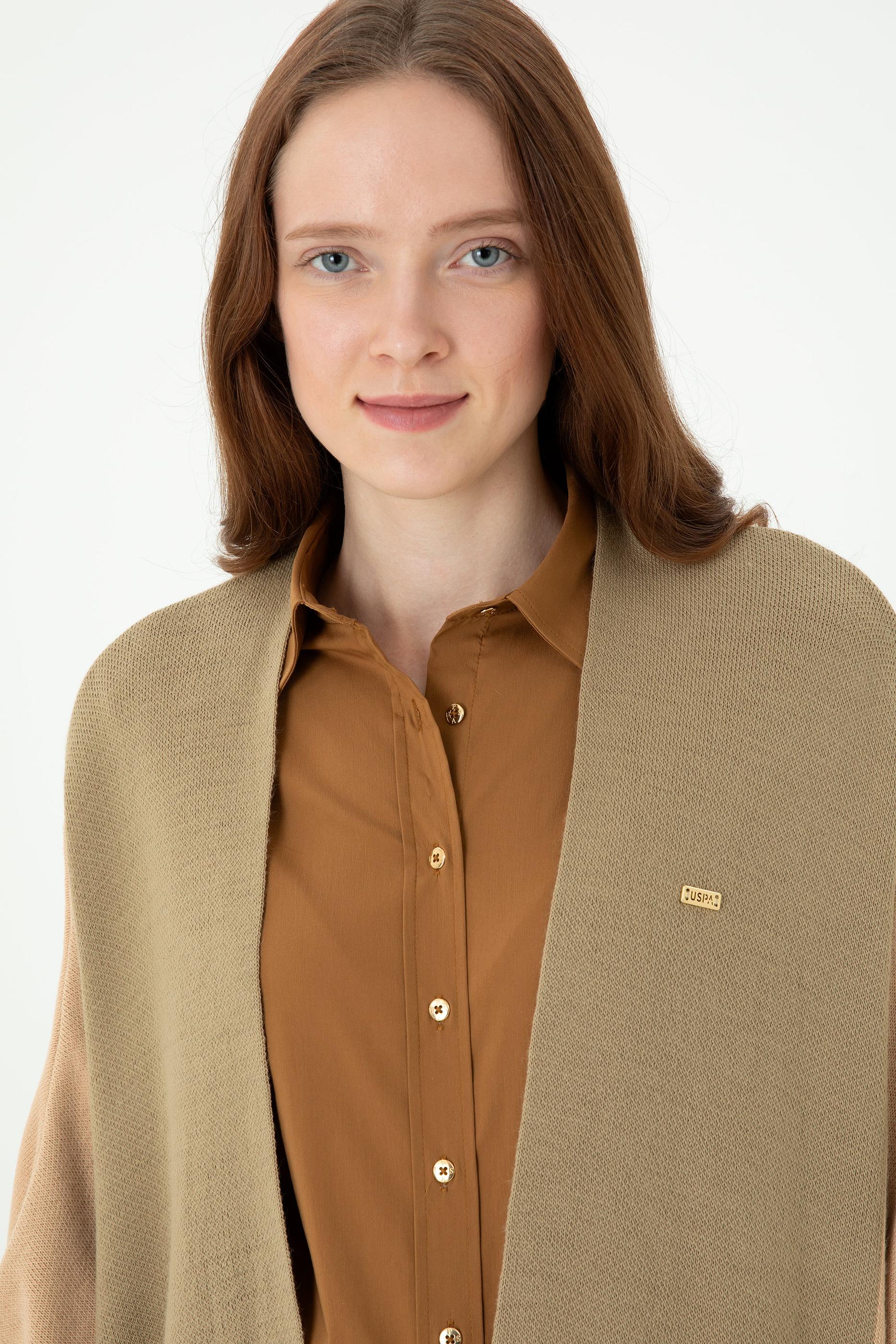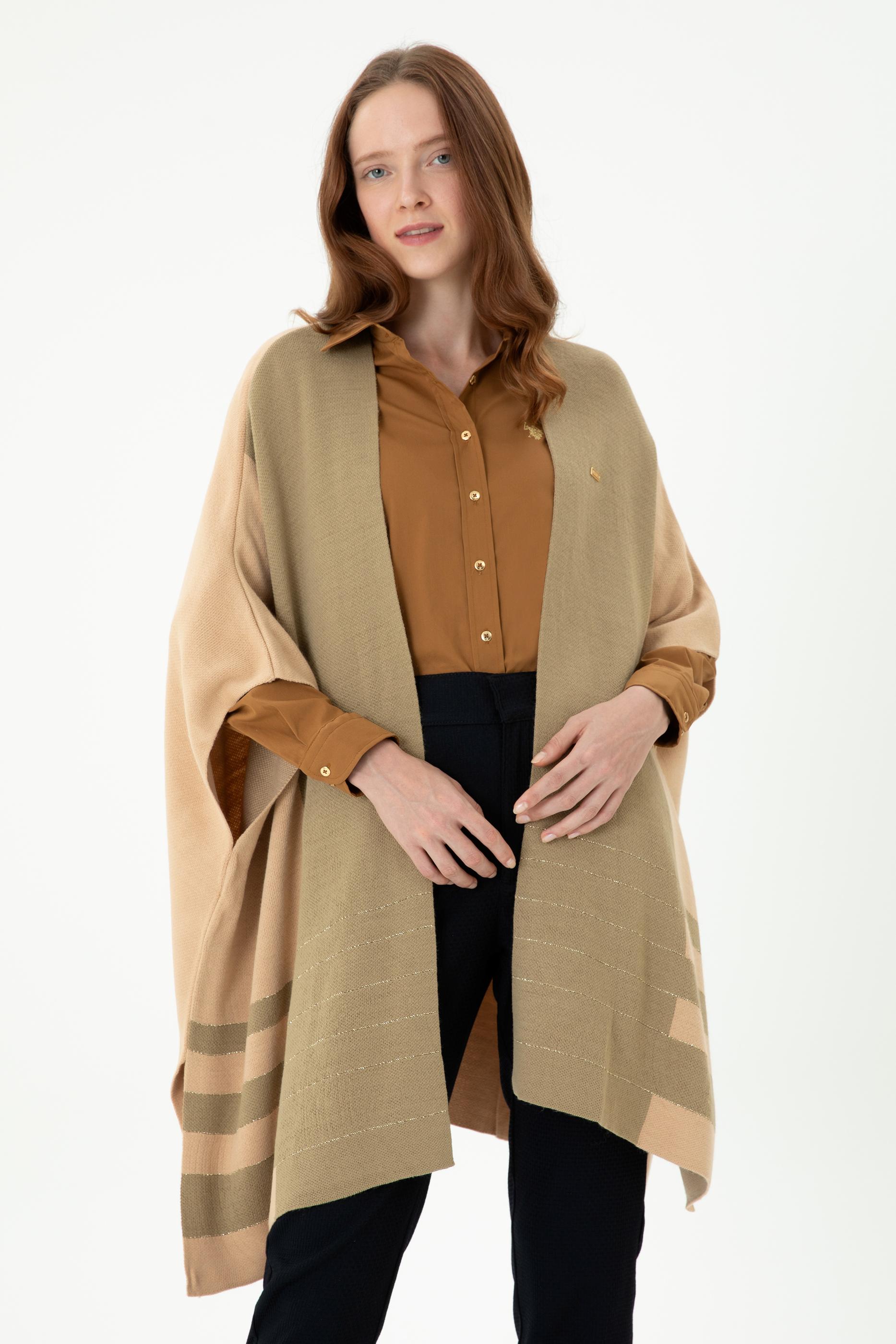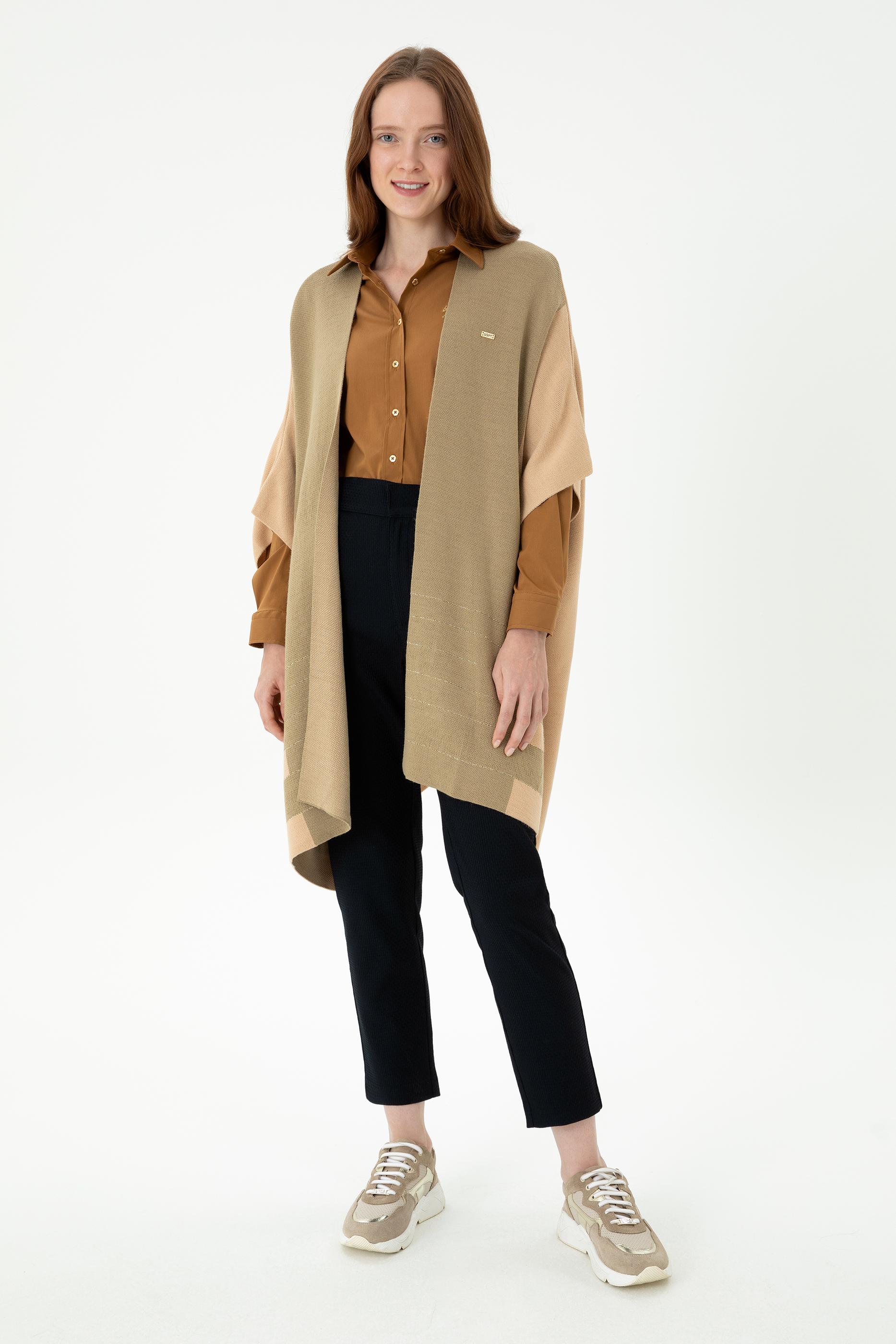 Kadın Kum Melanj Triko Panço