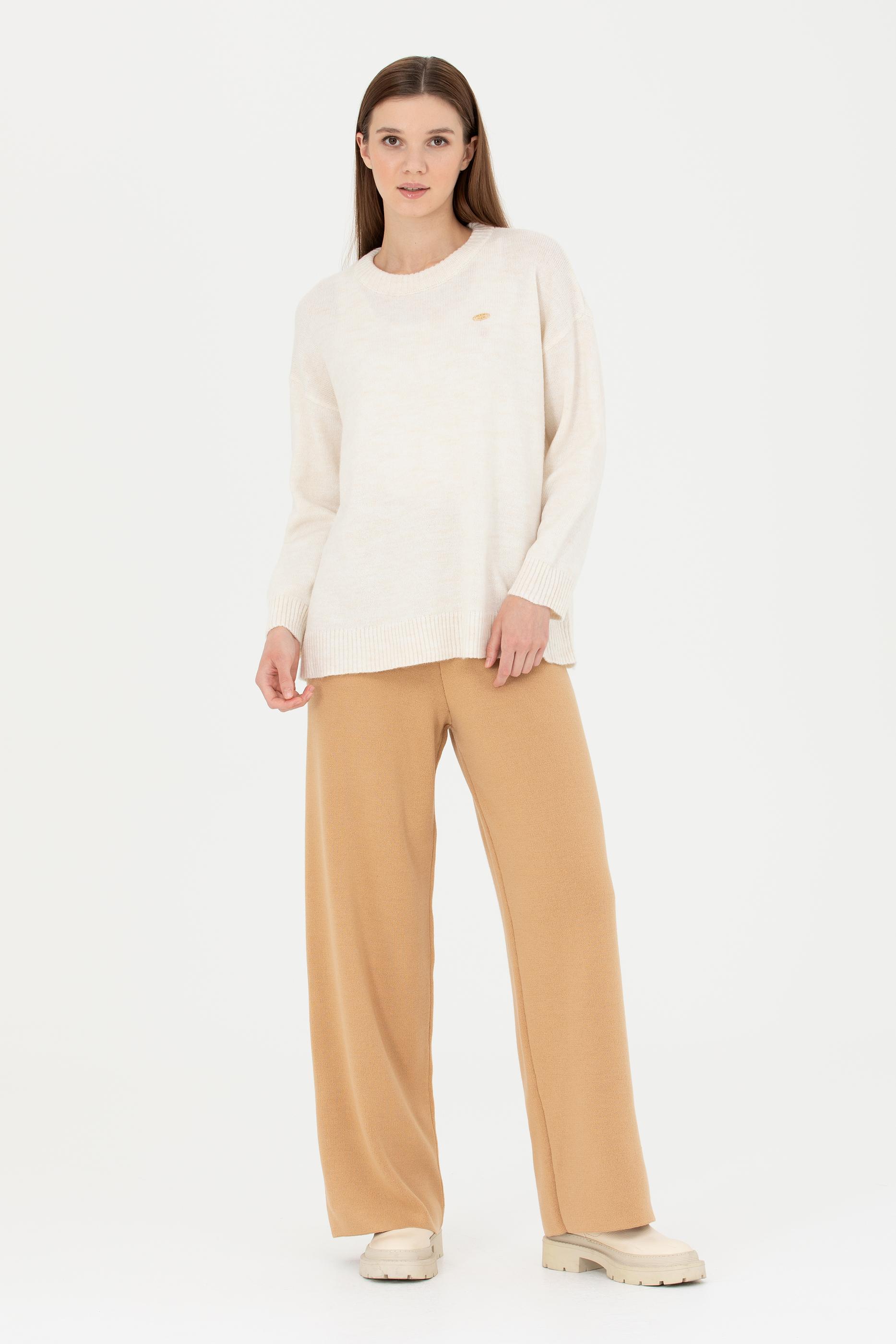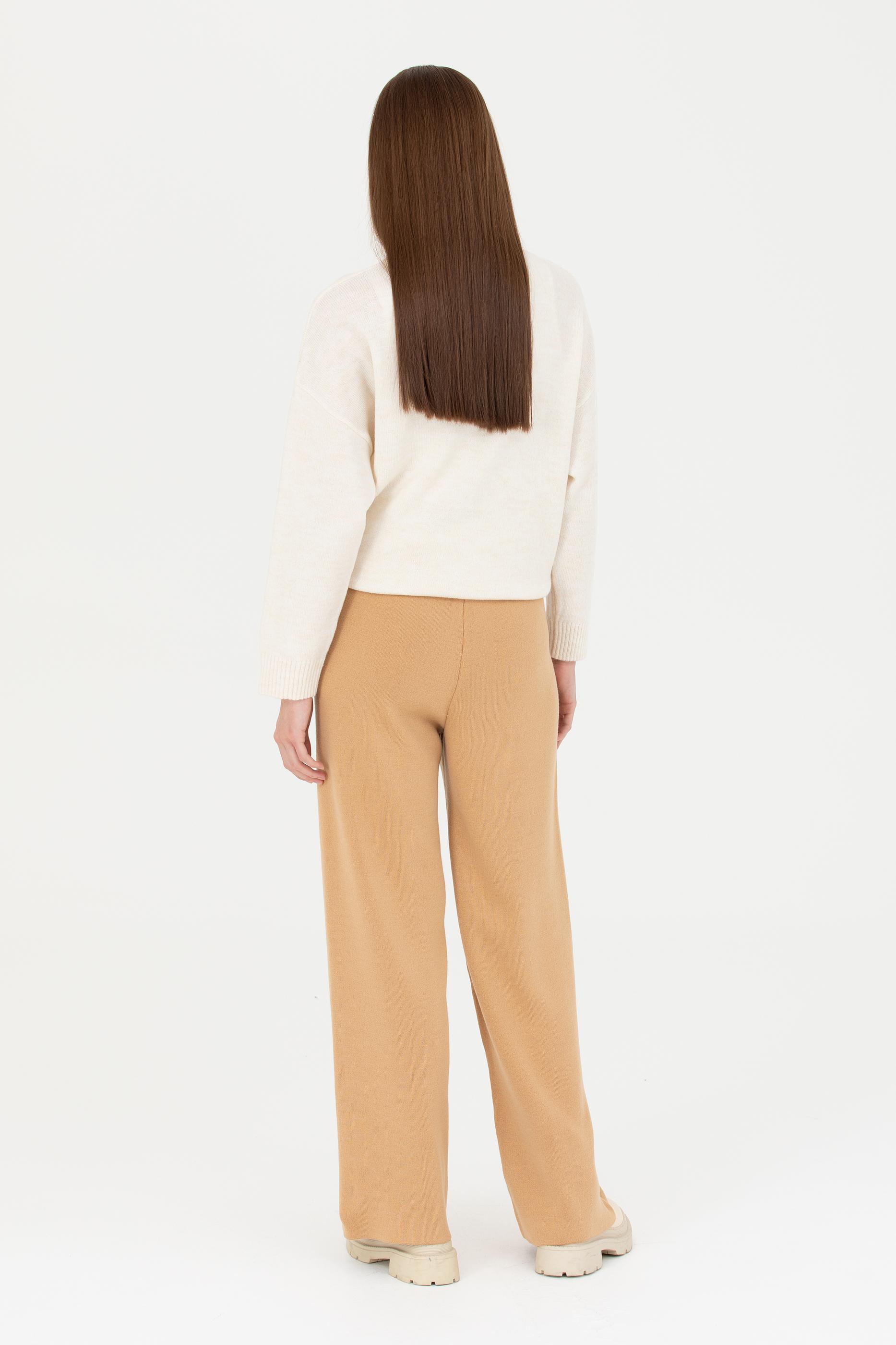 Kadın Kum Melanj Loose Fit Triko Pantolon