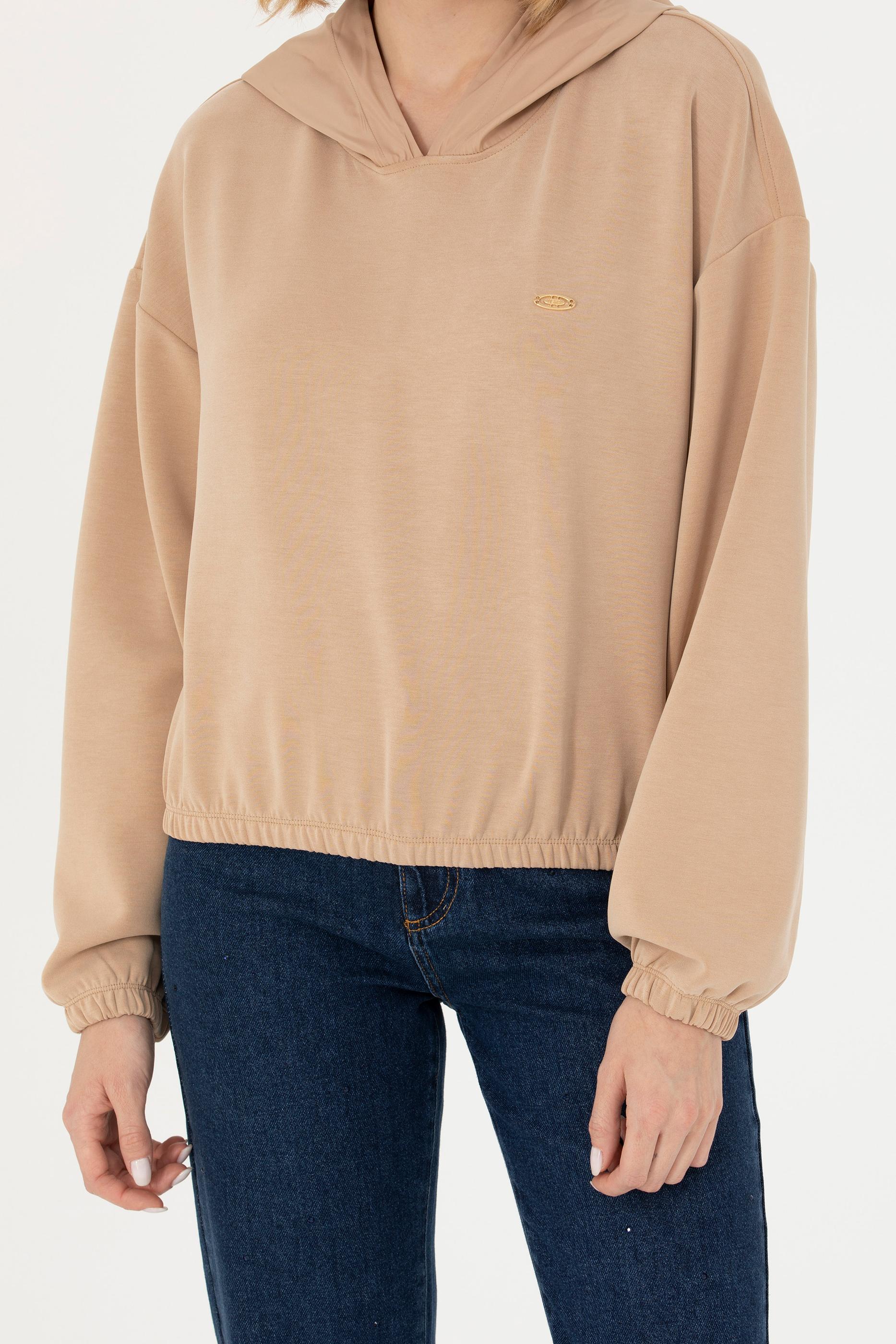 Kadın Kum Kapüşonlu Sweatshirt