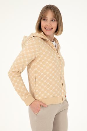 Kadın Desenli Kum Kapüşonlu Sweatshirt