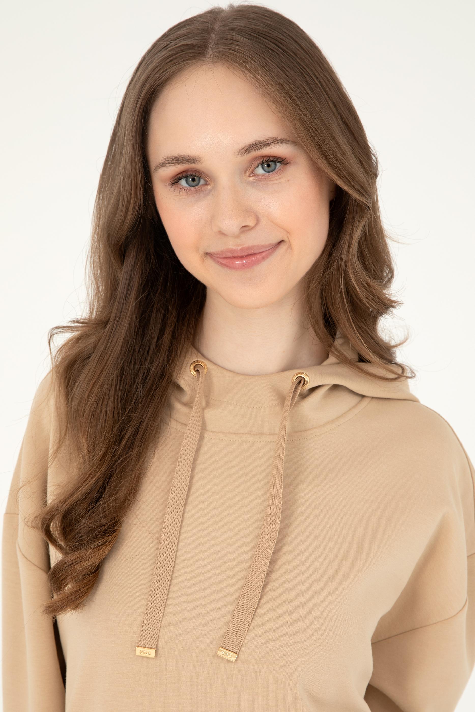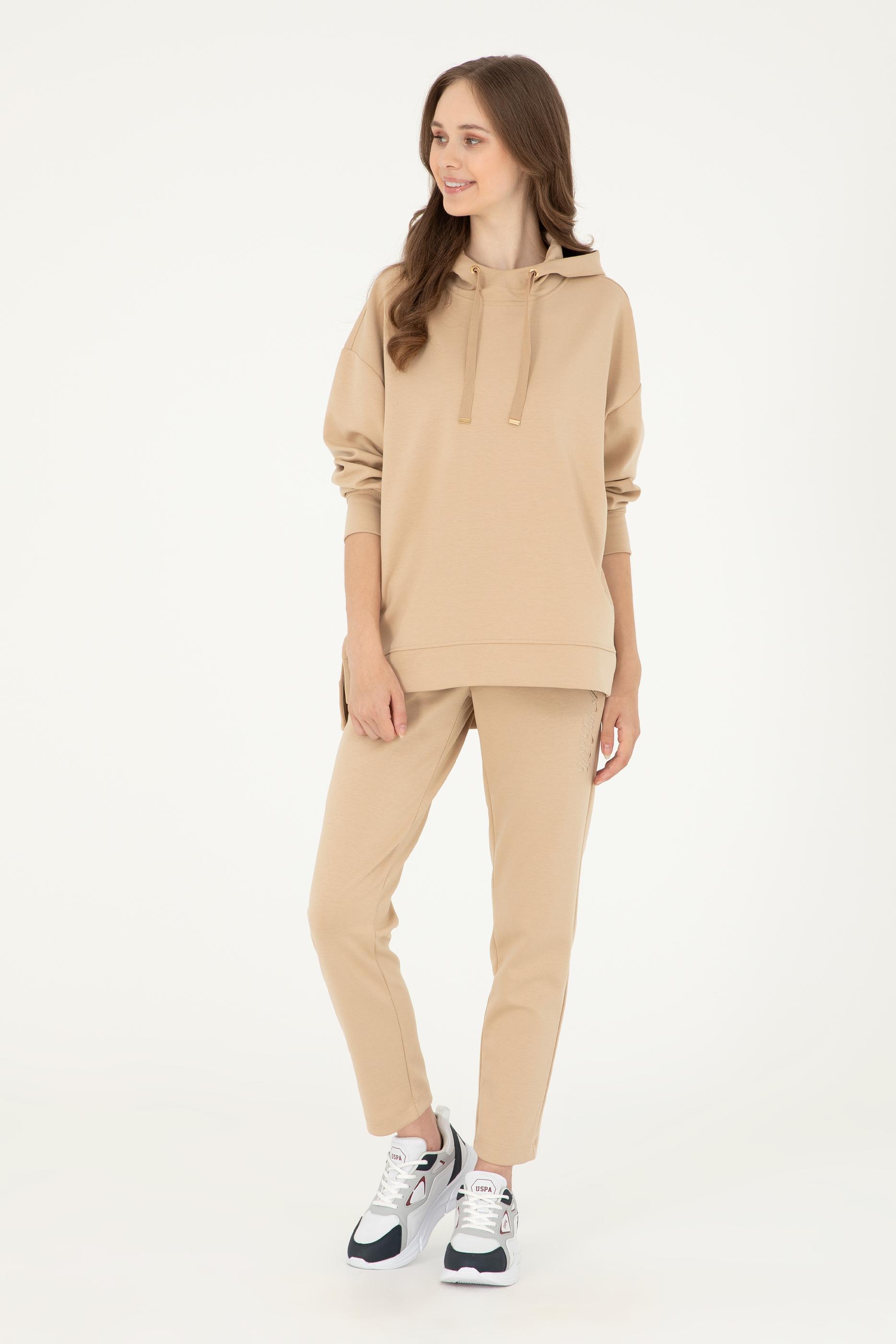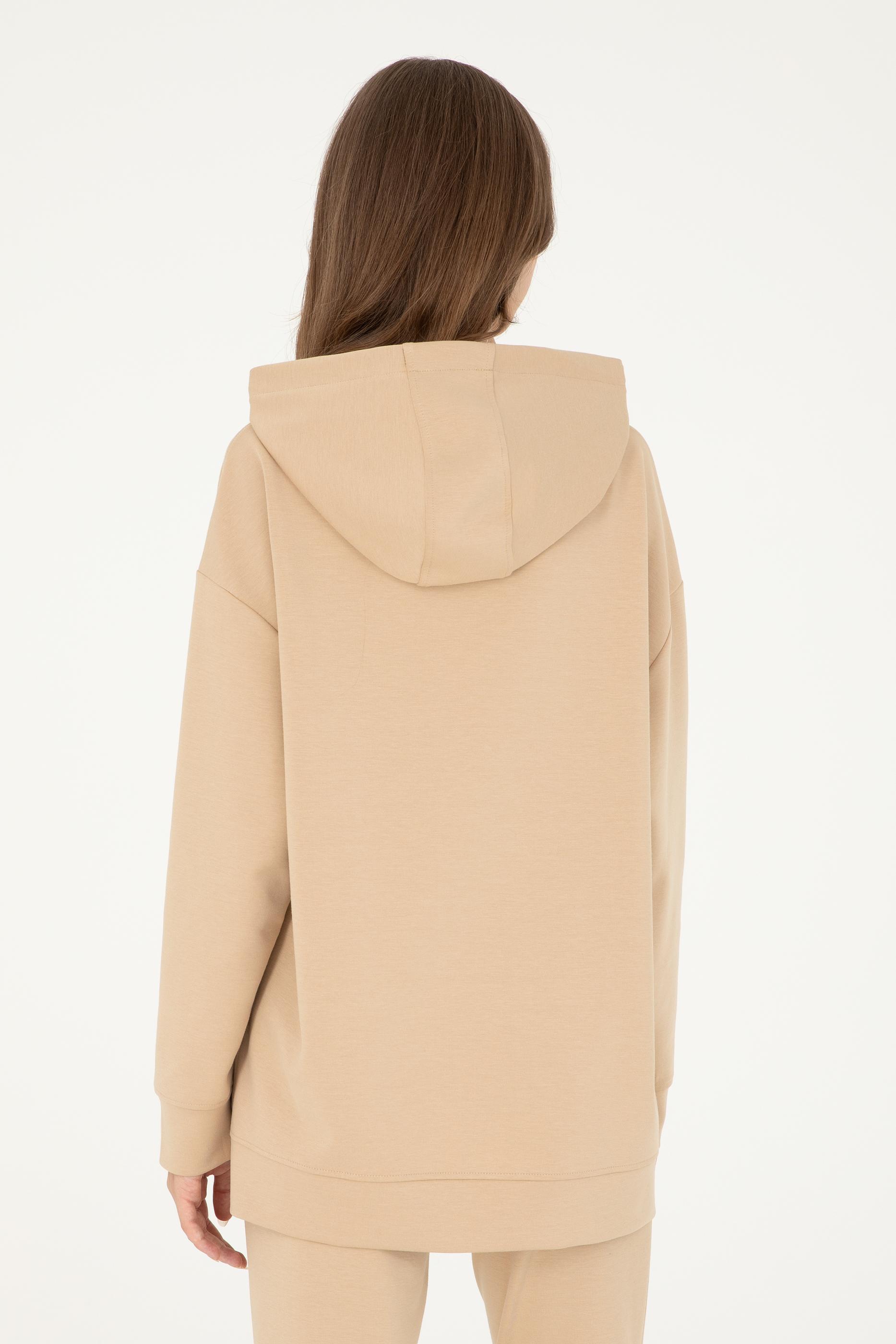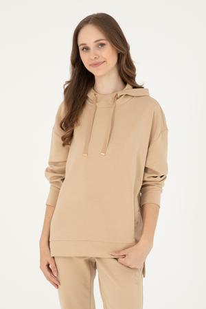 Kadın Kum Modal Karışımlı Kapüşonlu Sweatshirt